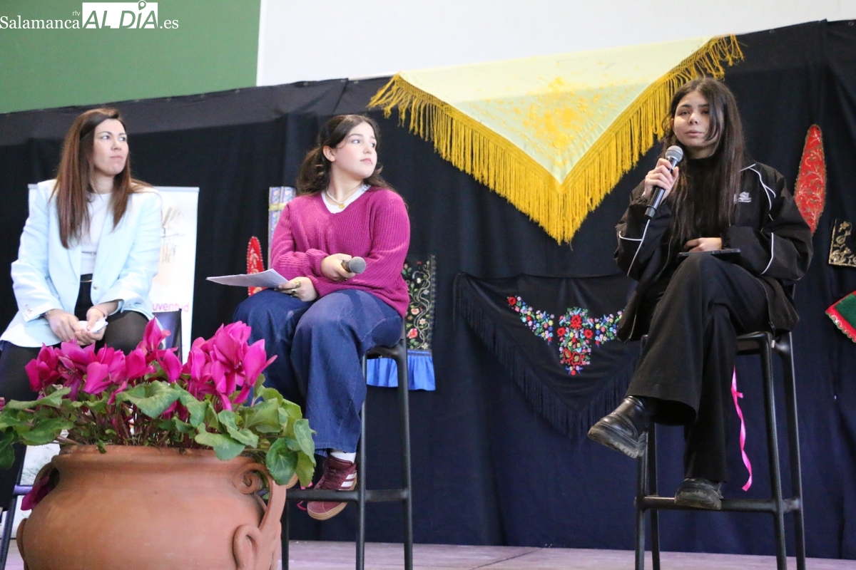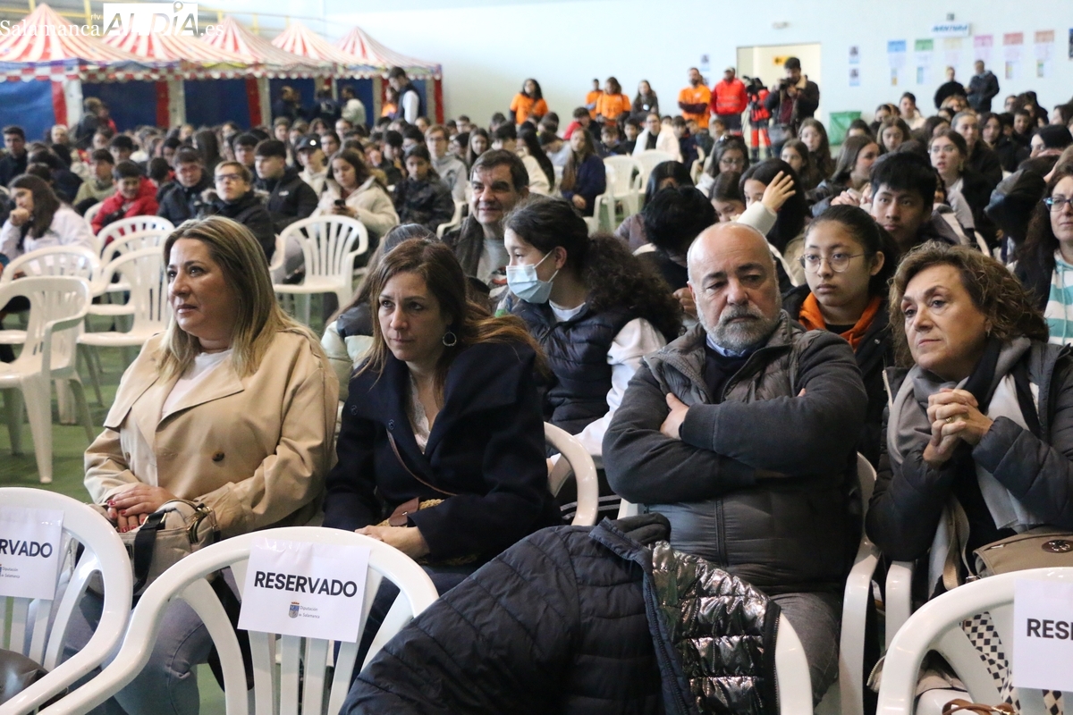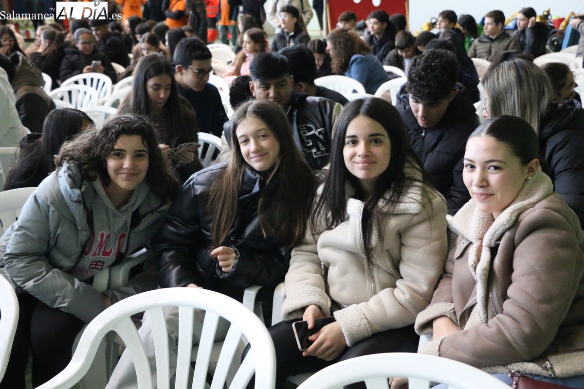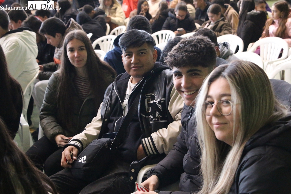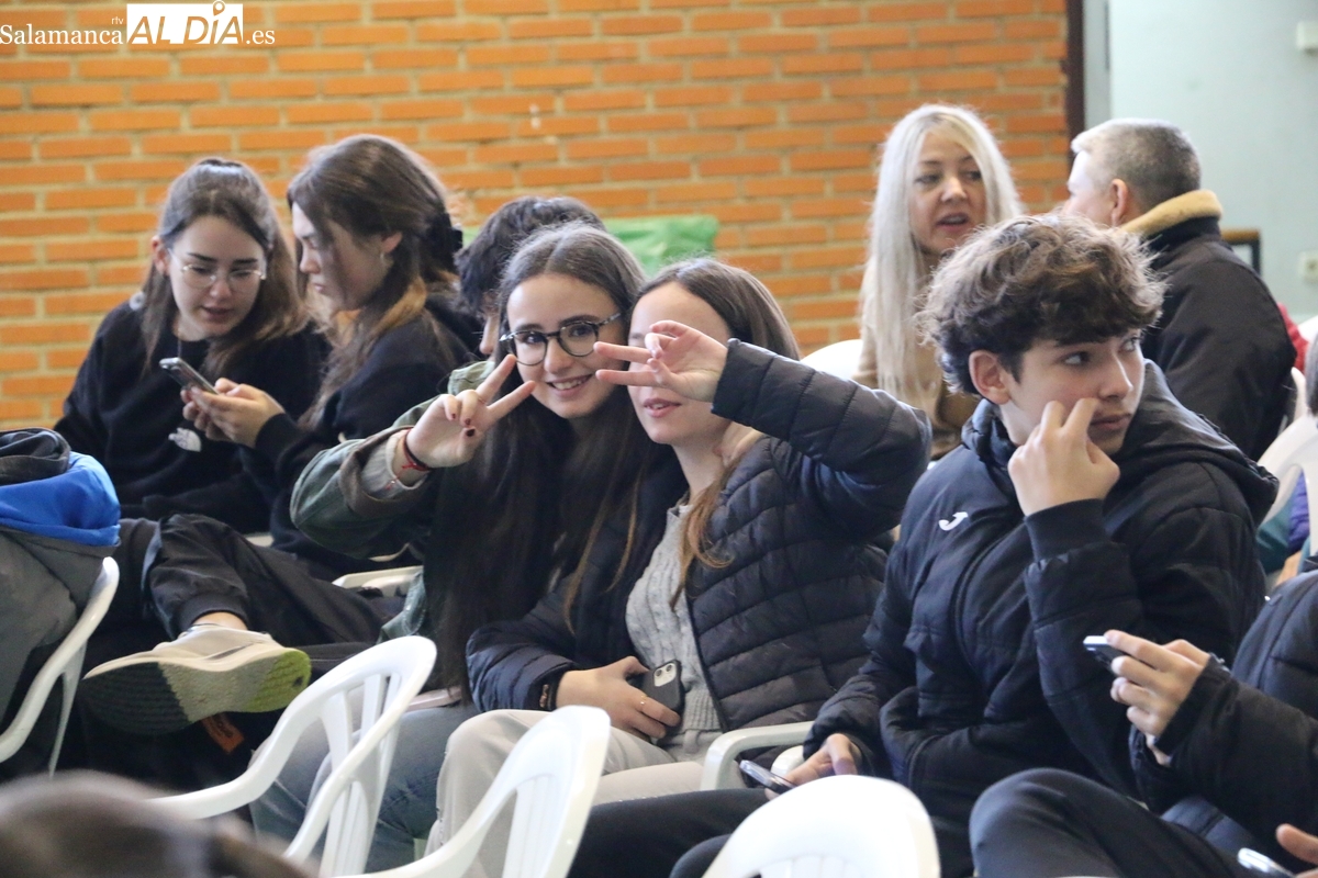 Por último, Eva Picado animaba a todos los asistentes a disfrutar de la jornada y destacaba como la figura ejemplar de los participantes en la primera de las actividades de la jornada, la presentación de cuatro jóvenes que deben ser un referente para el resto: Cristina Flores García, voluntaria en la DANA de Valencia; Julia Mateos Clavo y Rosa María Pérez Martín, alumnas del IES Campo Charro becadas por la Fundación ‘Amancio Ortega’ para estudiar en Canadá y EE.UU.; y Ángel Lemus, cantante que acerca la música tradicional salmantina al rap.