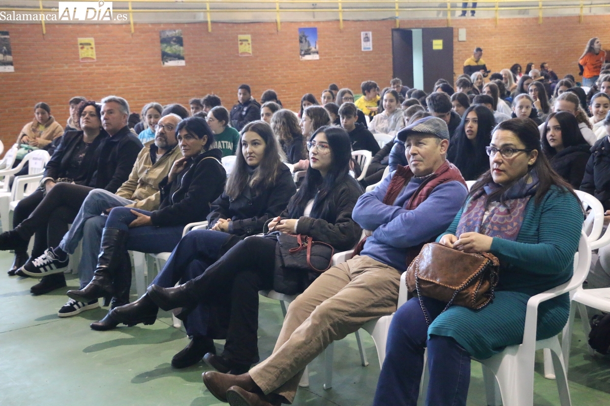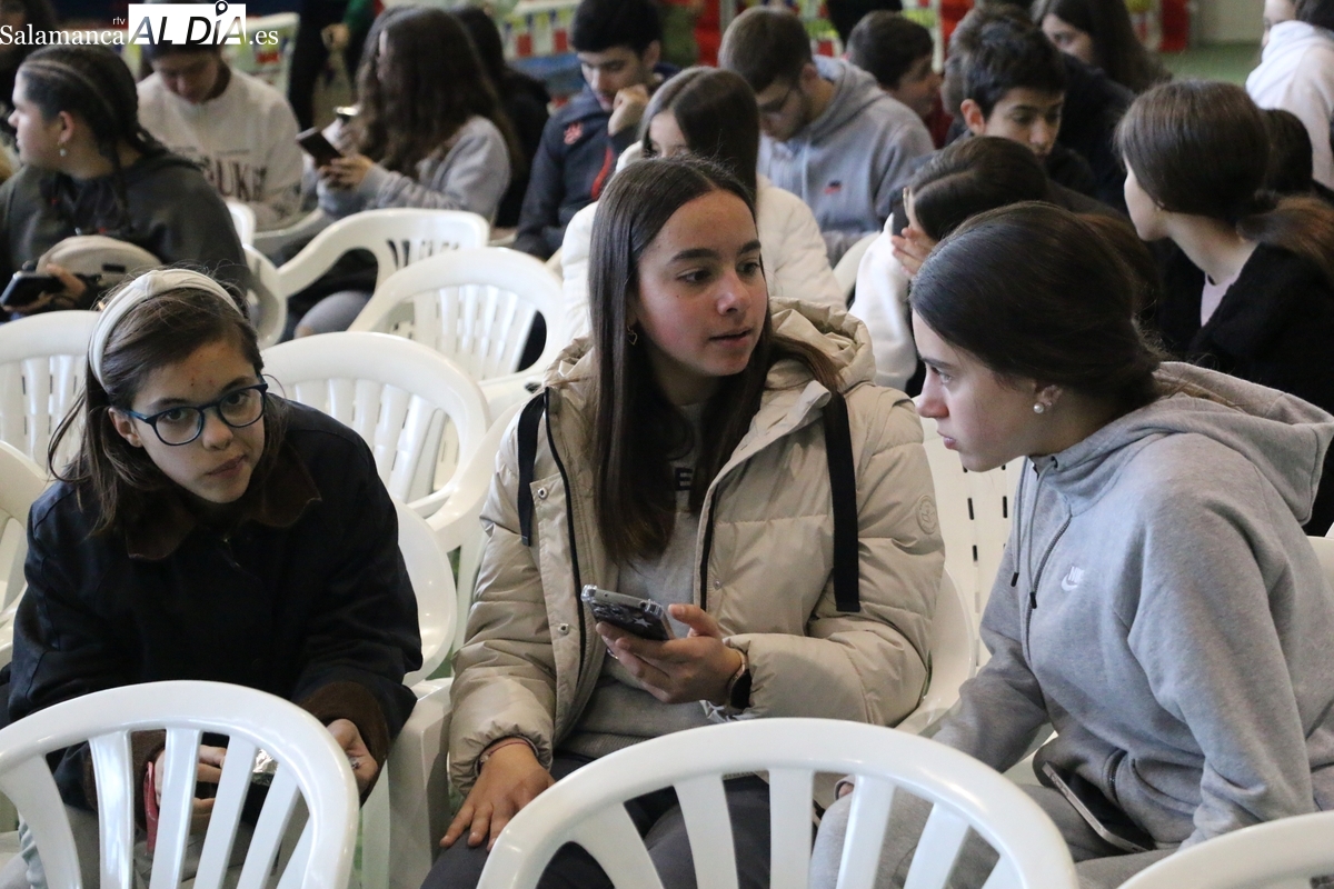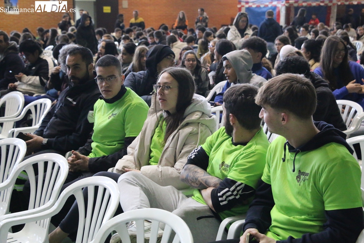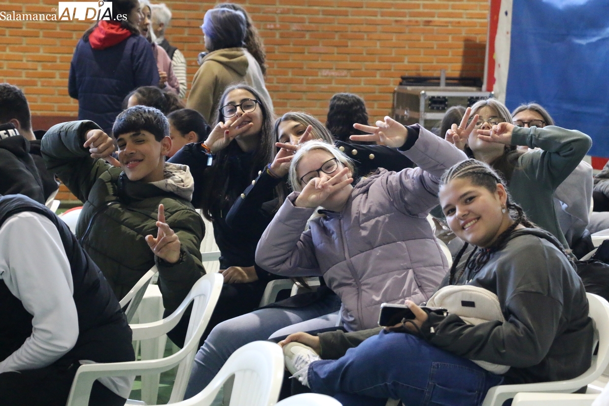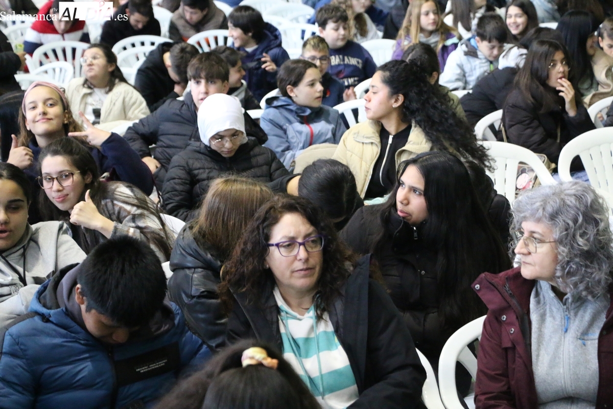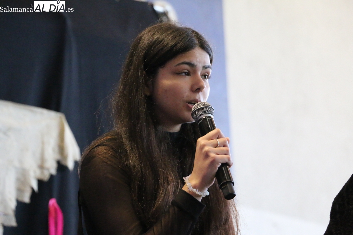Por último, Eva Picado animaba a todos los asistentes a disfrutar de la jornada y destacaba como la figura ejemplar de los participantes en la primera de las actividades de la jornada, la presentación de cuatro jóvenes que deben ser un referente para el resto: Cristina Flores García, voluntaria en la DANA de Valencia; Julia Mateos Clavo y Rosa María Pérez Martín, alumnas del IES Campo Charro becadas por la Fundación ‘Amancio Ortega’ para estudiar en Canadá y EE.UU.; y Ángel Lemus, cantante que acerca la música tradicional salmantina al rap.