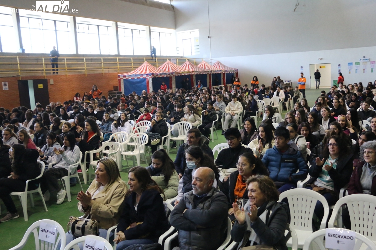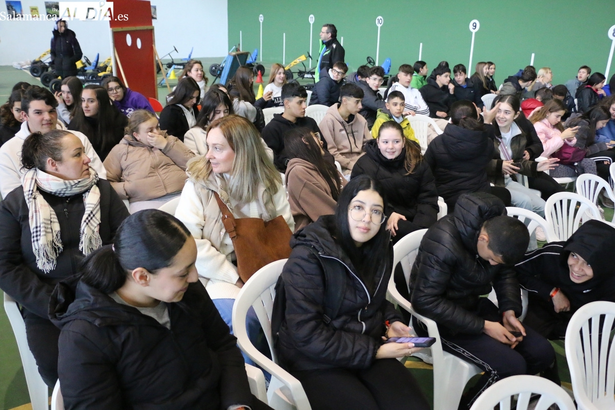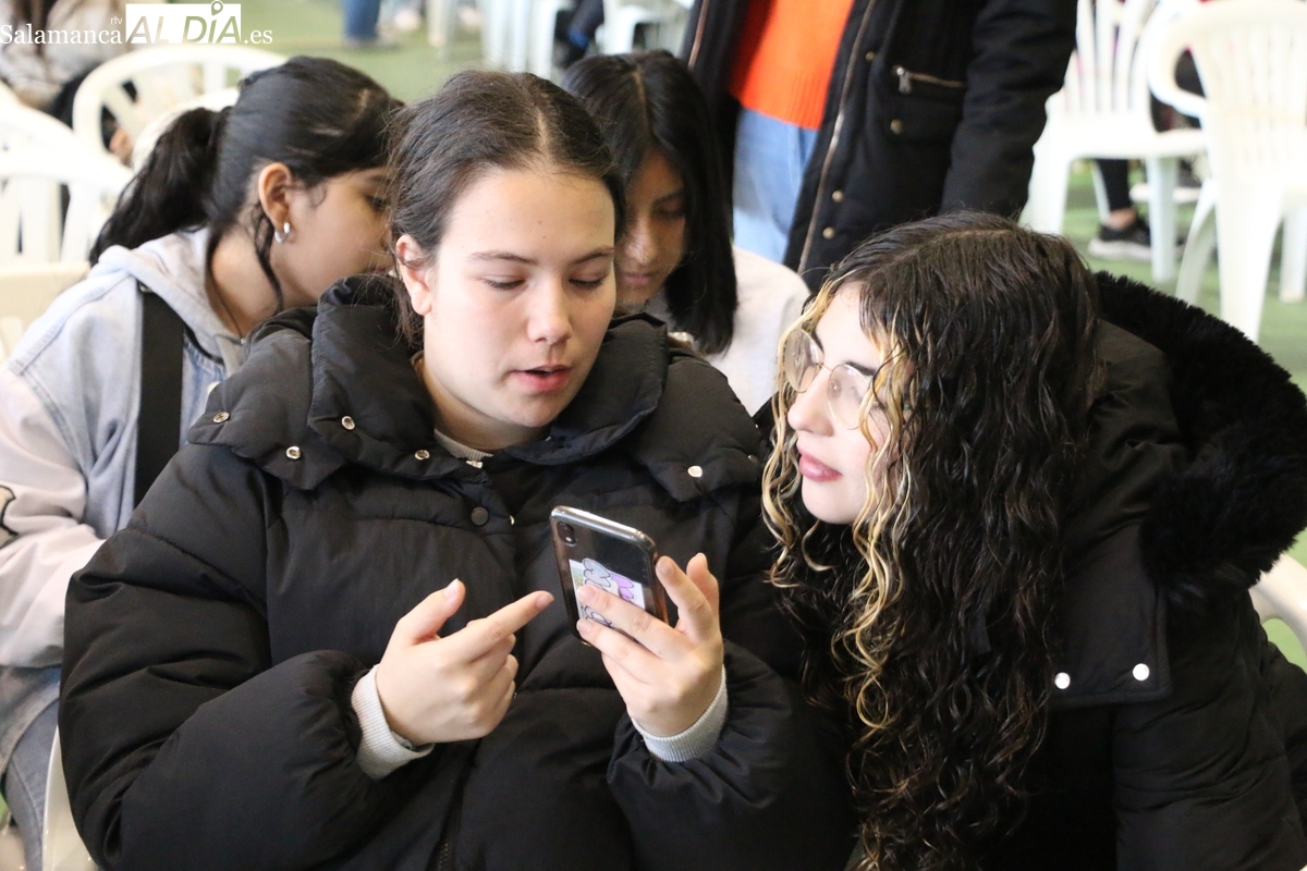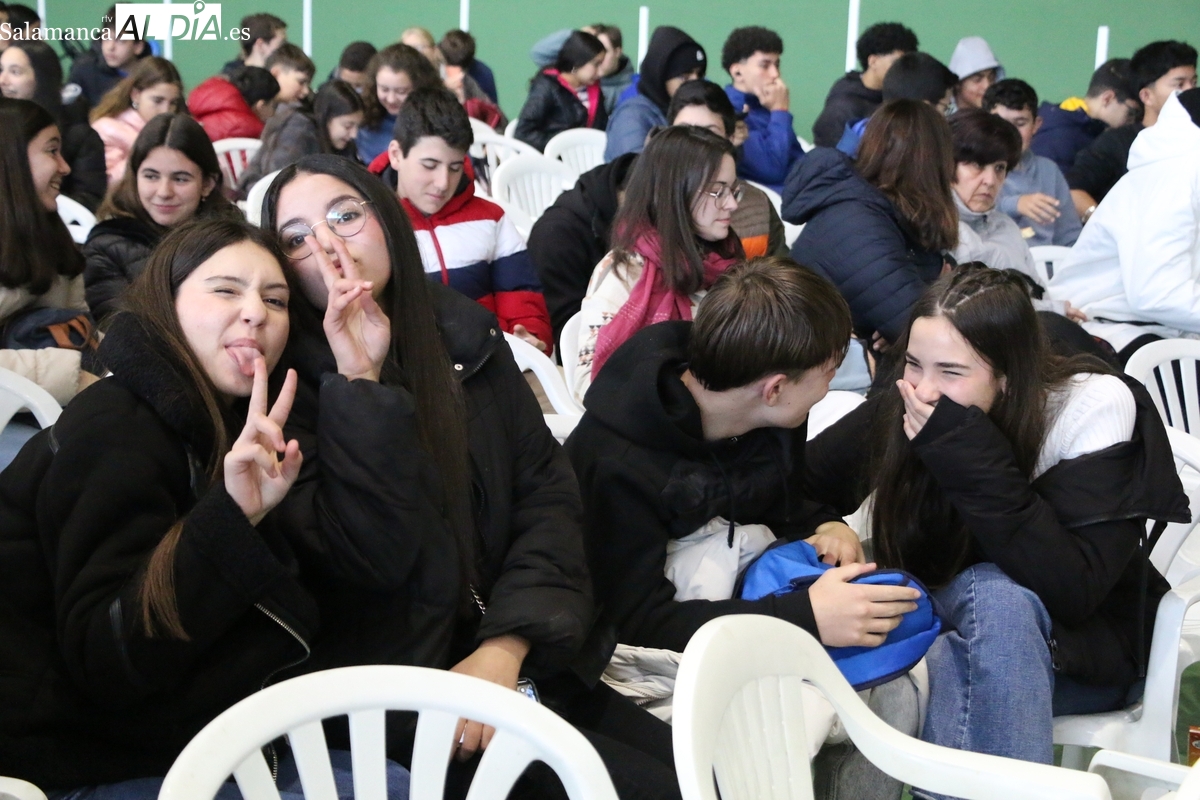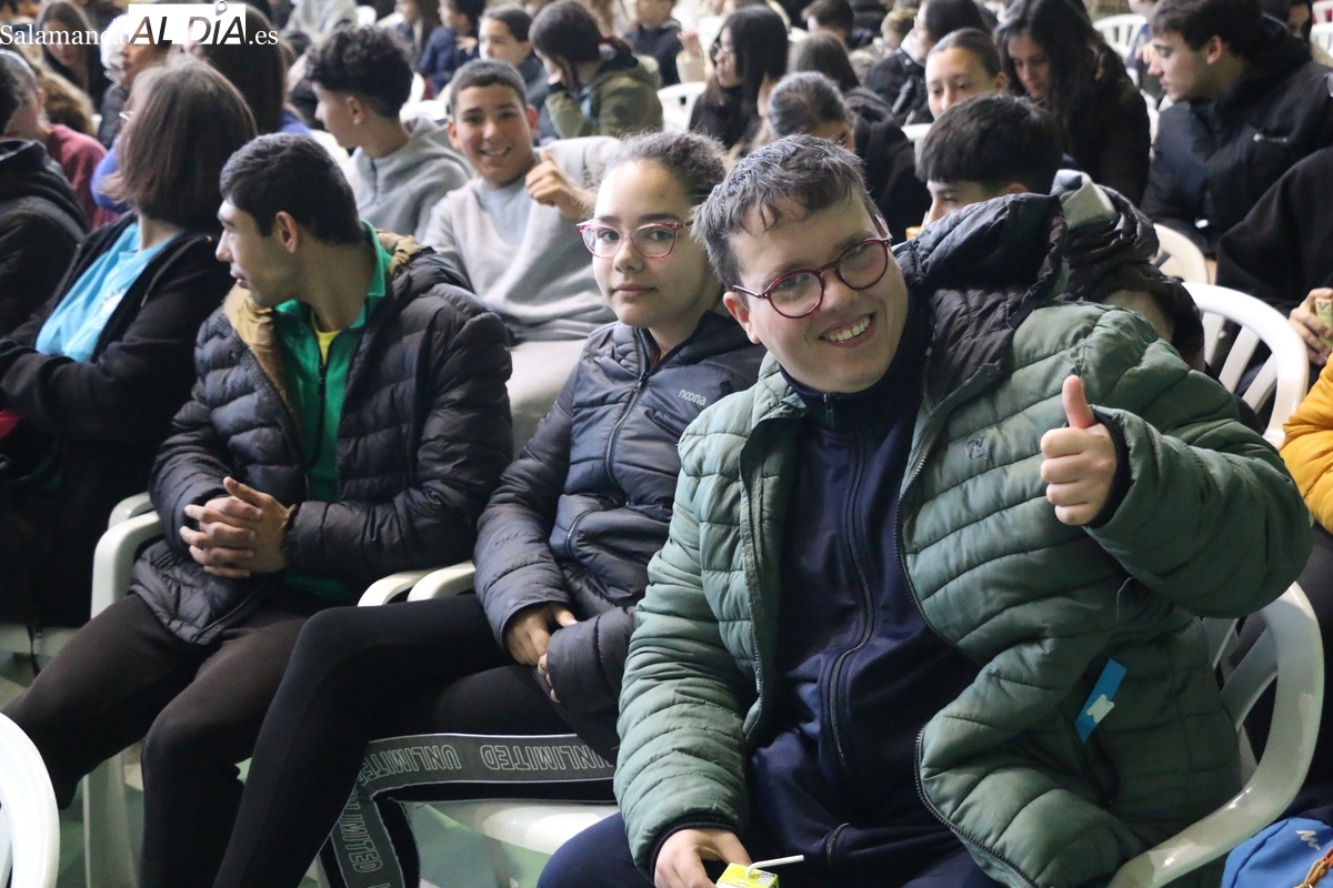 Por último, Eva Picado animaba a todos los asistentes a disfrutar de la jornada y destacaba como la figura ejemplar de los participantes en la primera de las actividades de la jornada, la presentación de cuatro jóvenes que deben ser un referente para el resto: Cristina Flores García, voluntaria en la DANA de Valencia; Julia Mateos Clavo y Rosa María Pérez Martín, alumnas del IES Campo Charro becadas por la Fundación ‘Amancio Ortega’ para estudiar en Canadá y EE.UU.; y Ángel Lemus, cantante que acerca la música tradicional salmantina al rap.
