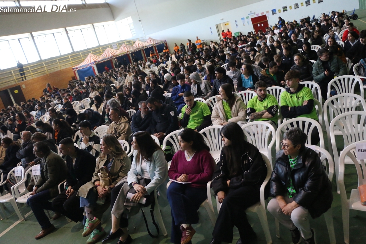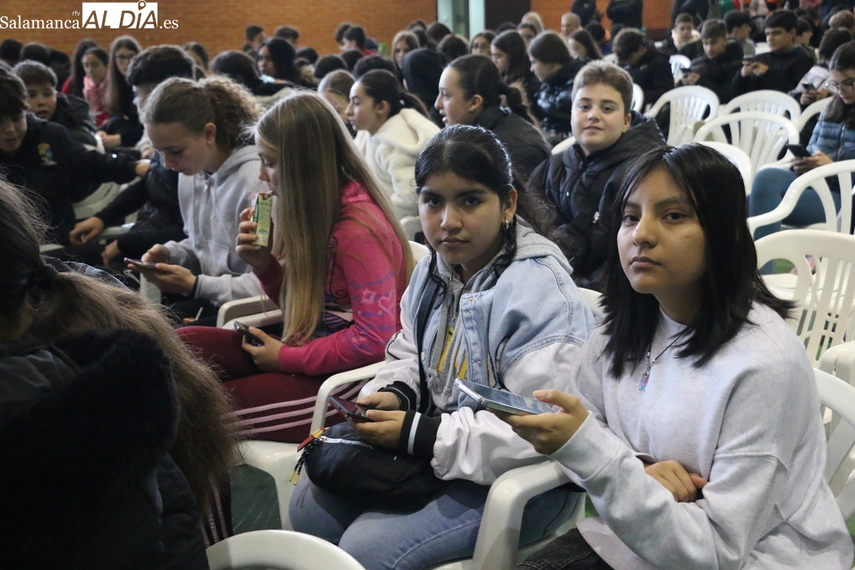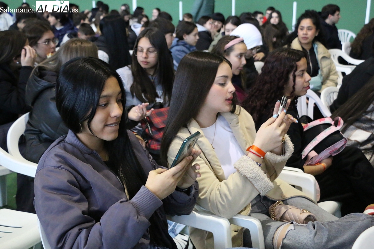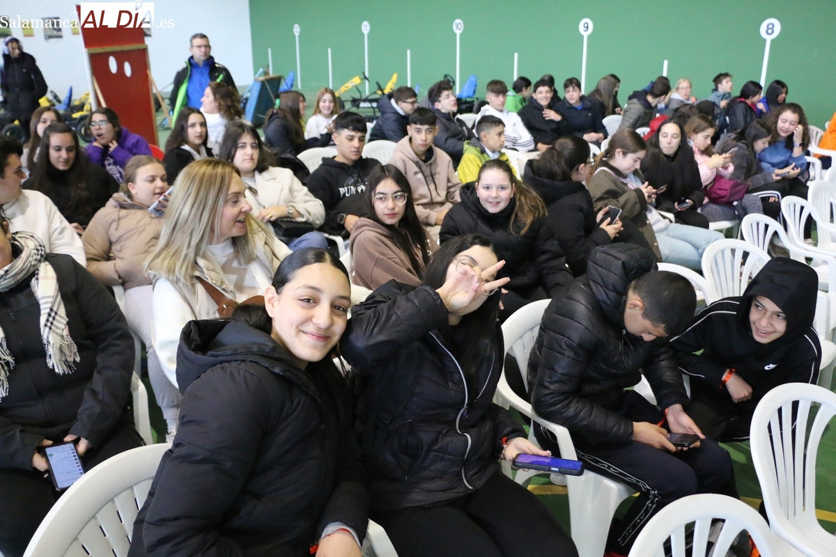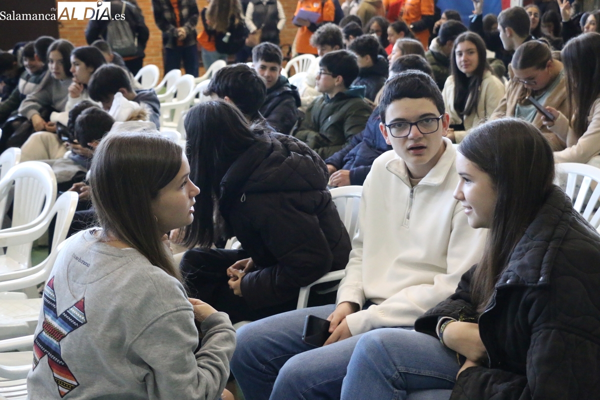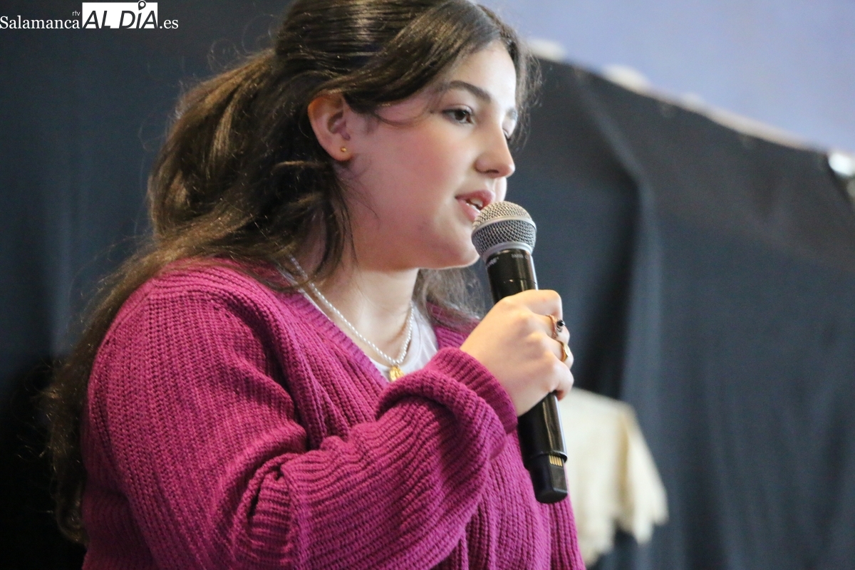 Por último, Eva Picado animaba a todos los asistentes a disfrutar de la jornada y destacaba como la figura ejemplar de los participantes en la primera de las actividades de la jornada, la presentación de cuatro jóvenes que deben ser un referente para el resto: Cristina Flores García, voluntaria en la DANA de Valencia; Julia Mateos Clavo y Rosa María Pérez Martín, alumnas del IES Campo Charro becadas por la Fundación ‘Amancio Ortega’ para estudiar en Canadá y EE.UU.; y Ángel Lemus, cantante que acerca la música tradicional salmantina al rap.