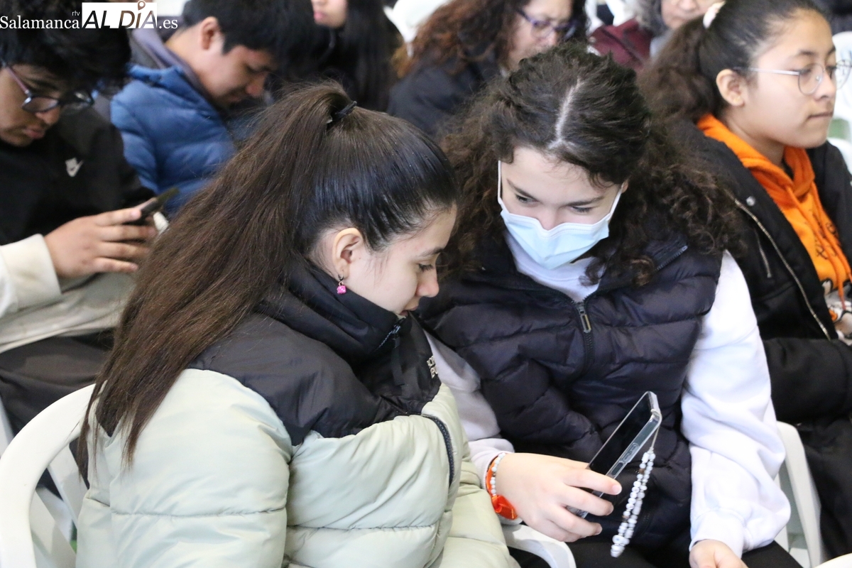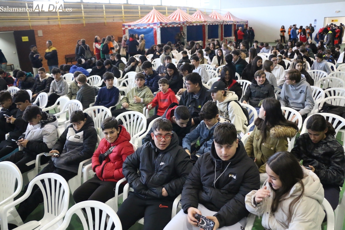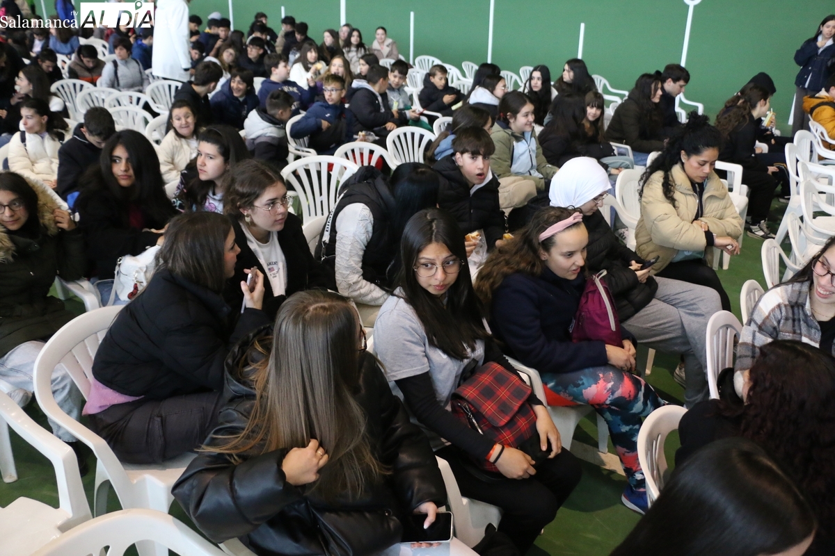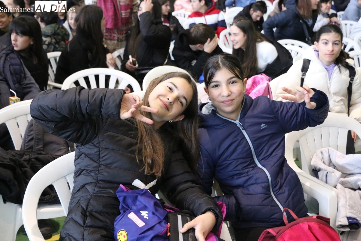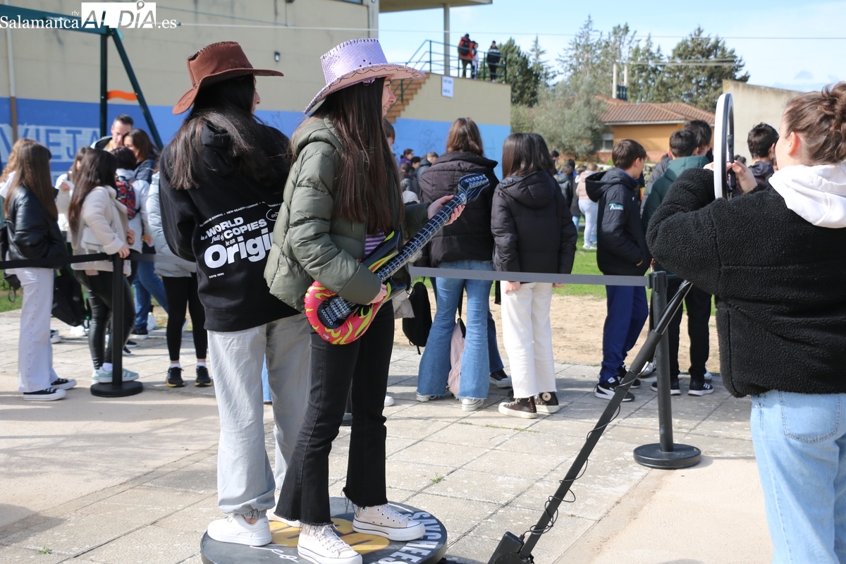 Por último, Eva Picado animaba a todos los asistentes a disfrutar de la jornada y destacaba como la figura ejemplar de los participantes en la primera de las actividades de la jornada, la presentación de cuatro jóvenes que deben ser un referente para el resto: Cristina Flores García, voluntaria en la DANA de Valencia; Julia Mateos Clavo y Rosa María Pérez Martín, alumnas del IES Campo Charro becadas por la Fundación ‘Amancio Ortega’ para estudiar en Canadá y EE.UU.; y Ángel Lemus, cantante que acerca la música tradicional salmantina al rap.