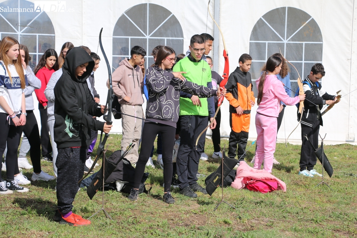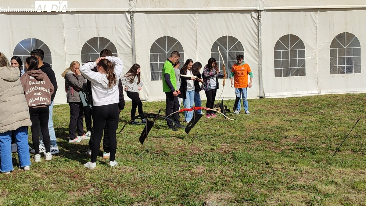 Villavieja de Yeltes aparecía este domingo como en sus mejores tiempos. Más de 500 jóvenes procedentes de 54 municipios de la provincia participan este domingo 6 de abril en la X Feria Jóvenes Despiertos, evento organizado por la Diputación de Salamanca, a través del área de Bienestar Social y Juventud, y que tiene como finalidad crear espacios de encuentro y participación para los jóvenes de la provincia.