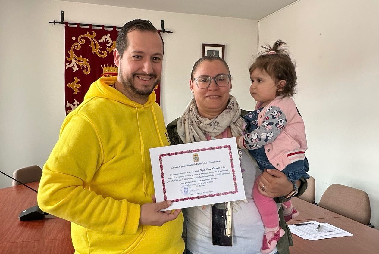 El Ayuntamiento de Cantalpino ha entregado los cheques correspondientes a su programa municipal de ayudad a la natalidad, iniciativa concedida a tres familias con recién nacidos durante el pasado año 2024. Cada una de ellas ha recibido 500 euros, cantidad que podrían aumentar en 300 euros más si completan un curso completo en la guardería municipal, tal como aprobó el pleno del Ayuntamiento en febrero de 2024.