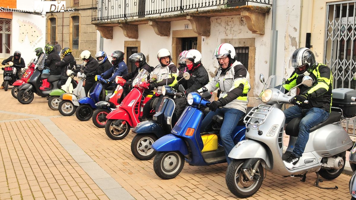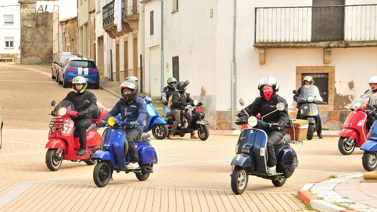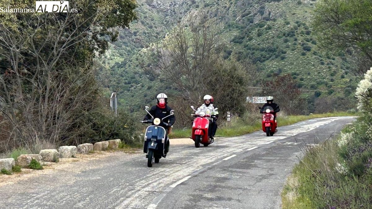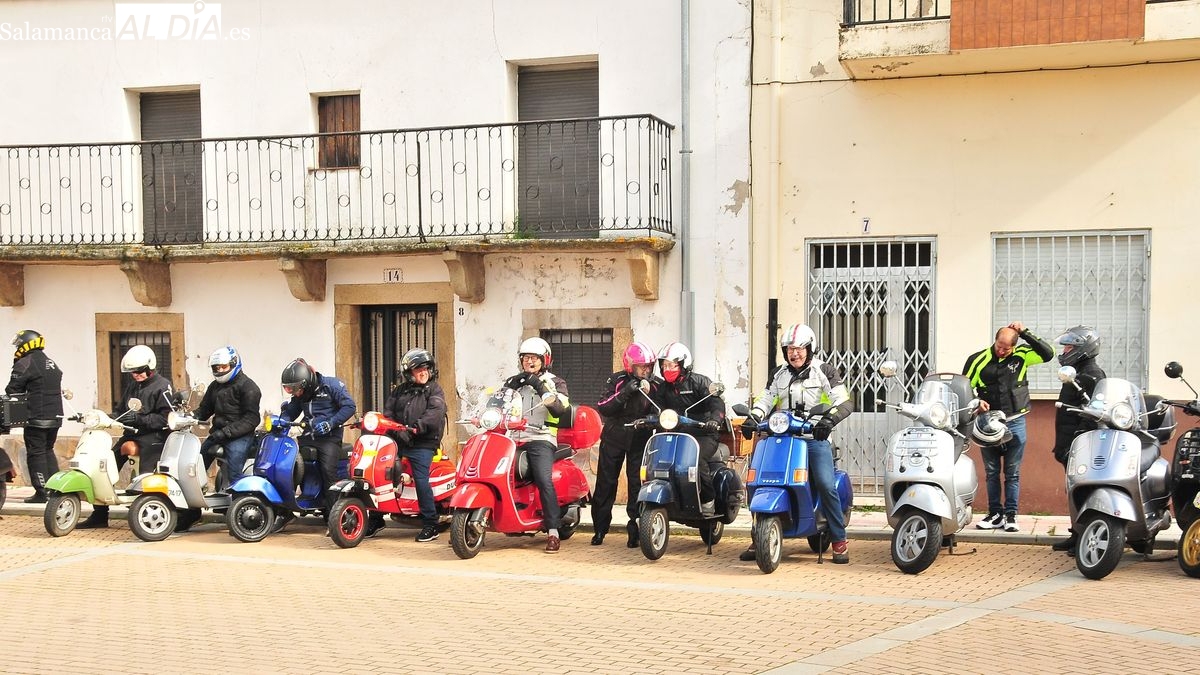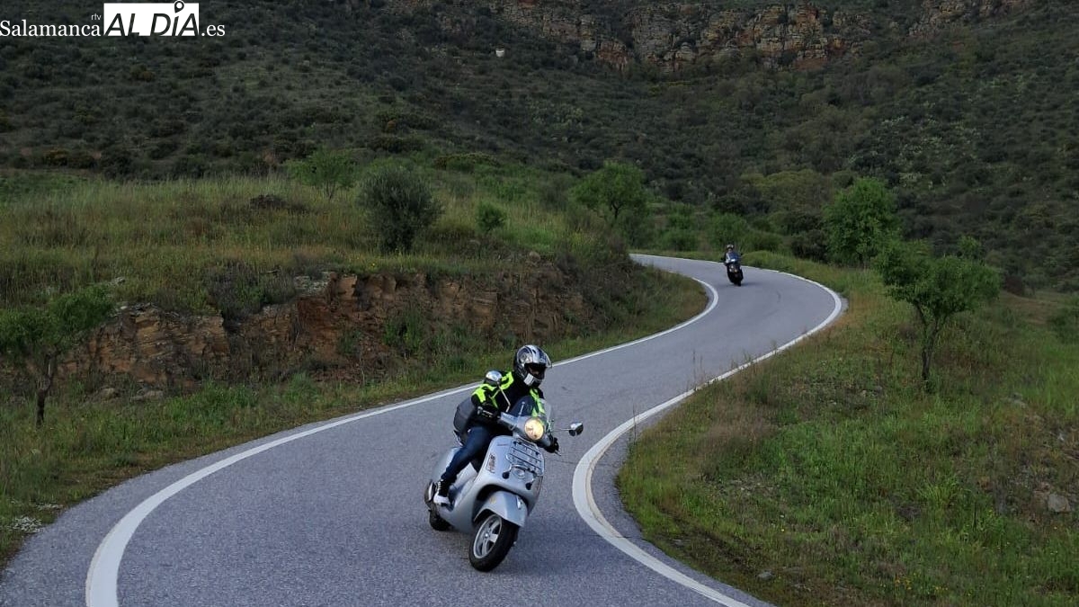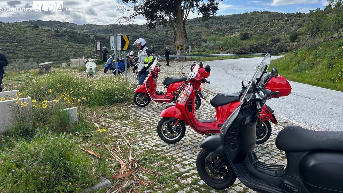 Vespistas de Salamanca, Asturias y Cantabria participaron el pasado sábado en el I Vespariders Audax Arribes del Duero una ruta de 250 kilómetros por distintos enclaves del sur de Las Arribes de Salamanca y la vecina Portugal, organizada por el Vespa club Mirobrigense de Ciudad Rodrigo y el grupo Vespa Charros de Salamanca.