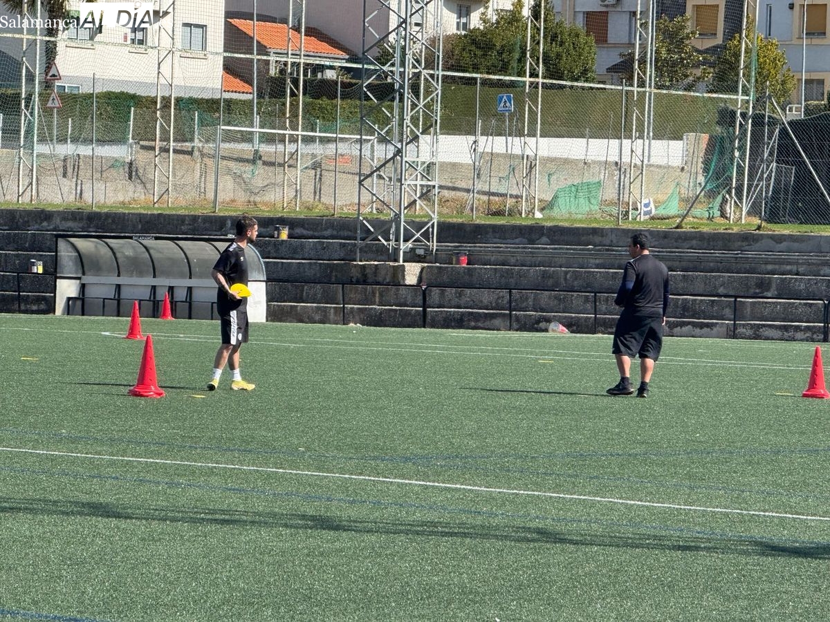 Los mexicanos Hugo Mora y Hugo Parra han dirigido en la tarde de este miércoles su primera sesión al frente del filial del Salamanca UDS tras haber pasado Jorge García, anterior técnico, al primer equipo del club blanquinegro. Rafa Dueñas, quien dejó su cargo como entrenador del Salamanca UDS, estuvo presente en la sesión de entrenamiento, sin perder detalle de lo que acontecía sobre el césped de 'El Tori'.