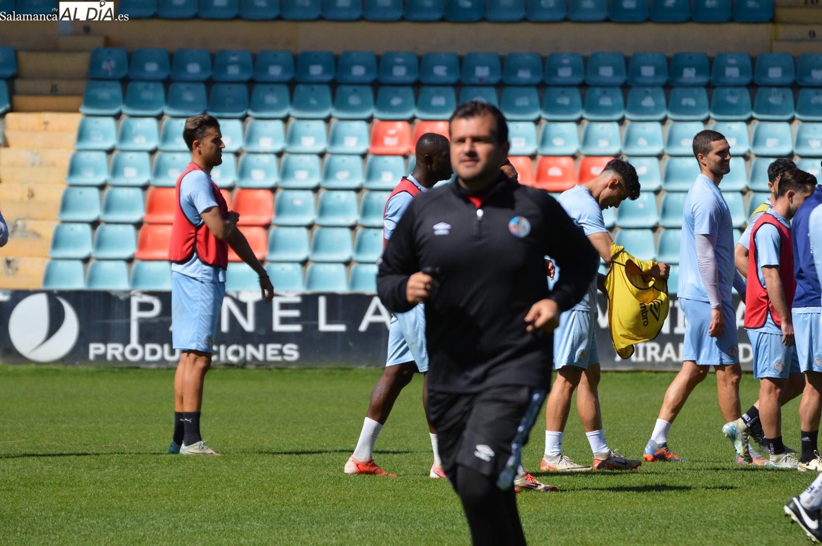 Jorge García ha asumido galones como primer entrenador del Salamanca UDS en su estreno en el Helmántico. Asimismo, el anterior técnico del filial ha estado asistido por Álvaro Boyero, su segundo, y Efraín Gutiérrez, el preparador físico en el día 1 de su etapa.