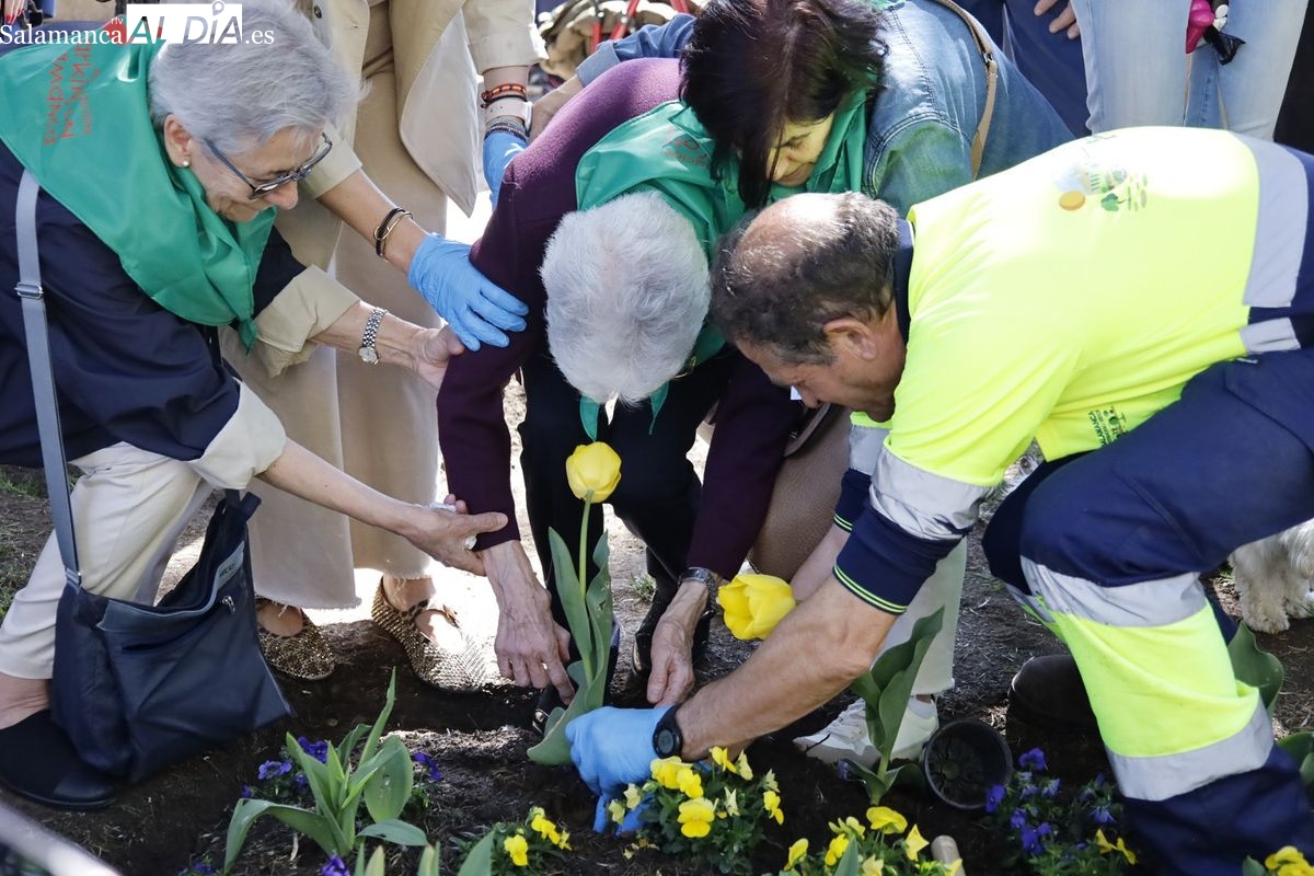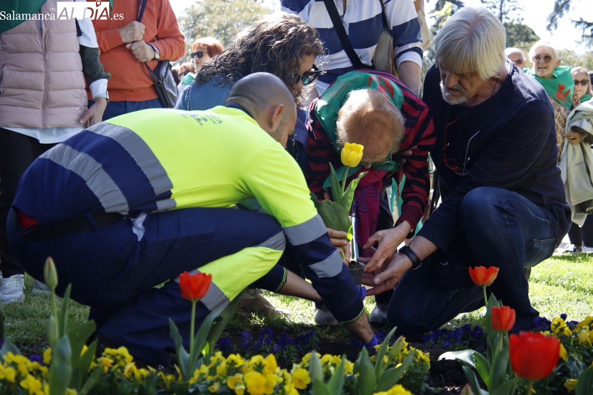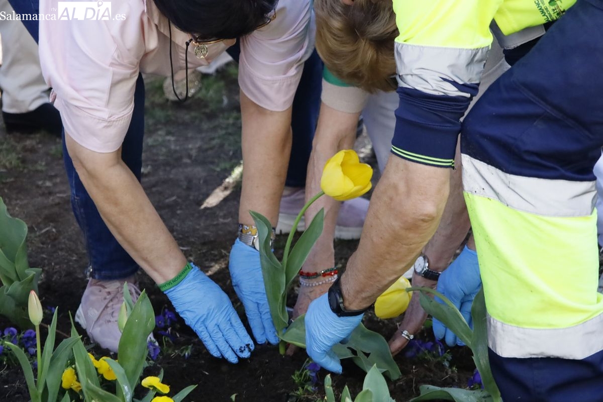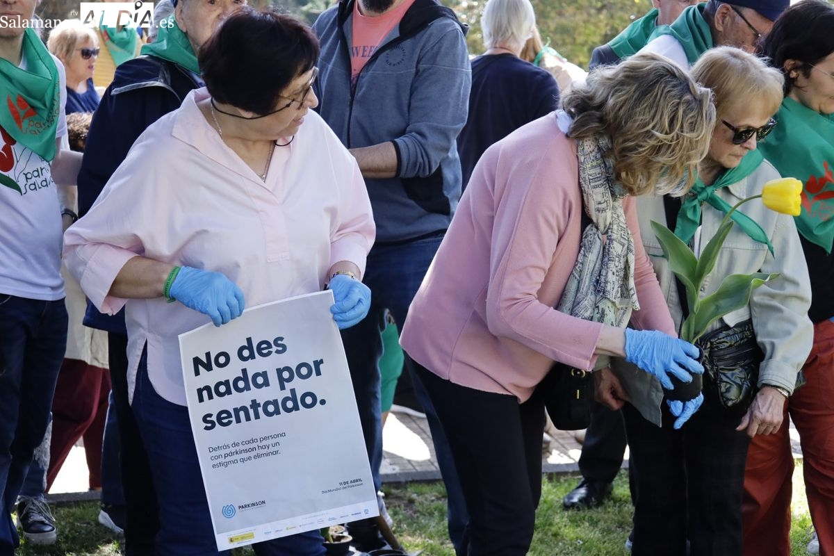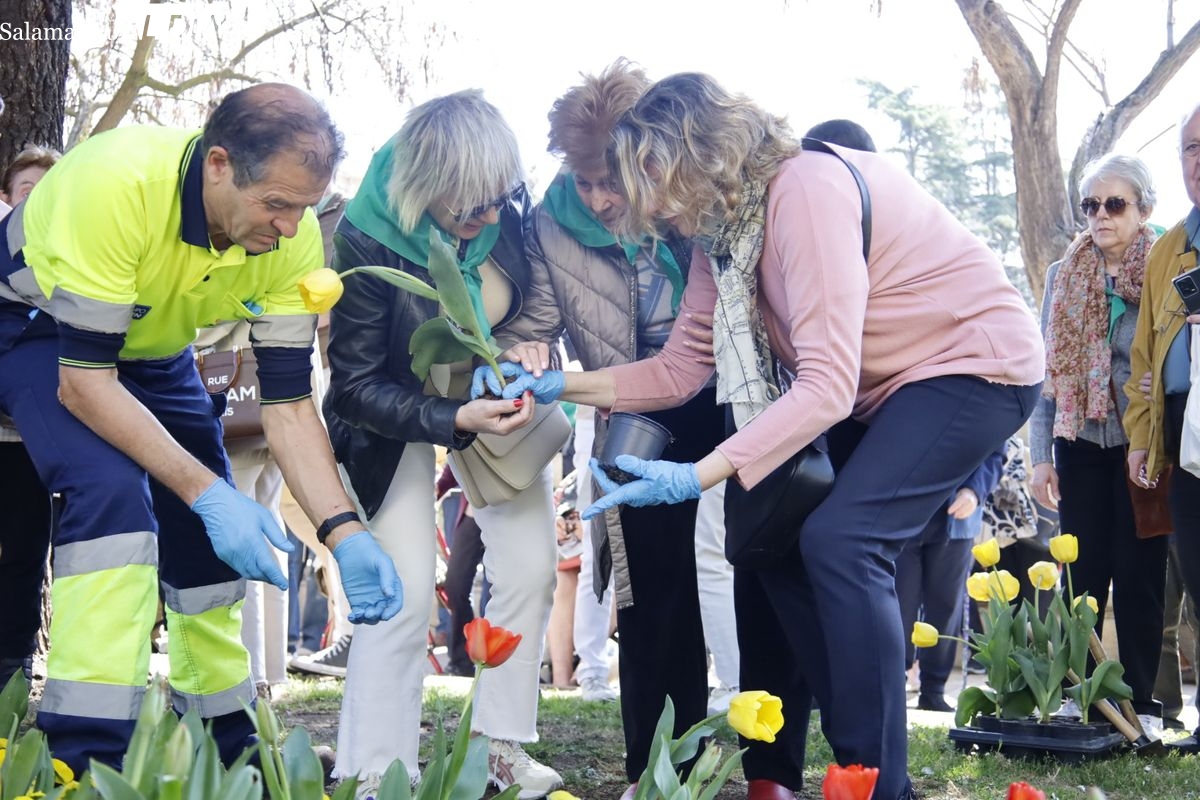El parque San Francisco ha sido escenario del tradicional acto simbólico de plantación de tulipanes con ese motivo. Las concejalas de Salud Pública y Medio Ambiente, Vega Villar y María José Coca, han acompañado a la presidenta de la Asociación Parkinson de Salamanca, Teresa Martín, en esta jornada de concienciación.