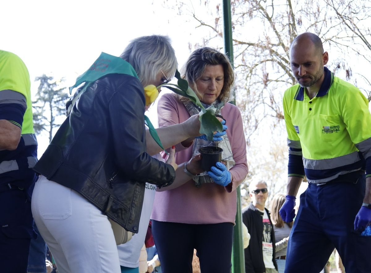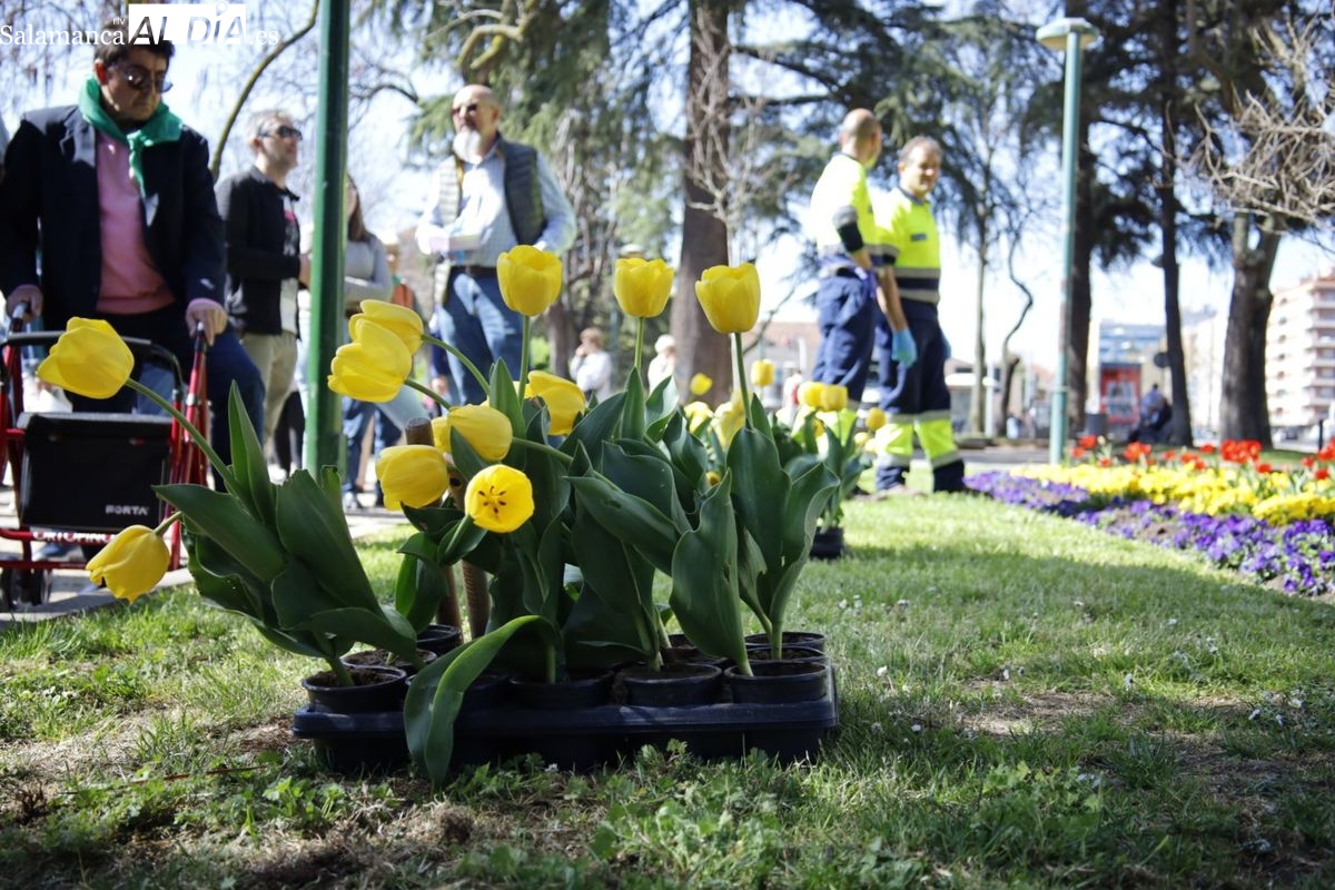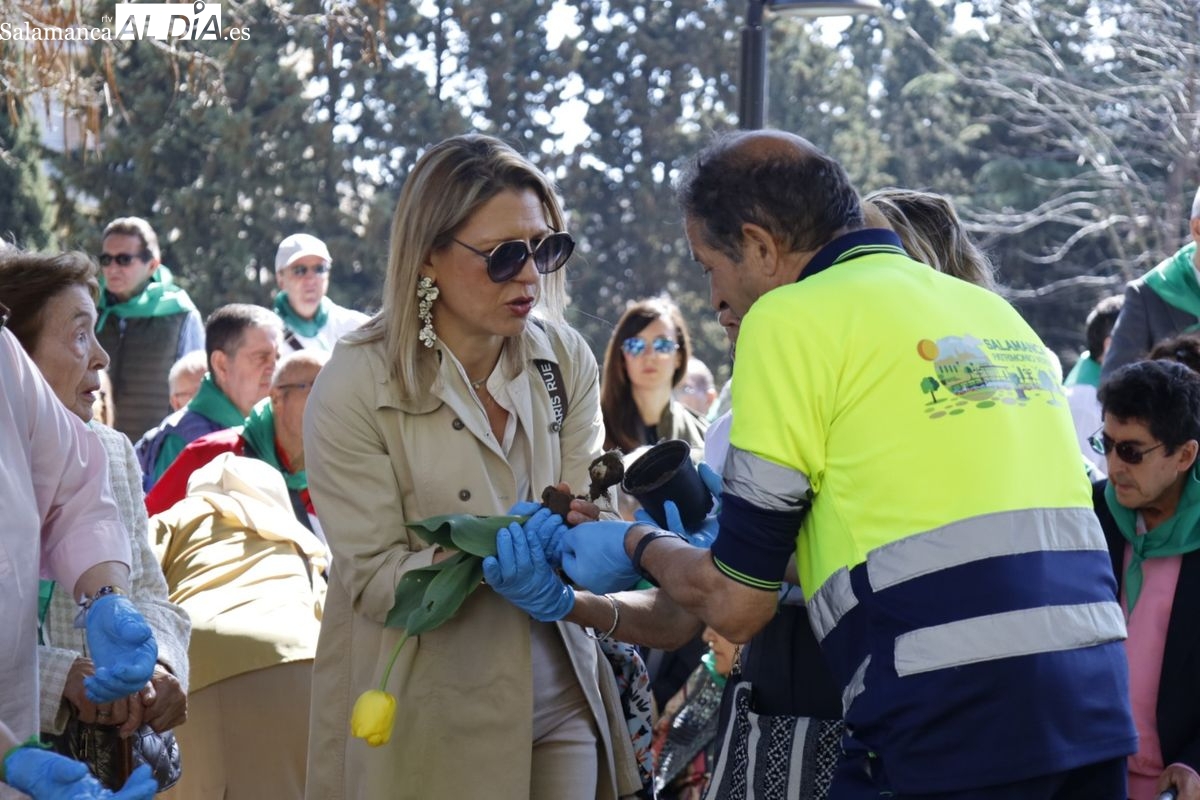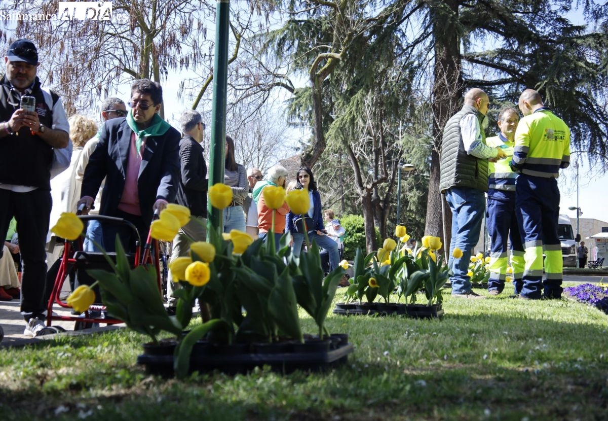 El parque San Francisco ha sido escenario del tradicional acto simbólico de plantación de tulipanes con ese motivo. Las concejalas de Salud Pública y Medio Ambiente, Vega Villar y María José Coca, han acompañado a la presidenta de la Asociación Parkinson de Salamanca, Teresa Martín, en esta jornada de concienciación.
