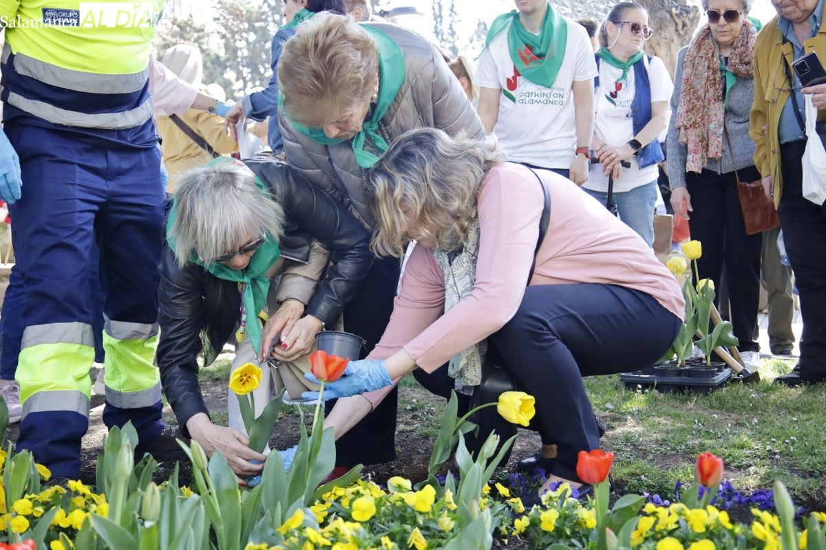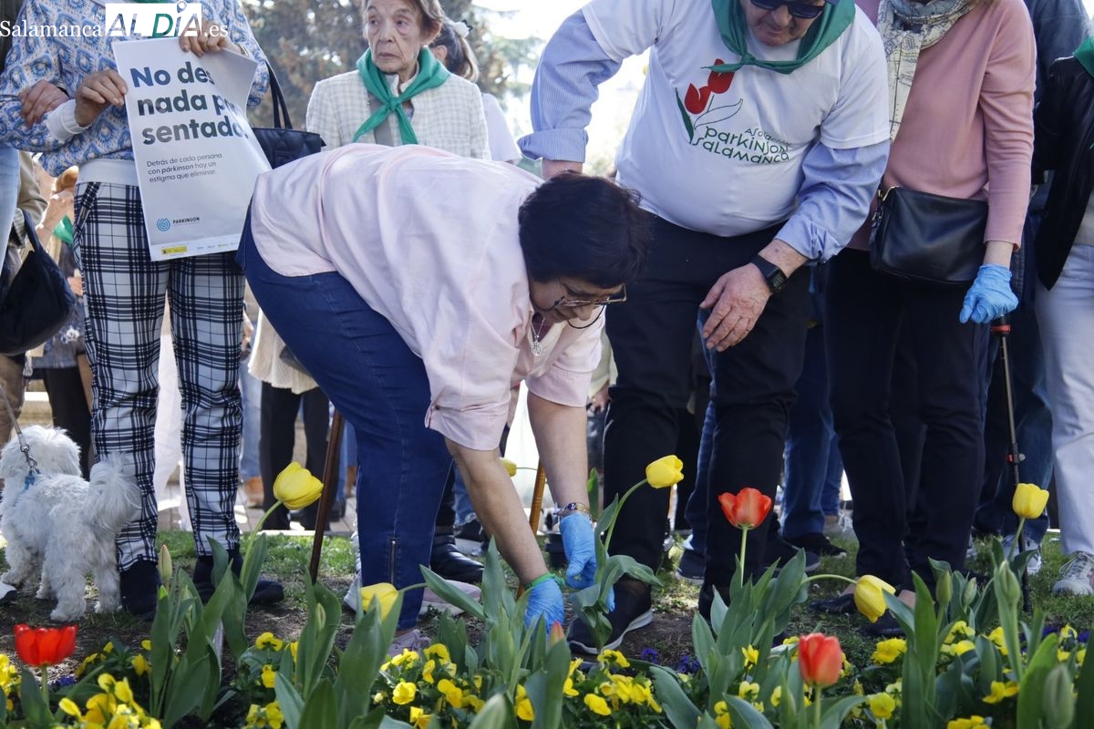 Durante el acto, personas afectadas por la enfermedad, familiares y miembros de la asociación han plantado un total de 60 tulipanes, flor que desde 1995 se ha convertido en el símbolo mundial de esta enfermedad neurodegenerativa.