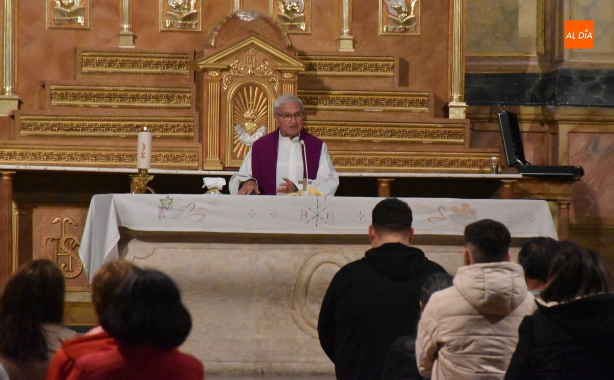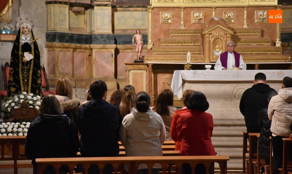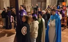 Esa primera procesión de la Semana Santa 2025, a cargo de la Cofradía de Jesús Nazareno, debía haber sido la de La Dolorosa, que este año iba a salir de la Iglesia de San Agustín, donde previamente a la hora fijada para la salida del desfile (las 20.30 horas) el capellán de la entidad, Manolo Peláez, ofició una eucaristía en memoria de los cofrades difuntos.