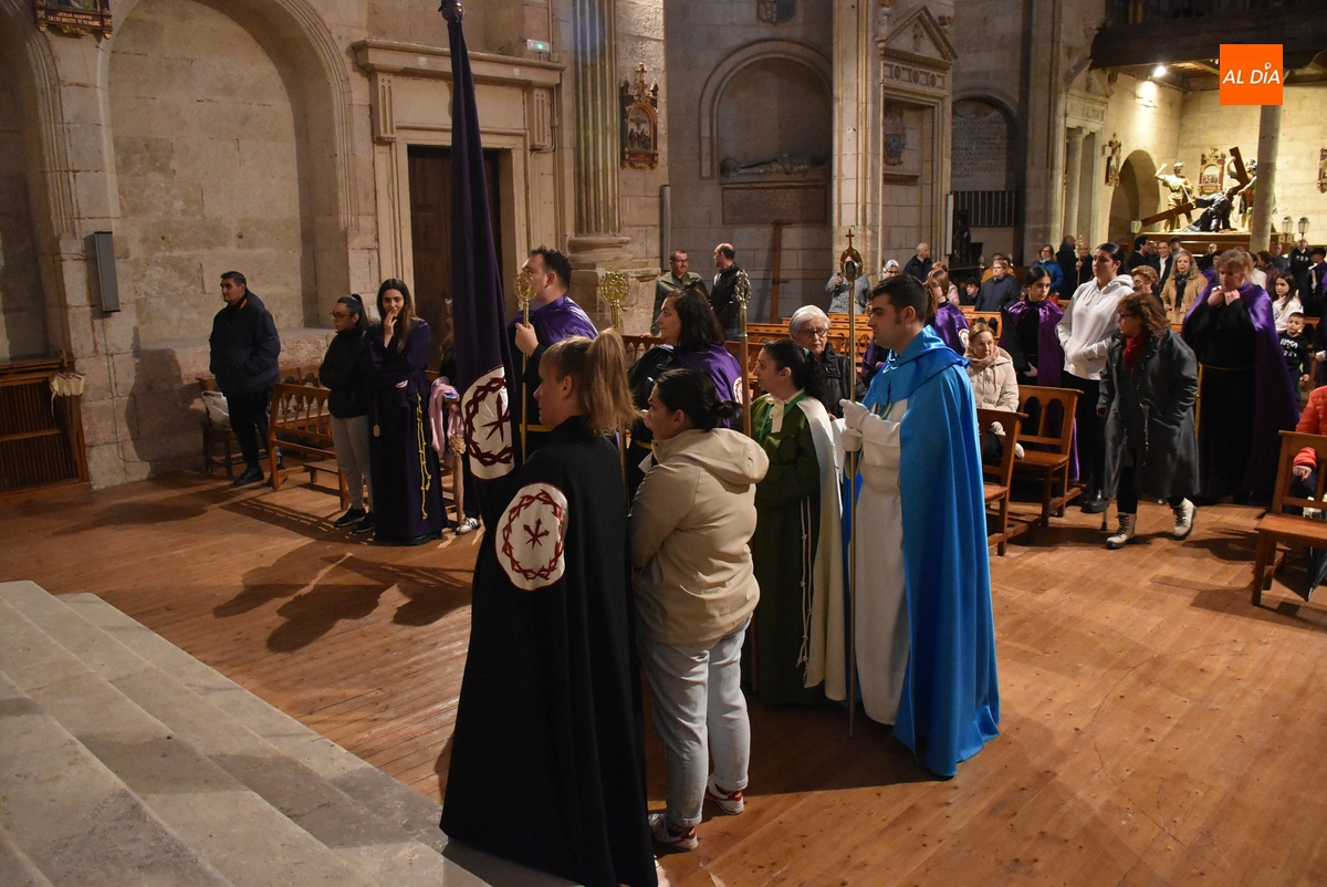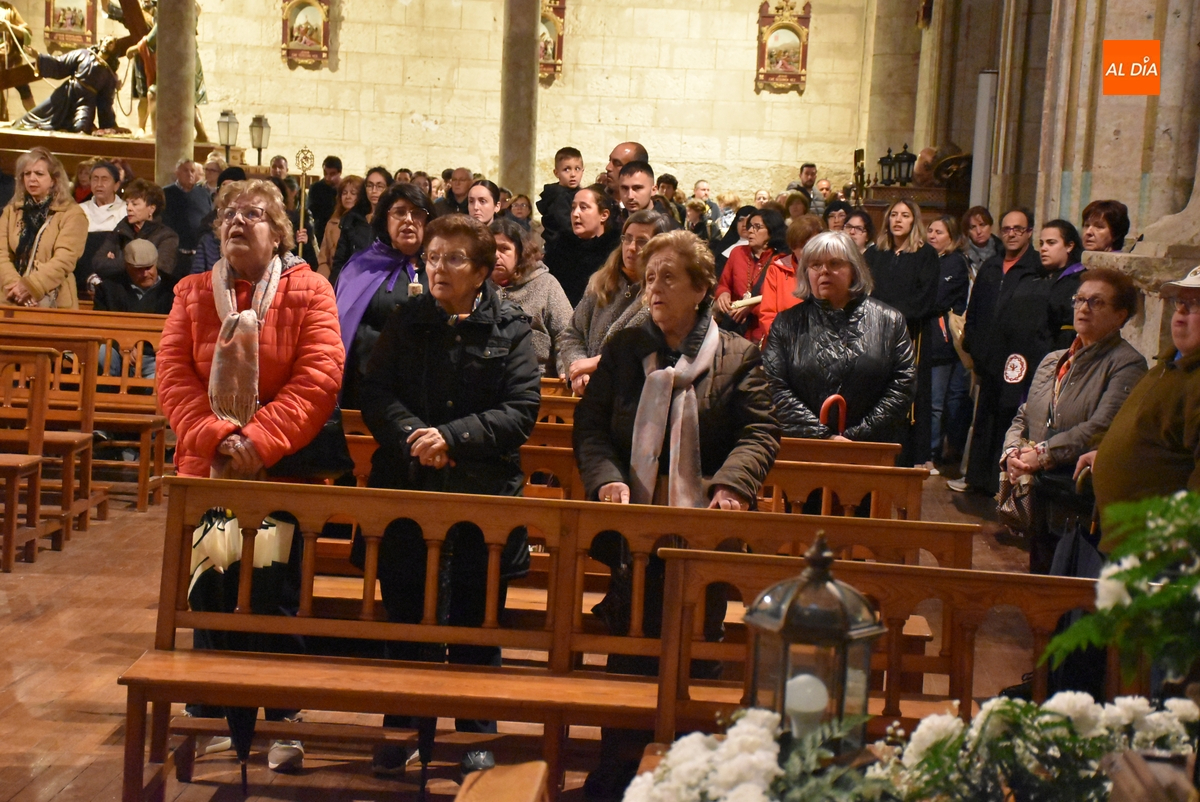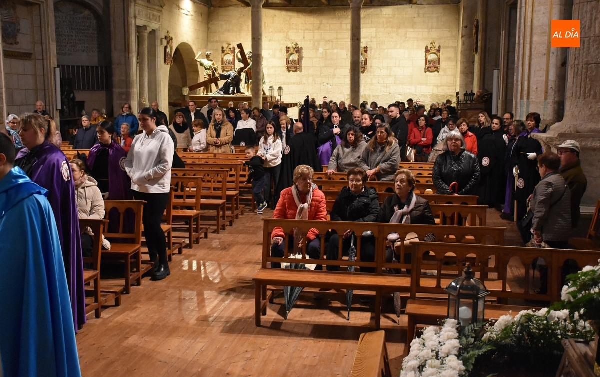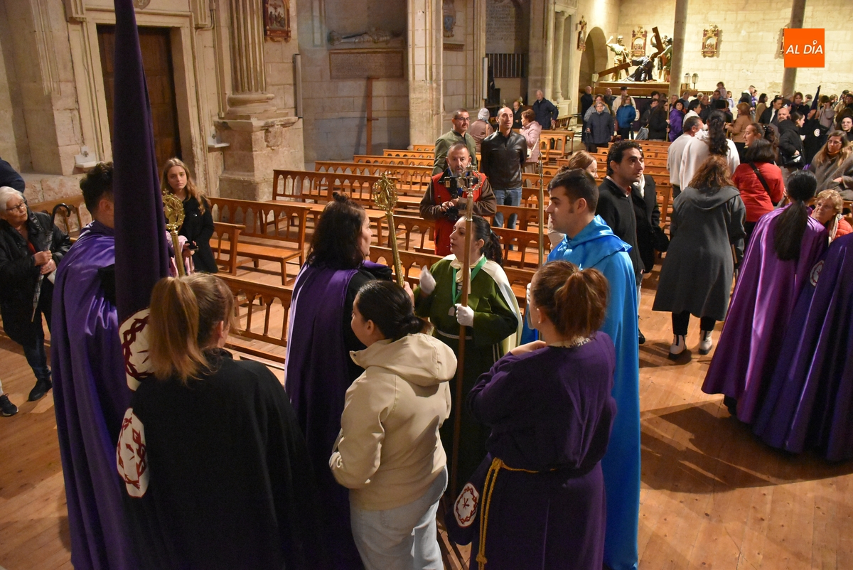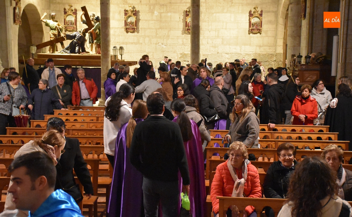 Como había bastantes personas dentro de la Iglesia de San Agustín, tanto cofrades como no cofrades, Manolo Peláez aprovechó para dar lectura a la reflexión que tenía que haber leído durante la procesión desde la balconada de la Casa Consistorial (en torno a “saber aceptar los planes de Dios”), y se cantó la Salve, con la cual debía haber finalizado el desfile en el interior de la Catedral de Santa María.