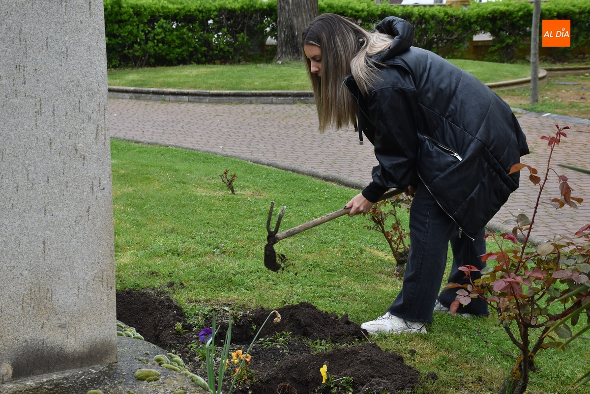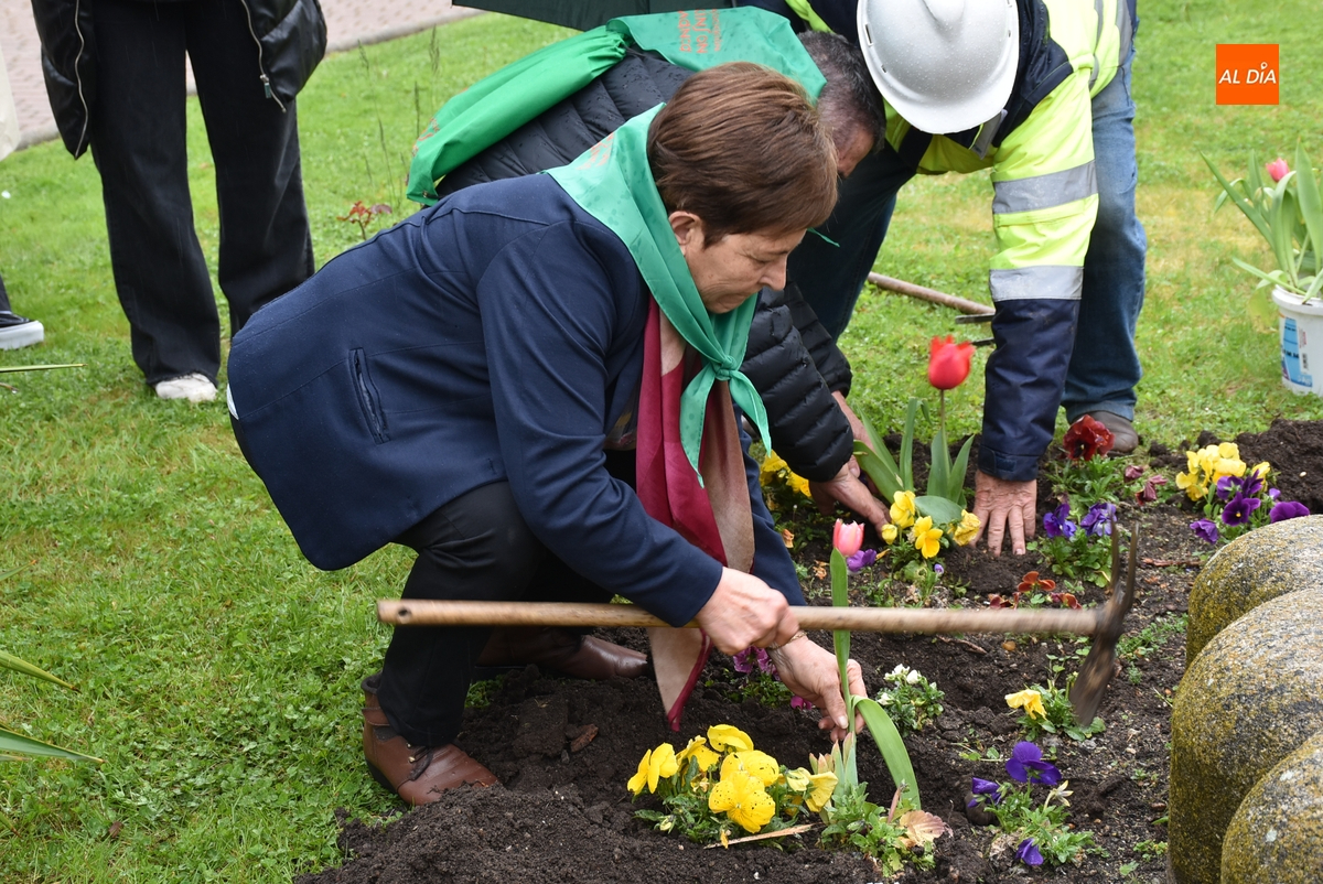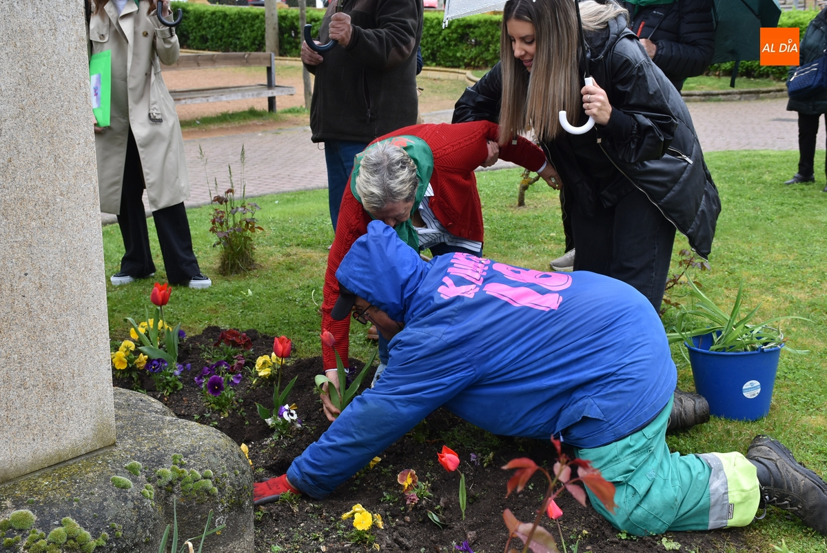 De forma previa a la plantación de los tulipanes, la coordinadora de la sede de Ciudad Rodrigo de la Asociación de Parkinson, María García Bernal, dio lectura a un manifiesto en torno a este Día Mundial.