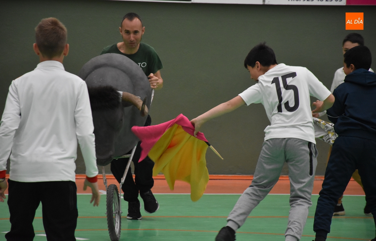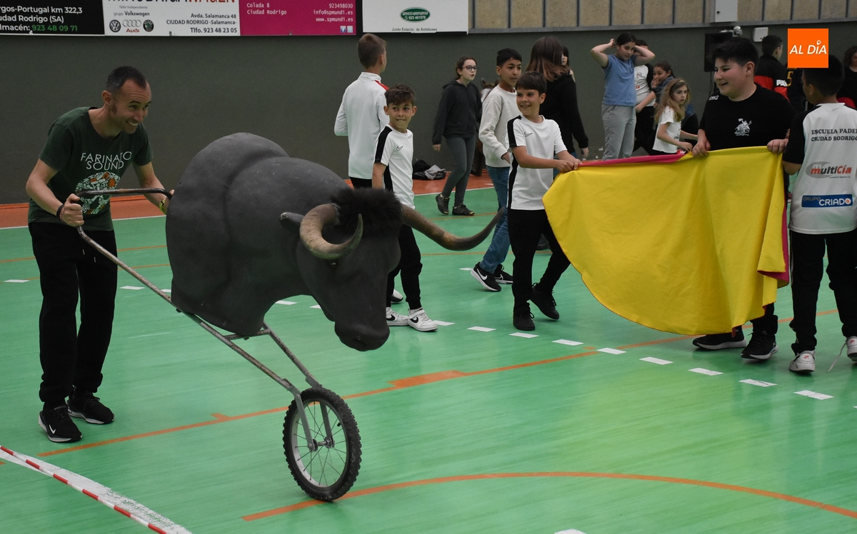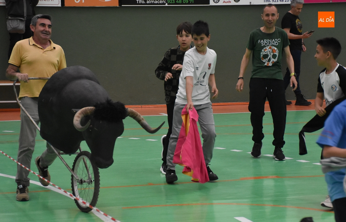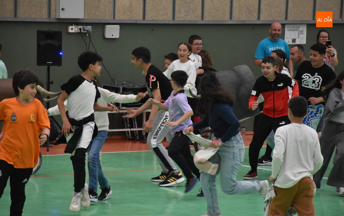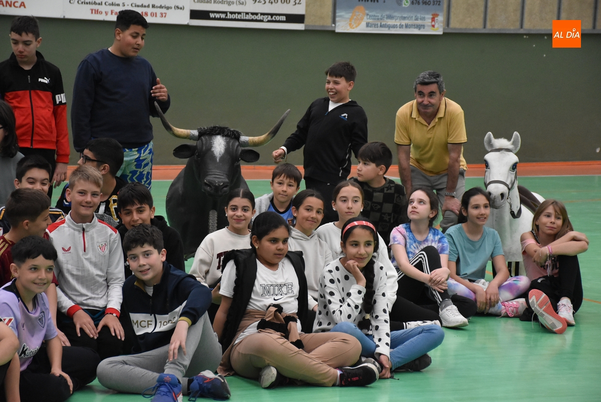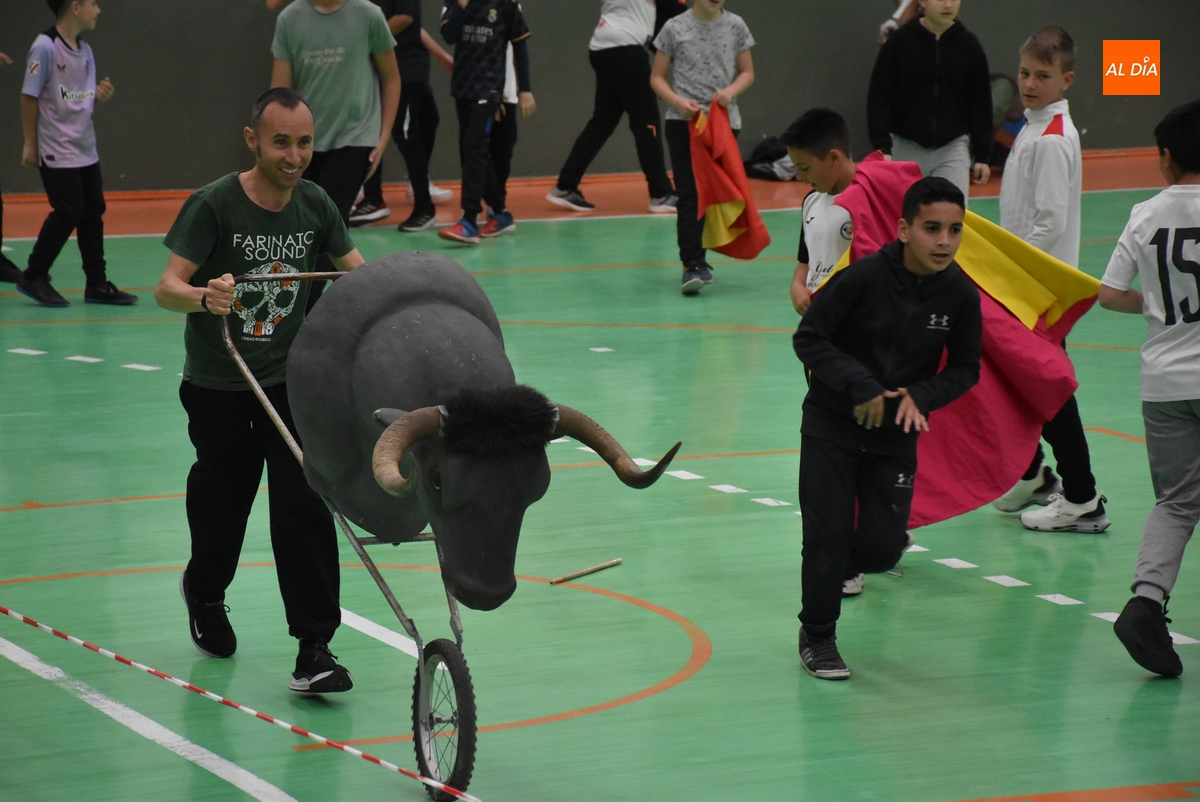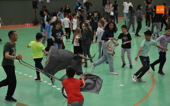 La primera actividad en el Pabellón consistió en un encierro, para lo cual se contó con varios astados procedentes de Fuenteguinaldo, que corrieron delante de todos los que se quisieron medir a ellos, en distintas tandas por niveles educativos (este encierro también contó con ‘caballistas’). Para que no faltase ningún detalle, durante el tiempo de celebración de estas carreras estuvo sonando La Campana Gorda.