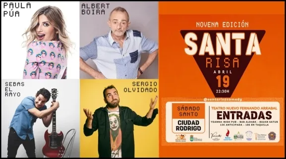 Paula Púa, Albert Boira, Sebas El Rayo y Sergio Olvidado encabezan el cartel de la IX edición de Santa Risa, que promete llenar el Teatro Nuevo Fernando Arrabal la noche del Sábado de Gloria.