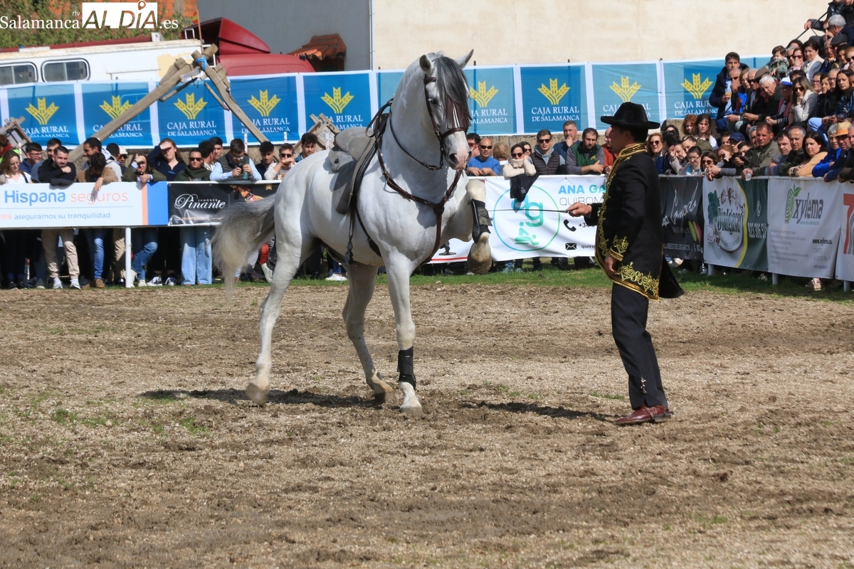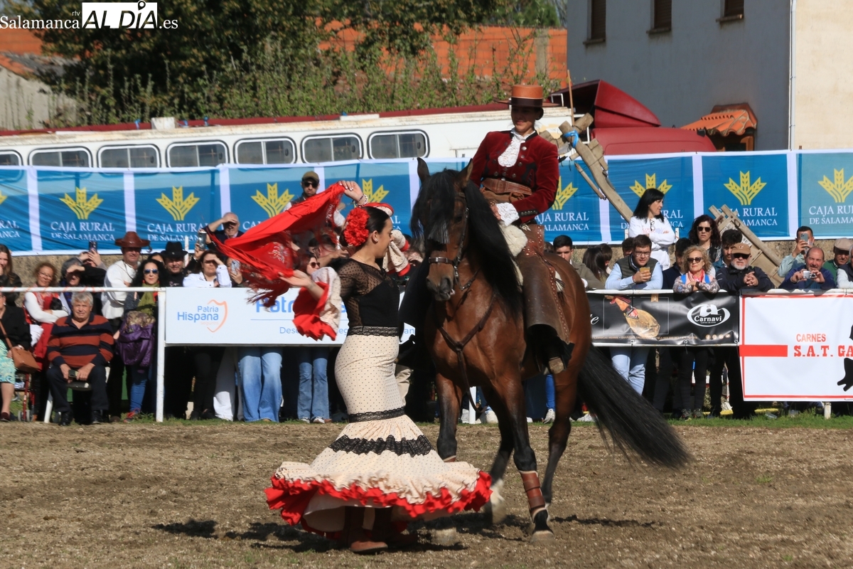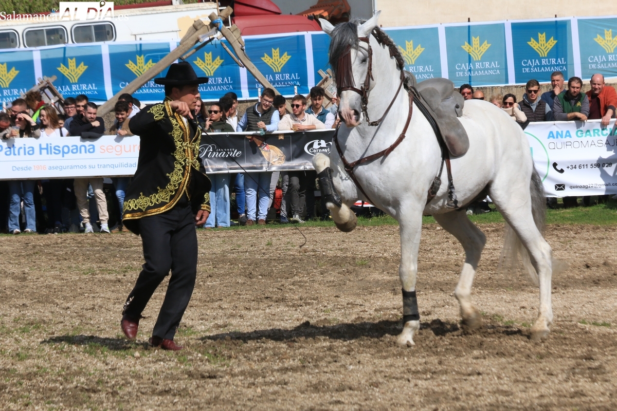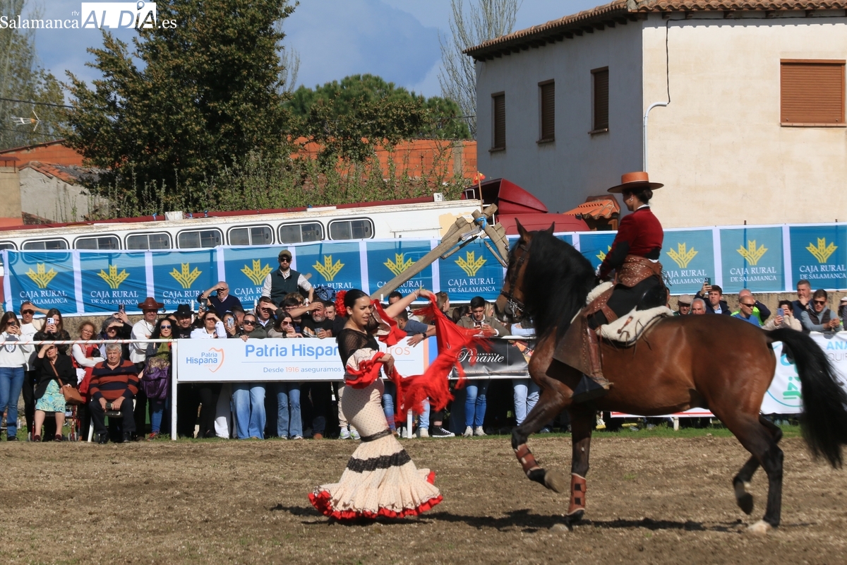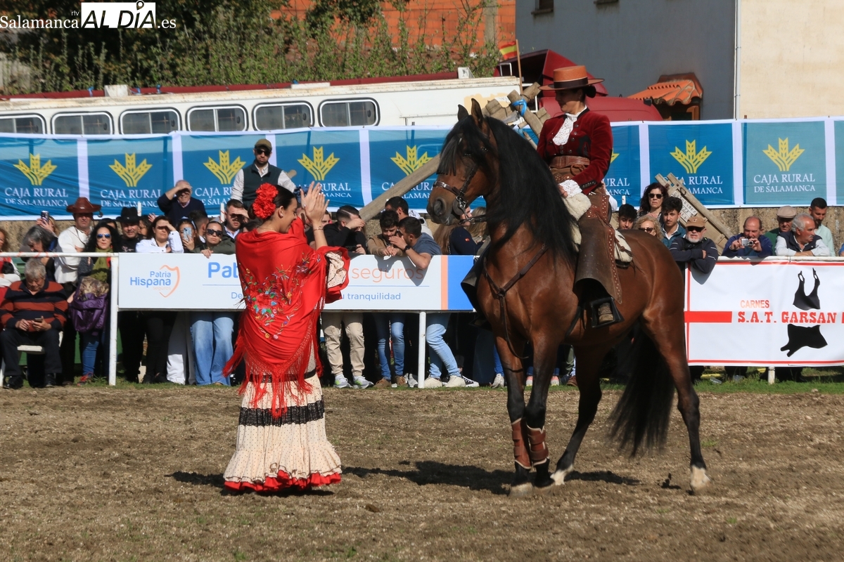 El espectáculo ‘Pura vida ecuestre’, a cargo de El Duende Ecuestre, y que contaba con la participación de Alberto Borjas, subcampeón de SICAB 2024, puso un extraordinario broche este domingo a la IV Feria Solidaria del Caballo que se ha desarrollado a lo largo de este fin de semana en la localidad de Bañobárez, evento organizado por la Asociación Cultural de Castilla y León del Caballo (Acylcab) a beneficio de la Asociación de Familiares de Enfermos de Alzheimer de Salamanca (AFA).