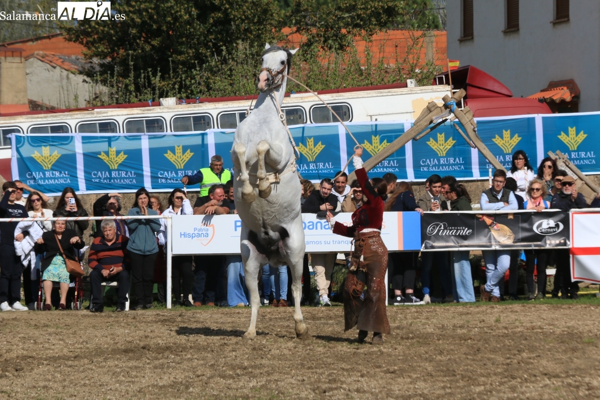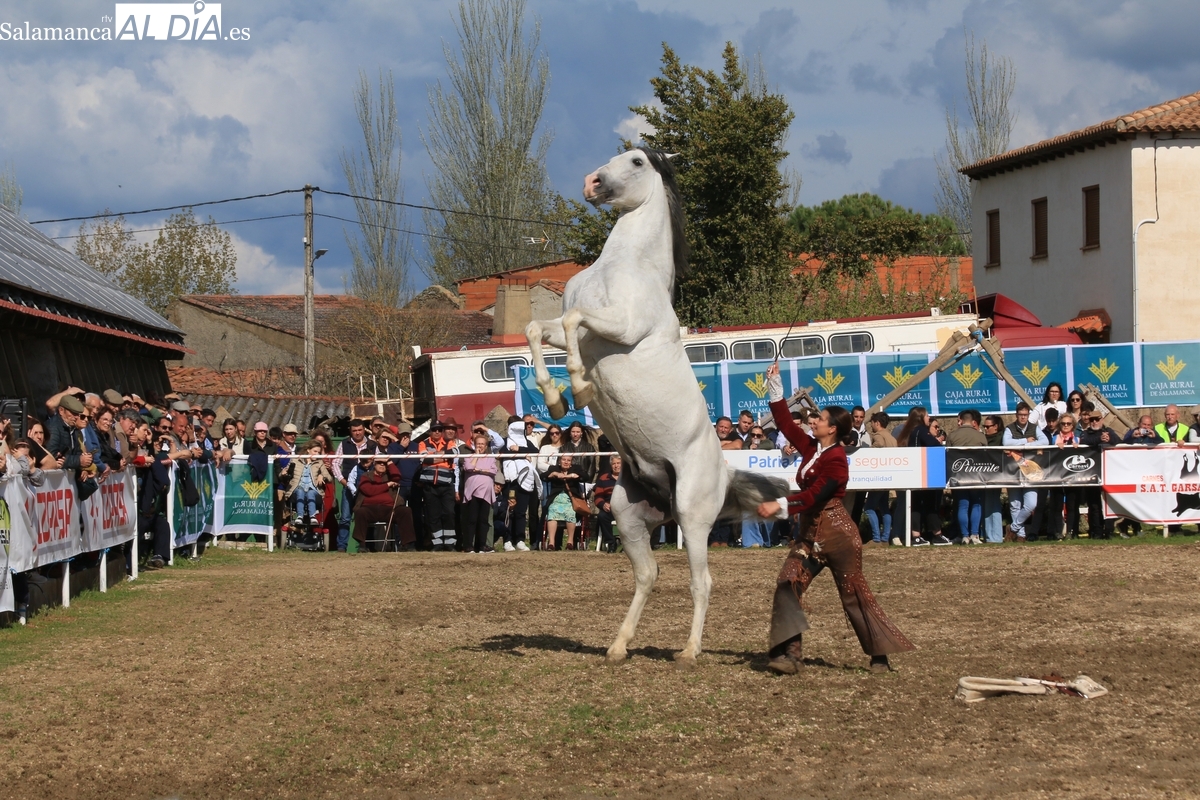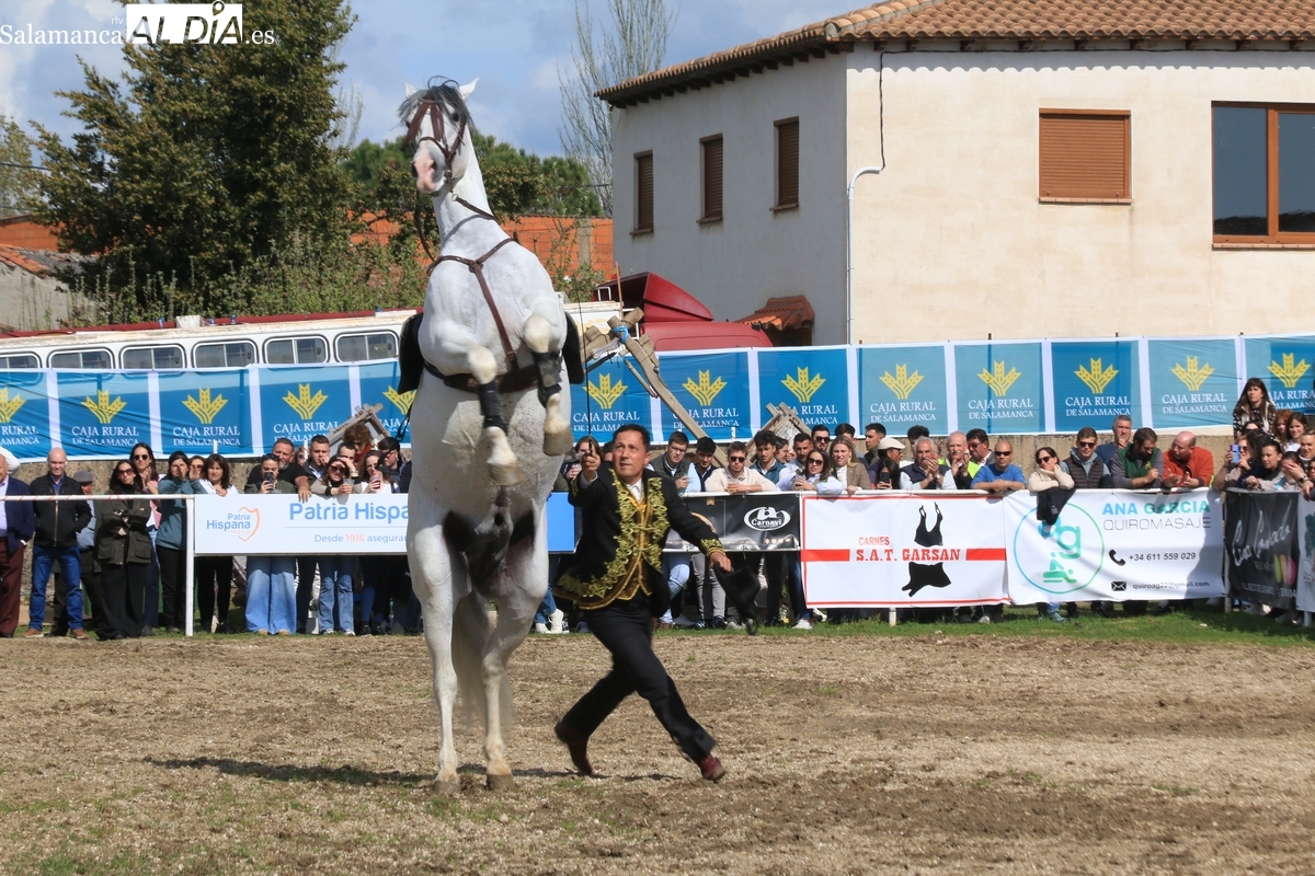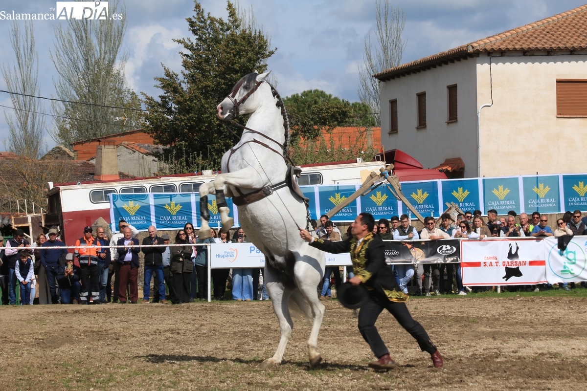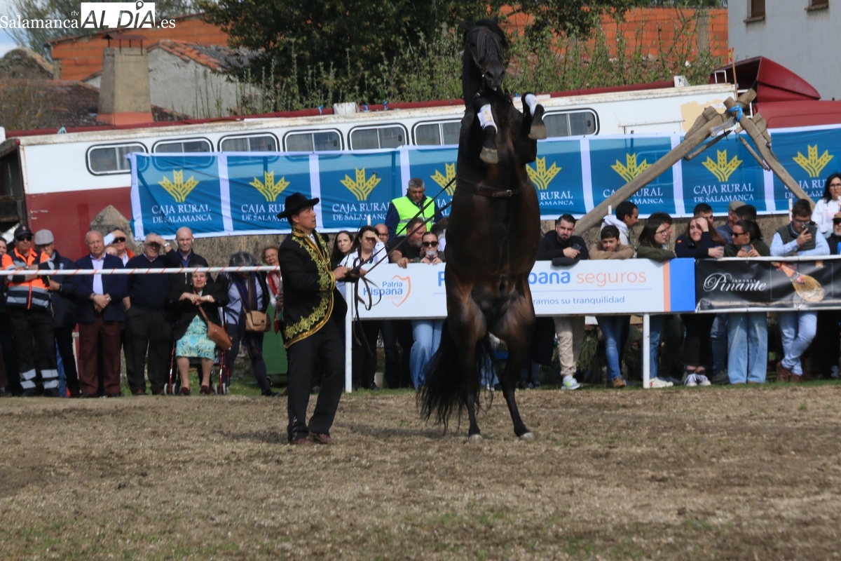 El espectáculo ‘Pura vida ecuestre’, a cargo de El Duende Ecuestre, y que contaba con la participación de Alberto Borjas, subcampeón de SICAB 2024, puso un extraordinario broche este domingo a la IV Feria Solidaria del Caballo que se ha desarrollado a lo largo de este fin de semana en la localidad de Bañobárez, evento organizado por la Asociación Cultural de Castilla y León del Caballo (Acylcab) a beneficio de la Asociación de Familiares de Enfermos de Alzheimer de Salamanca (AFA).