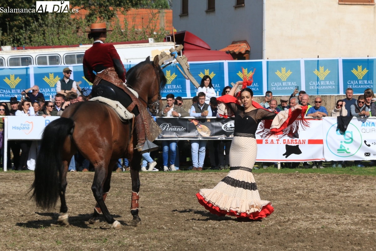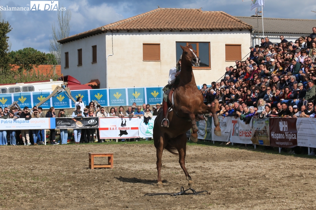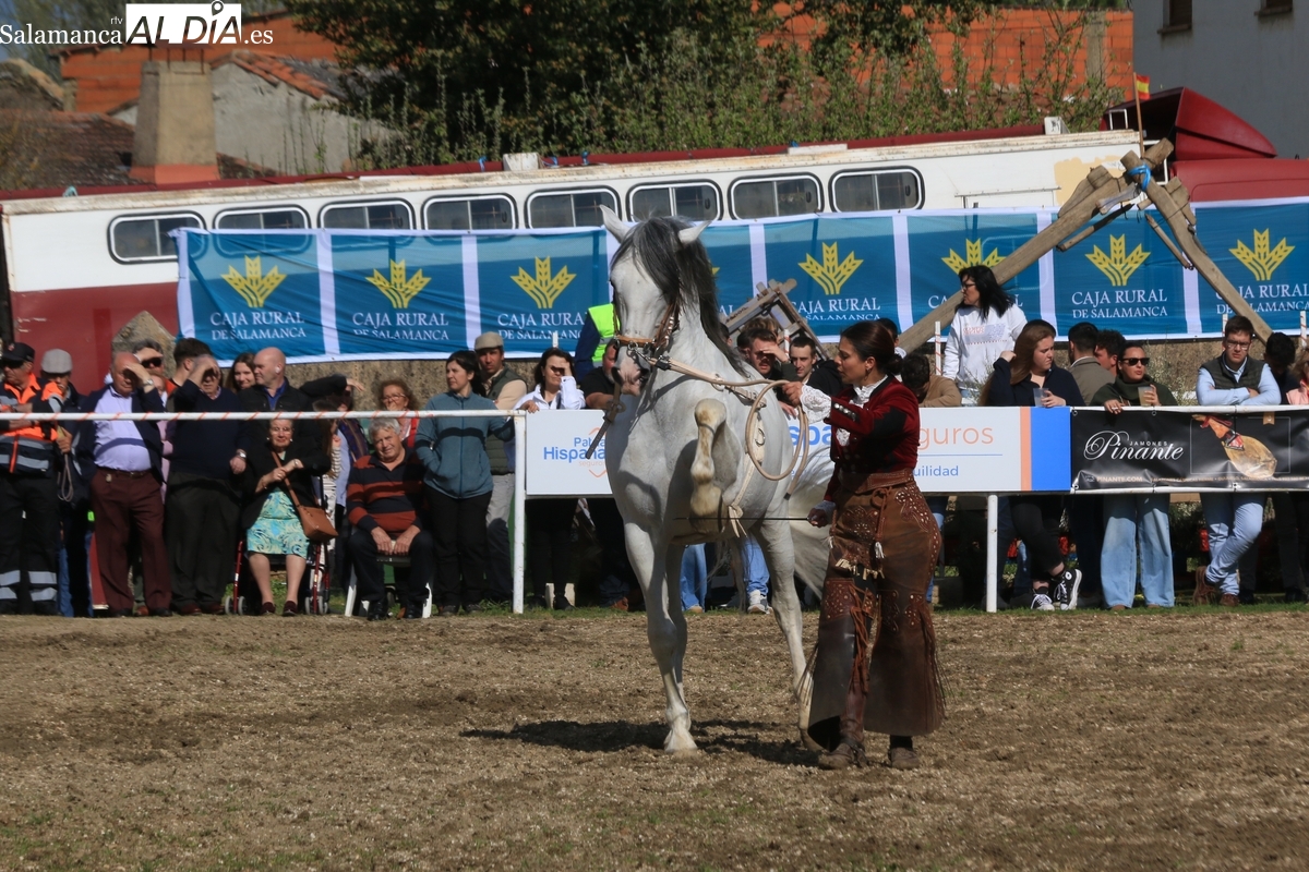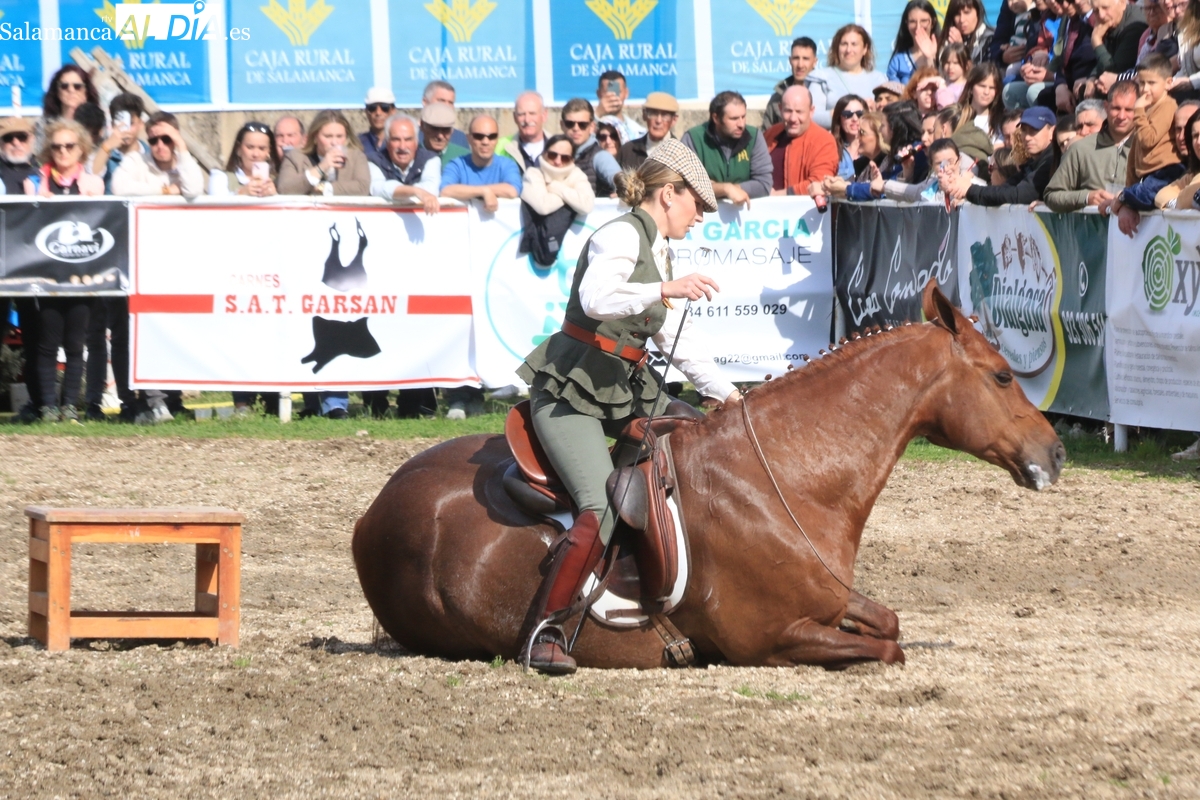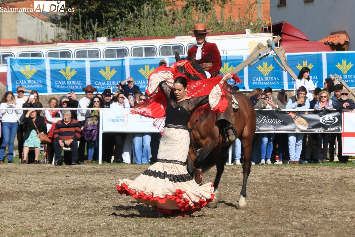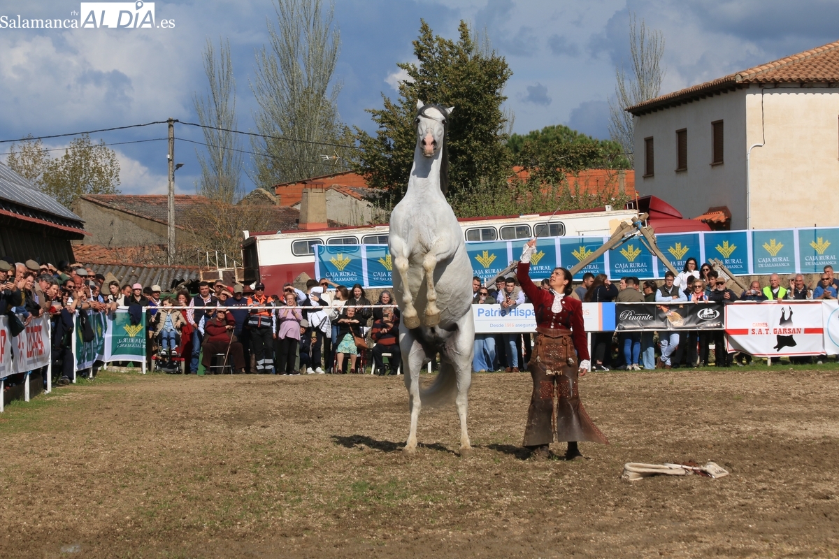 El espectáculo ‘Pura vida ecuestre’, a cargo de El Duende Ecuestre, y que contaba con la participación de Alberto Borjas, subcampeón de SICAB 2024, puso un extraordinario broche este domingo a la IV Feria Solidaria del Caballo que se ha desarrollado a lo largo de este fin de semana en la localidad de Bañobárez, evento organizado por la Asociación Cultural de Castilla y León del Caballo (Acylcab) a beneficio de la Asociación de Familiares de Enfermos de Alzheimer de Salamanca (AFA).