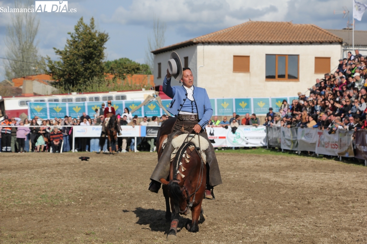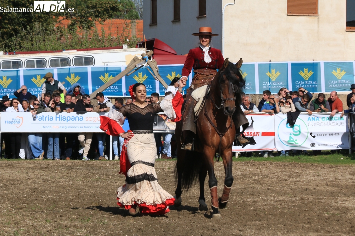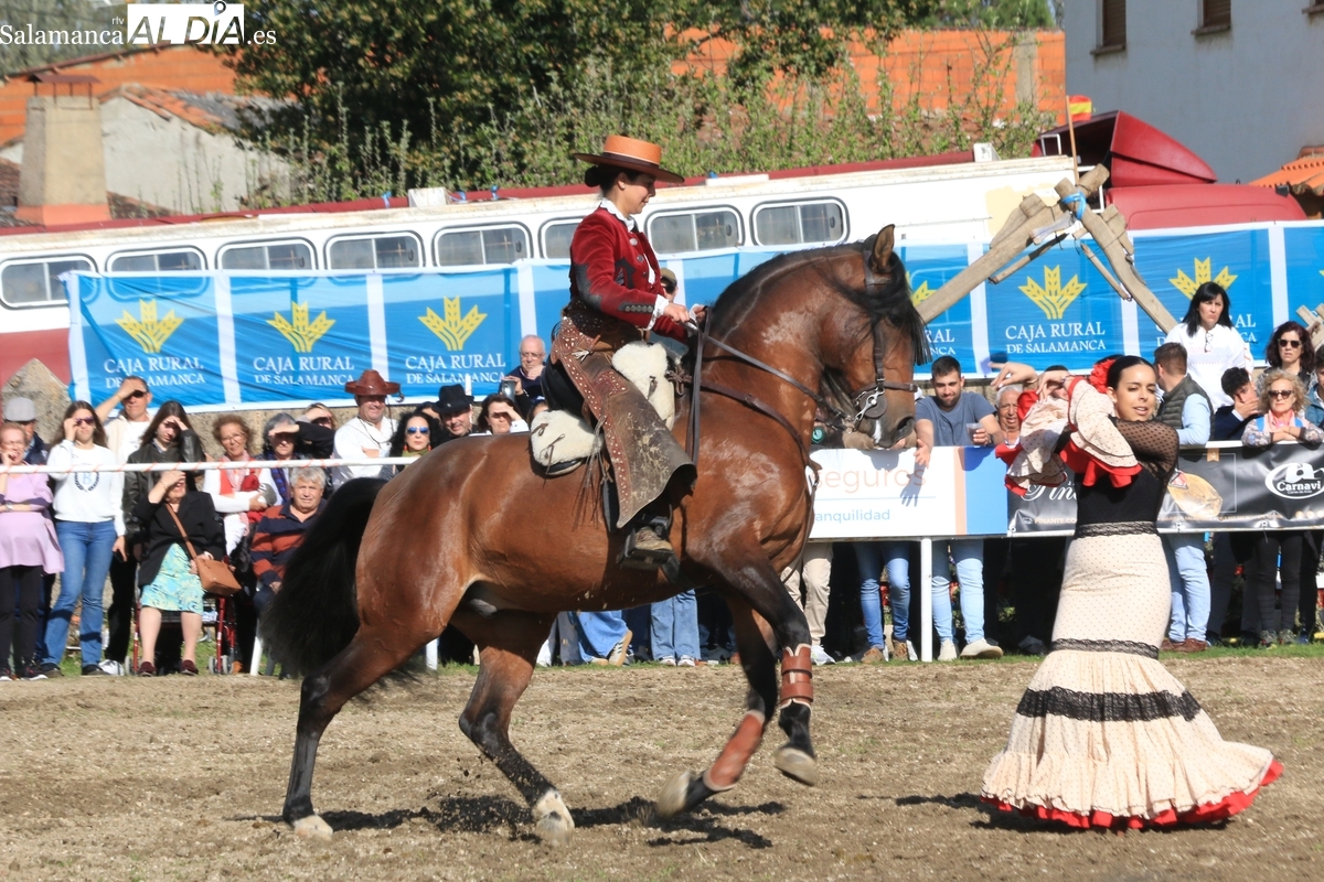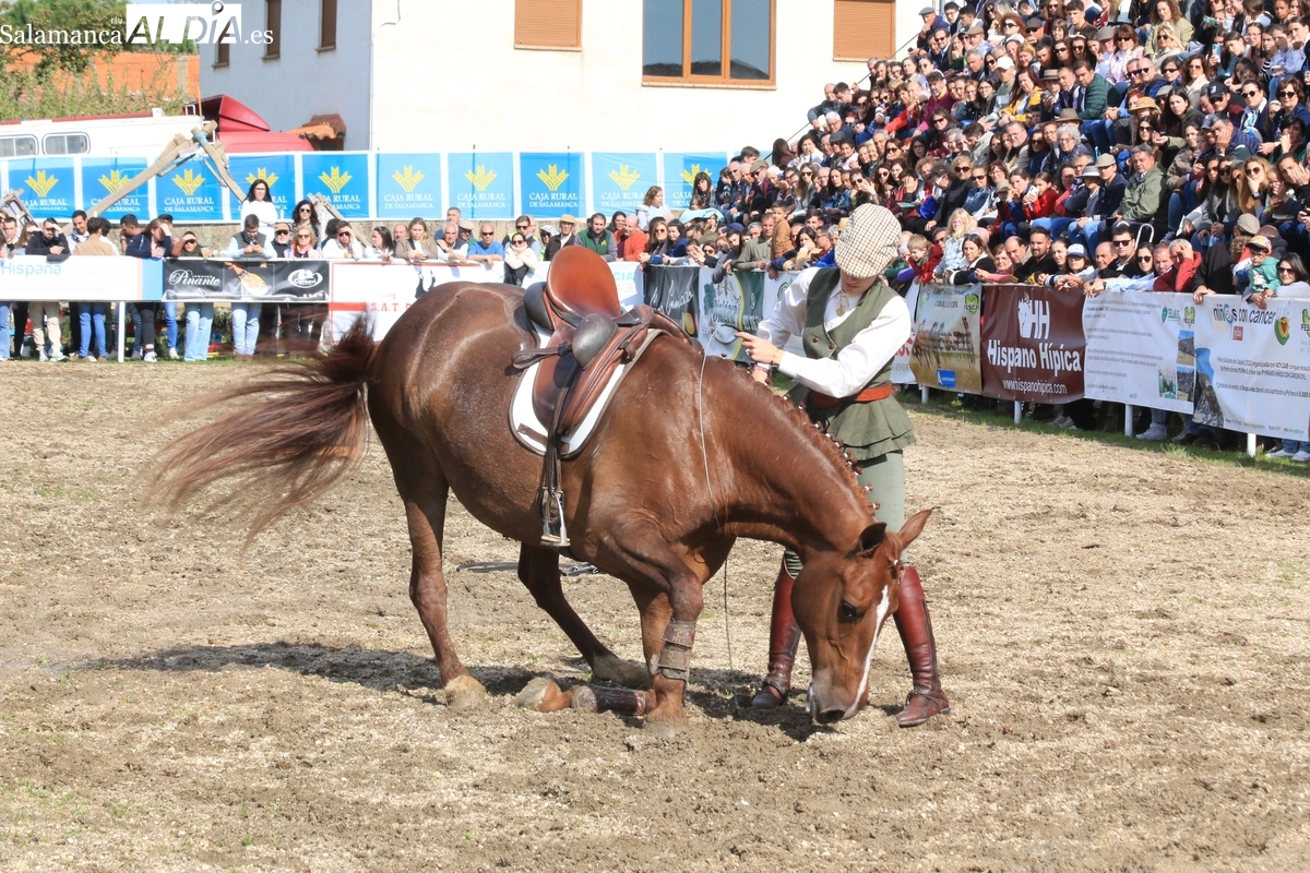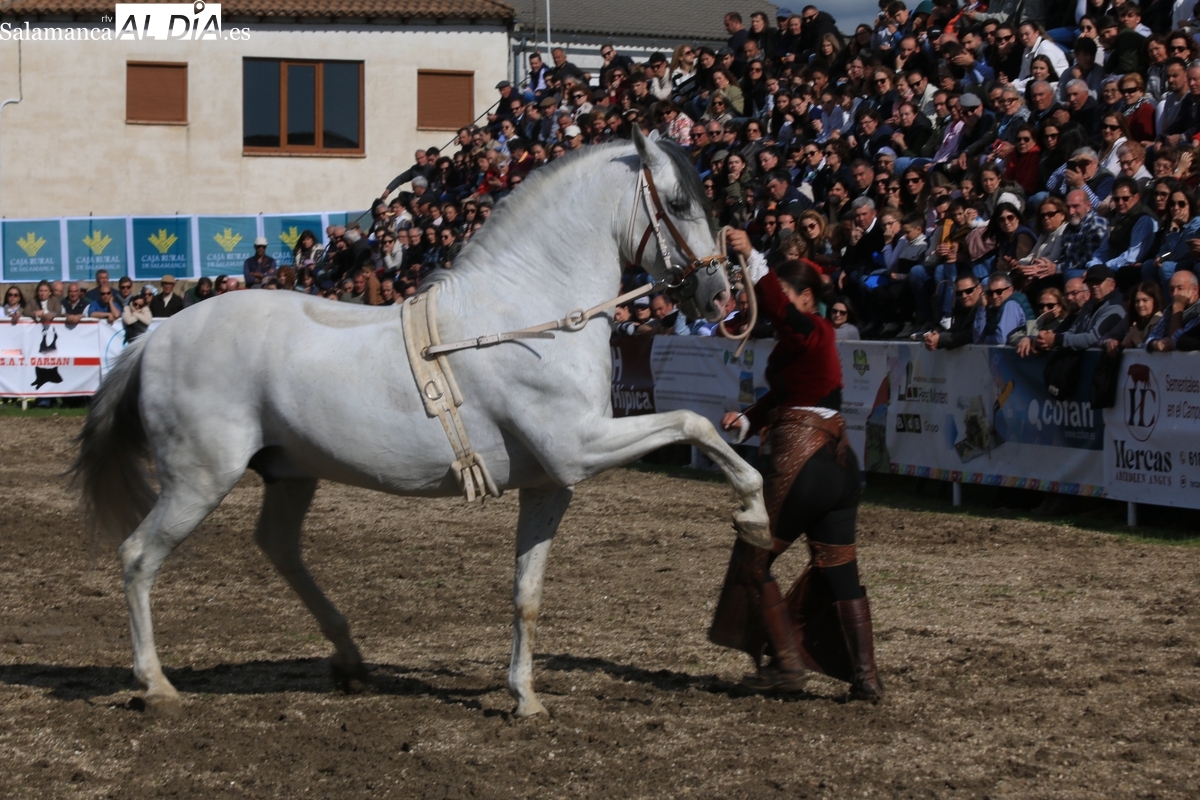 El espectáculo ‘Pura vida ecuestre’, a cargo de El Duende Ecuestre, y que contaba con la participación de Alberto Borjas, subcampeón de SICAB 2024, puso un extraordinario broche este domingo a la IV Feria Solidaria del Caballo que se ha desarrollado a lo largo de este fin de semana en la localidad de Bañobárez, evento organizado por la Asociación Cultural de Castilla y León del Caballo (Acylcab) a beneficio de la Asociación de Familiares de Enfermos de Alzheimer de Salamanca (AFA).