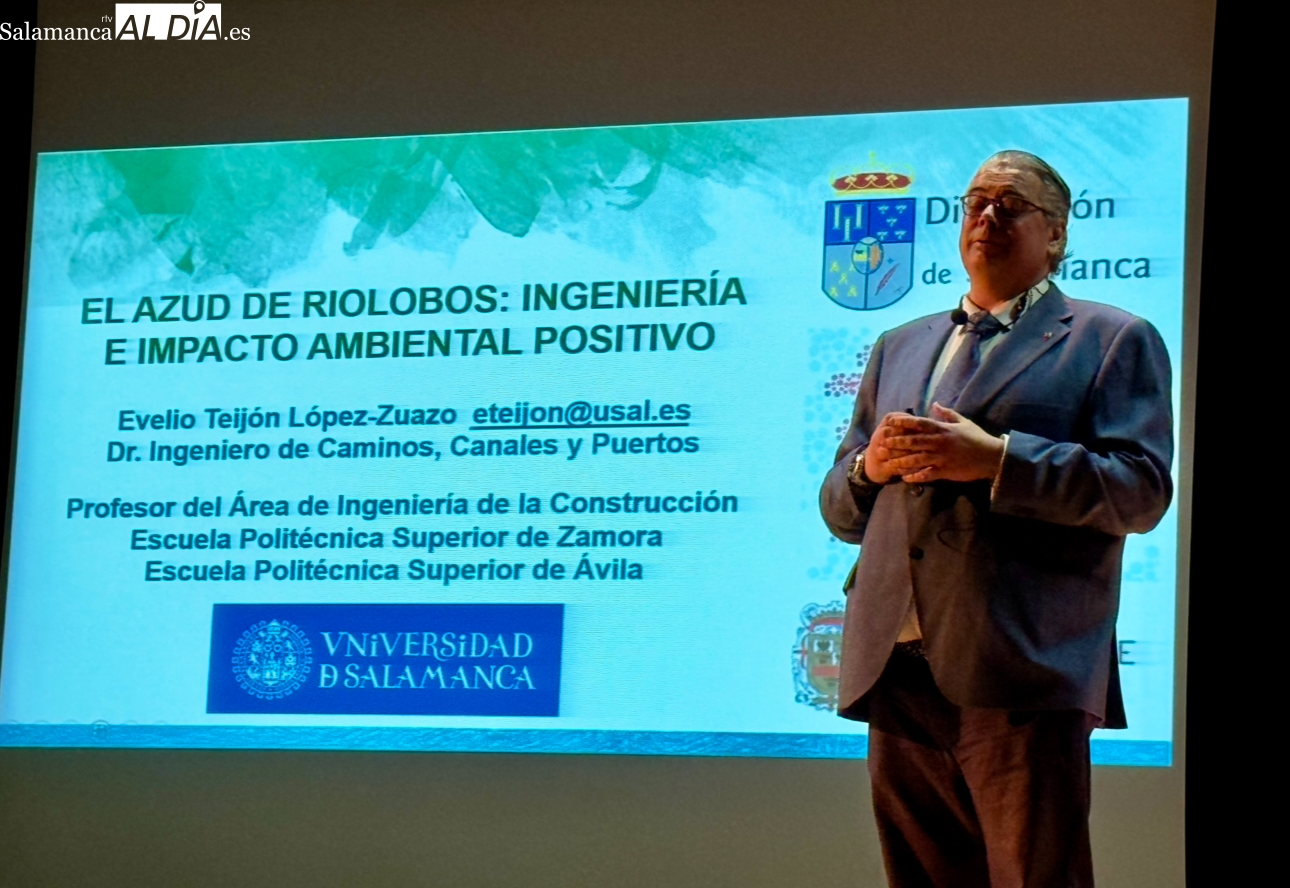 Cerca de medio centenar de personas se han dado cita en el Teatro Zaranda de Villoria para participar en la conferencia ofrecida por Evelio Teijón, Ingeniero de Caminos, Canales y Puertos y Profesor del Área de Ingeniería de la Construcción en las Escuelas Politécnicas Superiores de Zamora y Avila, centrada en ofrecer una detallada exposición sobre el Azud de Riolobos.
