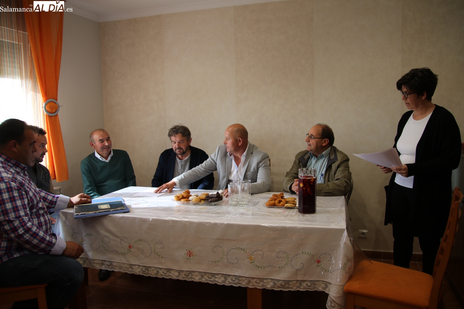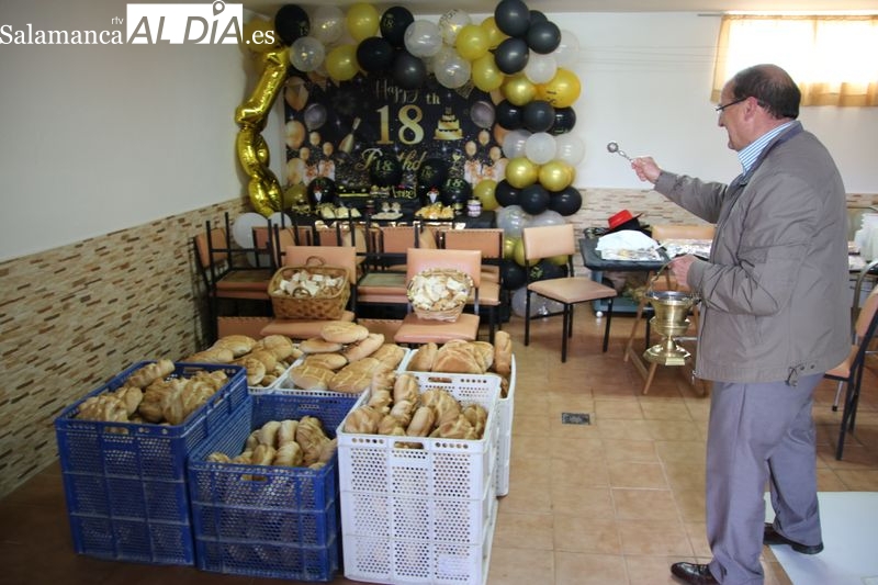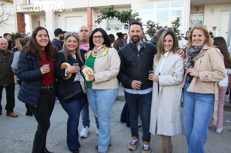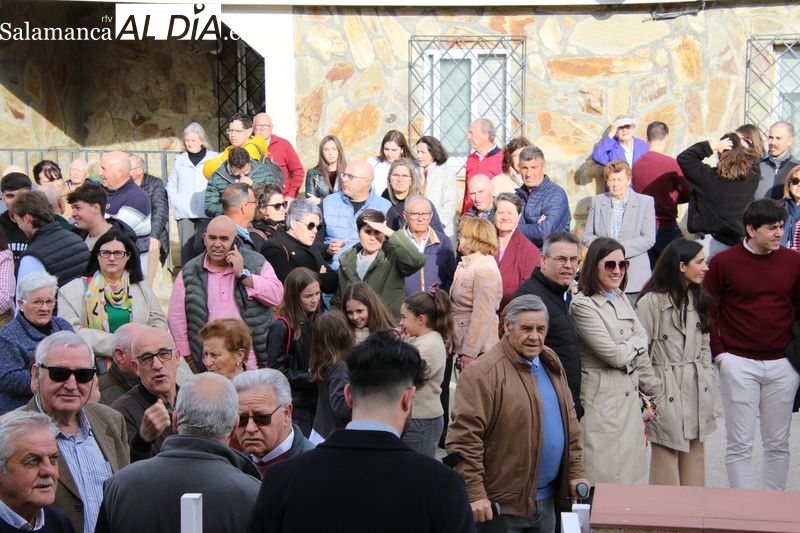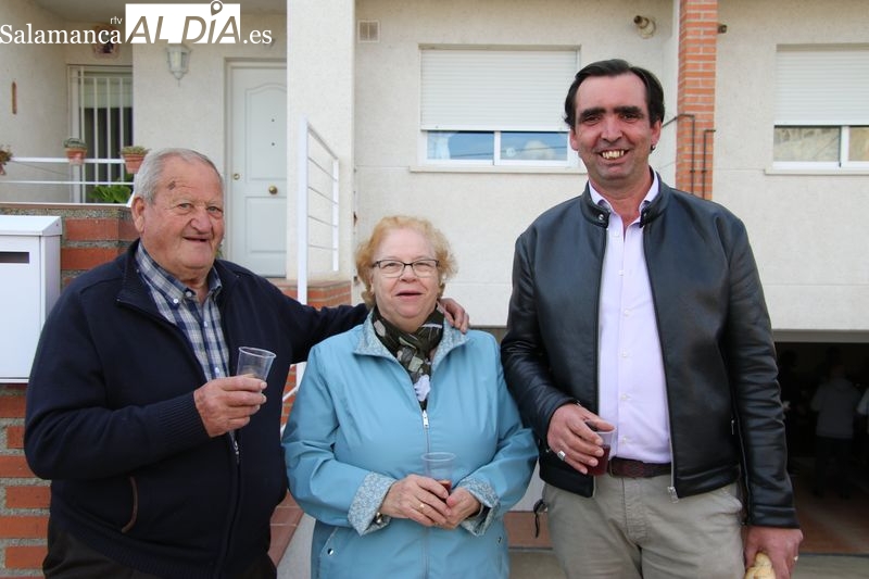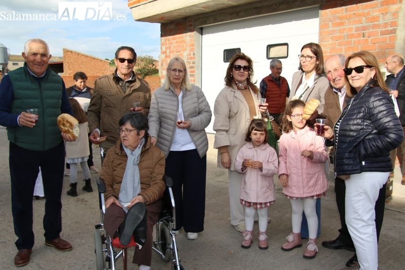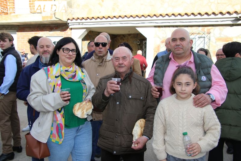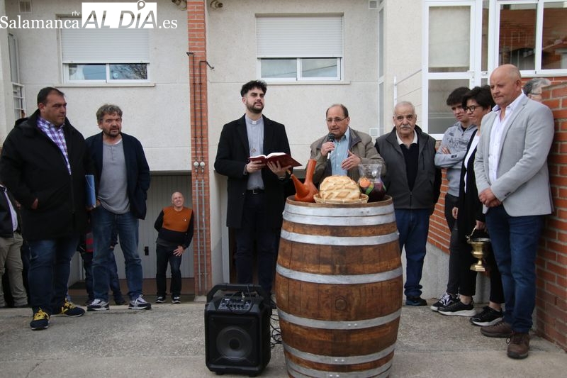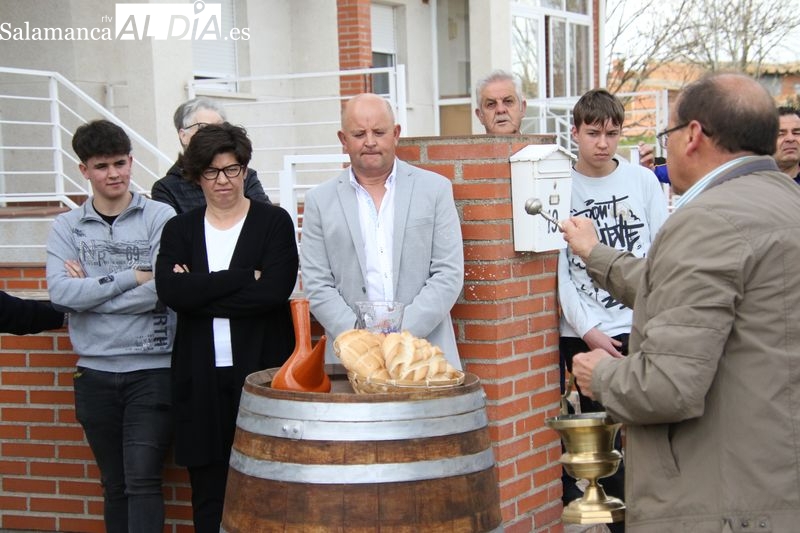 Este año se celebró en la casa de Manuel González, mayordomo saliente, donde se dio inicio al rito con la bendición de los panes y el vino a cargo de Francisco Buitrago, párroco de Navales. Frente a la puerta de la vivienda, el sacerdote encabezó este acto solemne que marcó el comienzo de la ceremonia.