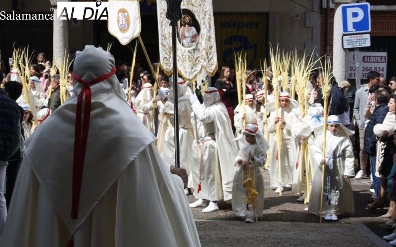La bendición de los ramos, otorgada por el párroco local Lauren Sevillano, marcaba el inicio del desfile, organizado por la Cofradía Jesús Amigo de los Niños, cuyos pasos estuvieron arropados por los sones de la Banda de Cornetas de la Hermandad de Cofradías.