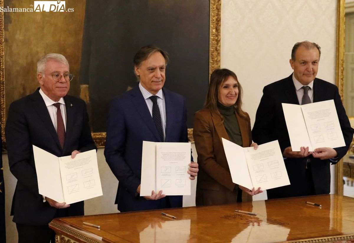 En el acto de firma, celebrado en el Salón de Recepciones del Ayuntamiento de Salamanca, han participado Carlos Closa Montero, vicepresidente de Organización y Relaciones Institucionales del Consejo Superior de Investigaciones Científicas; Rocío Lucas Navas, consejera de Educación de la Junta de Castilla y León; Carlos García Carbayo, alcalde de Salamanca, y Alberto Gurrionero, subdirector Territorial Castilla y León Sur de Unicaja.