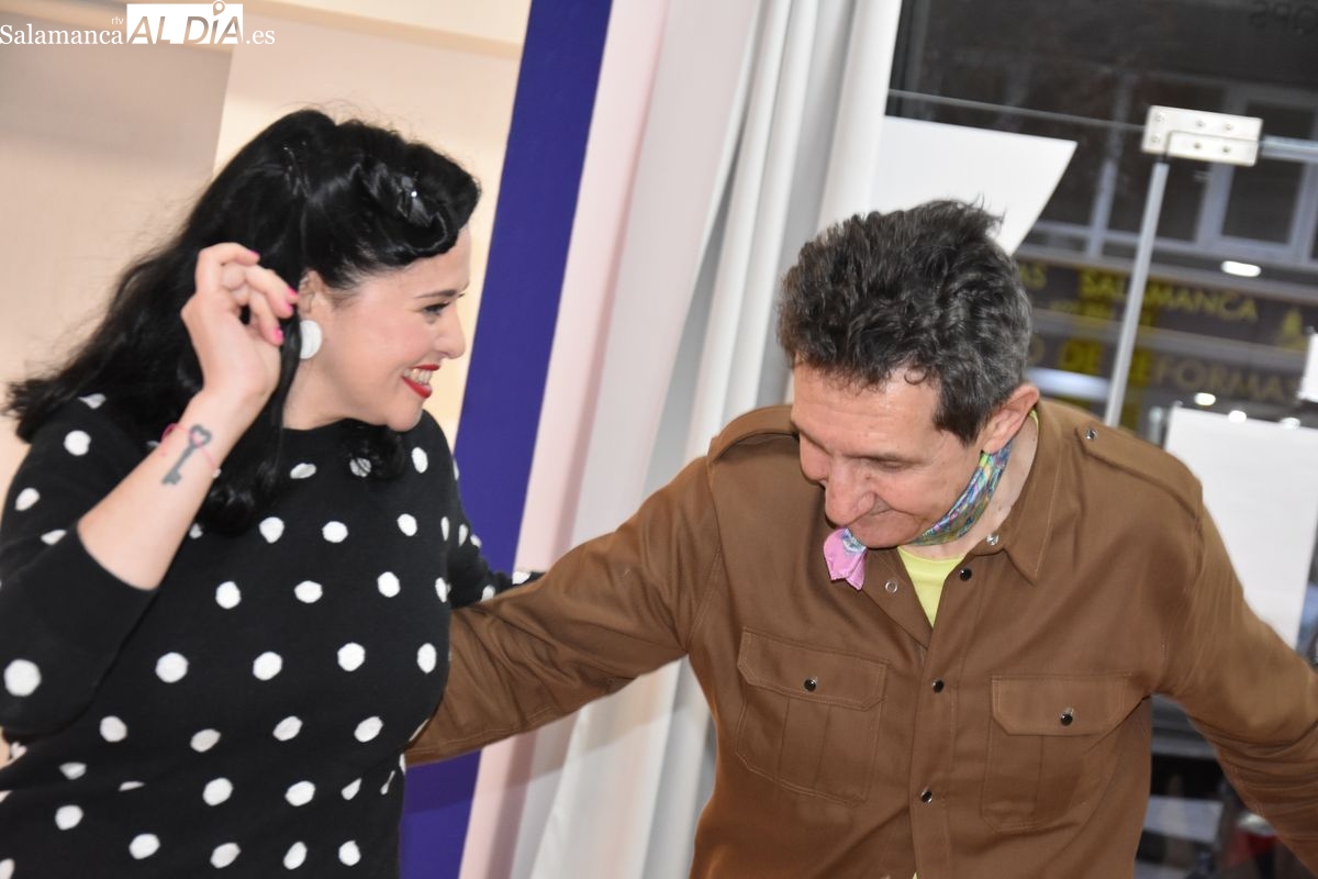 Y como si la rana del logotipo de “Swingpática Salamanca” diera un salto, los cuatro se ponen a bailar. Y es cierto, de inmediato la sonrisa es aún más ancha, vuelan las faldas y olvidamos lo nublado de una tarde de viernes ya agotado de toda la semana. Es la magia de la música que transciende La Era del Swing y que ahora nos trasmite color y alegría. Y solo hay que dejar que la música se deje sentir en este espacio de color o en la sala del DA2, pura alegría y pasos que dibujan siluetas de otro tiempo. Un tiempo que es el nuestro, el del gusto por el encuentro bajo el ritmo sincopado de la respiración del swing.