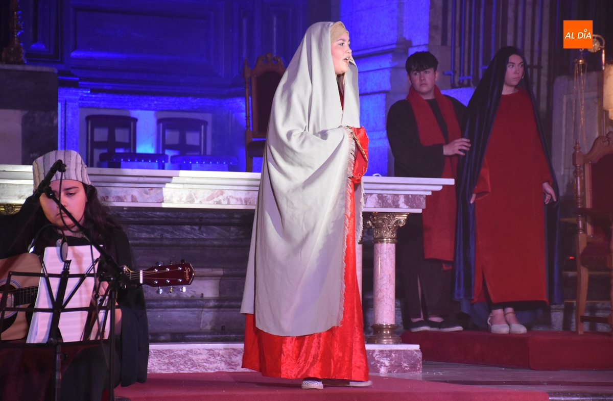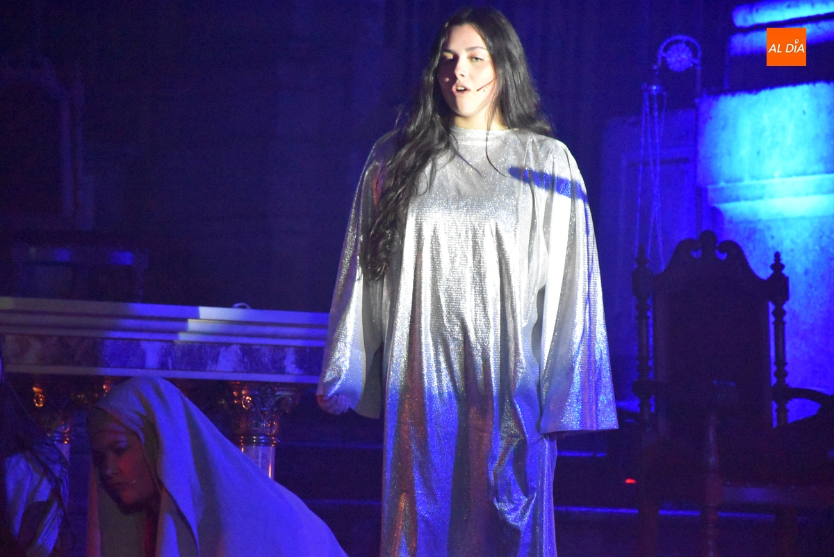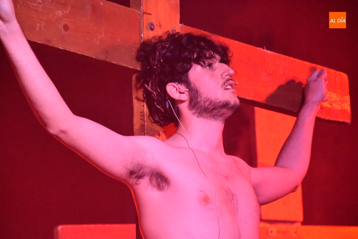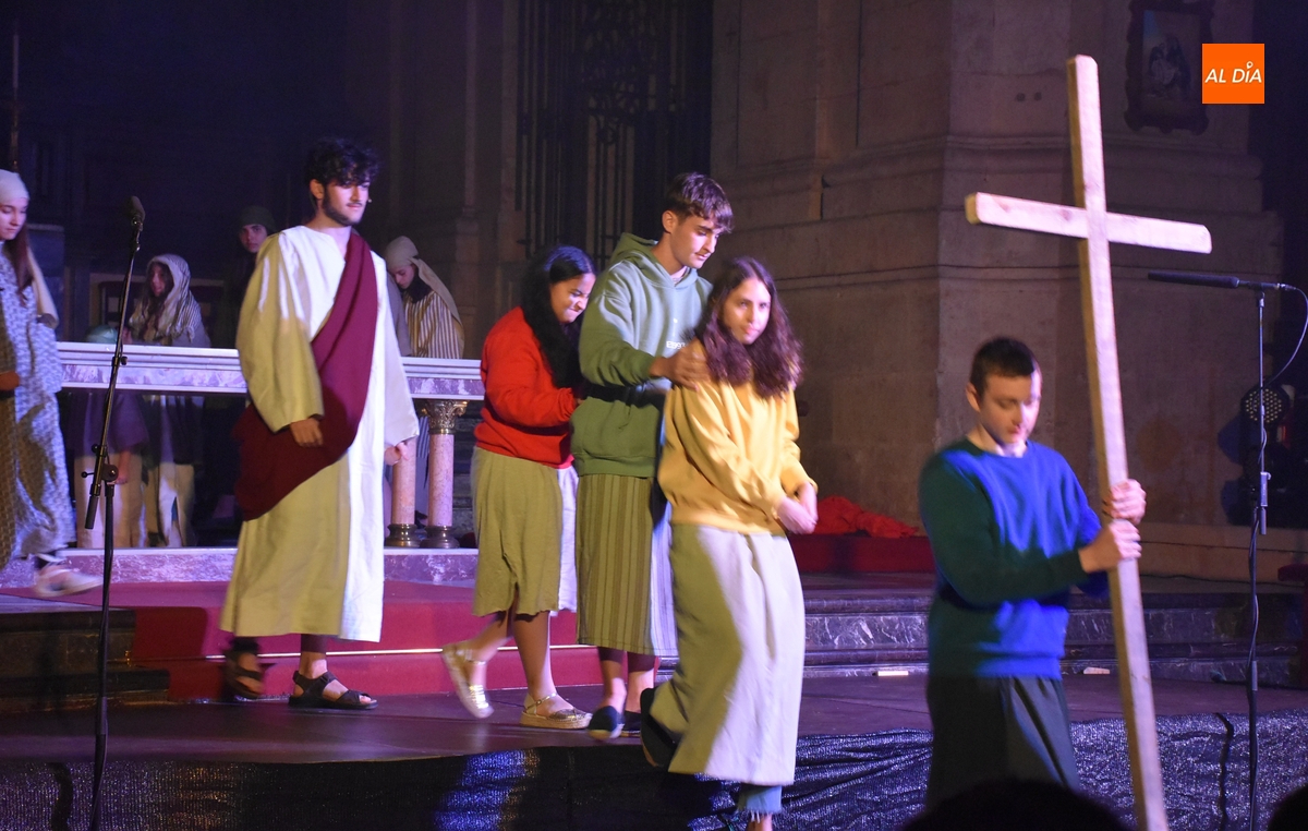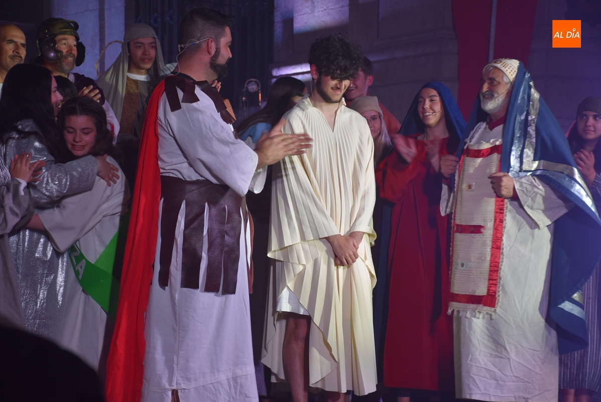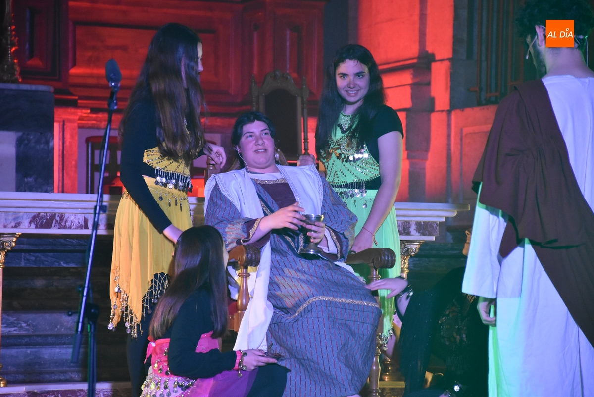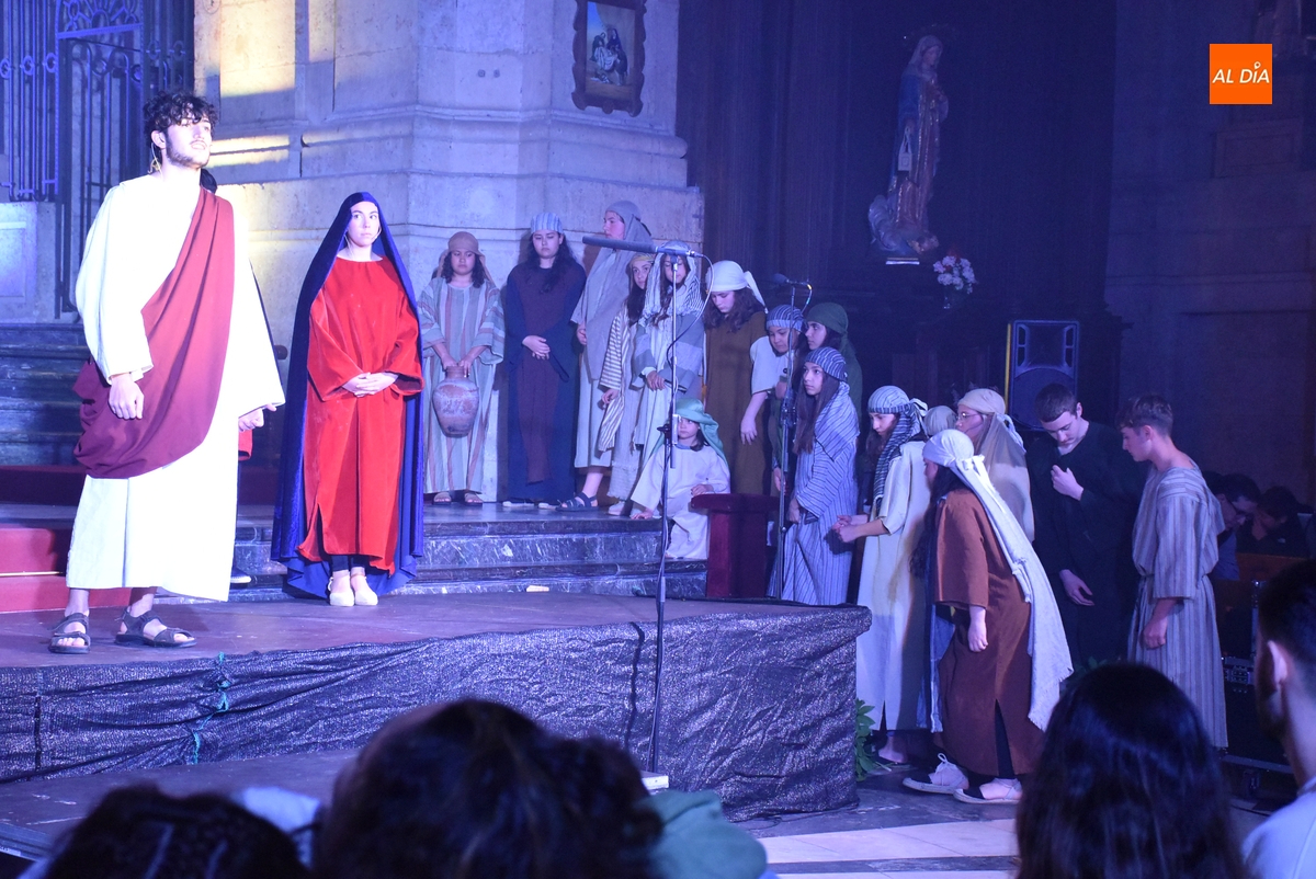 En los instantes finales de la representación también se contó con música en directo, cantando y tocando en el escenario colocado junto a las escaleras del altar de la Iglesia de Cerralbo, por la que se fueron moviendo los actores en las distintas escenas (se utilizaron todos los lugares visibles), con el momento culmen de la crucifixión en el centro de la Iglesia, tras el cual todavía quedó la parte correspondiente a la resurrección.