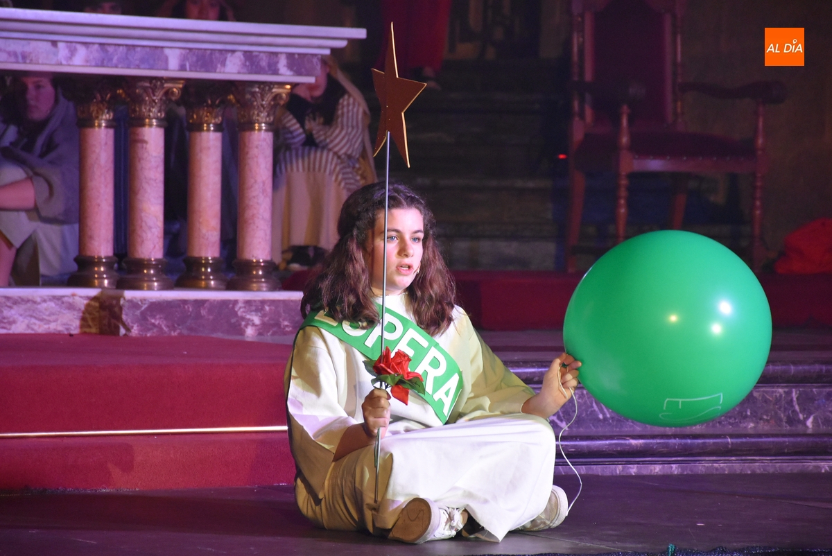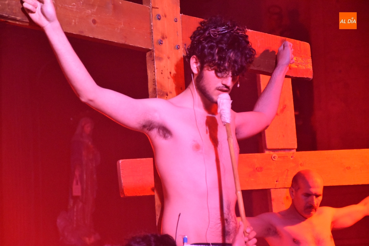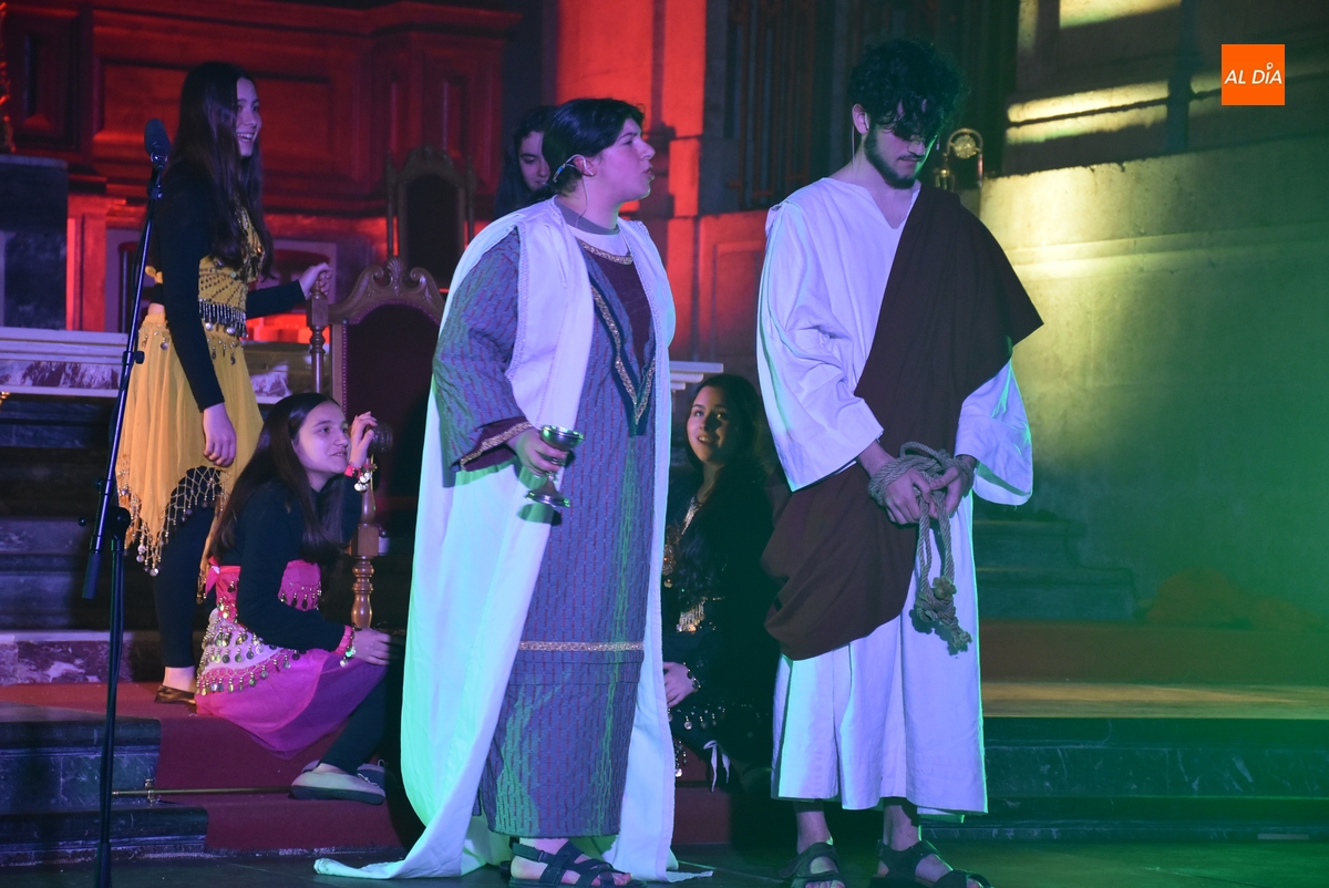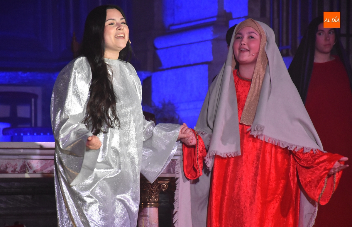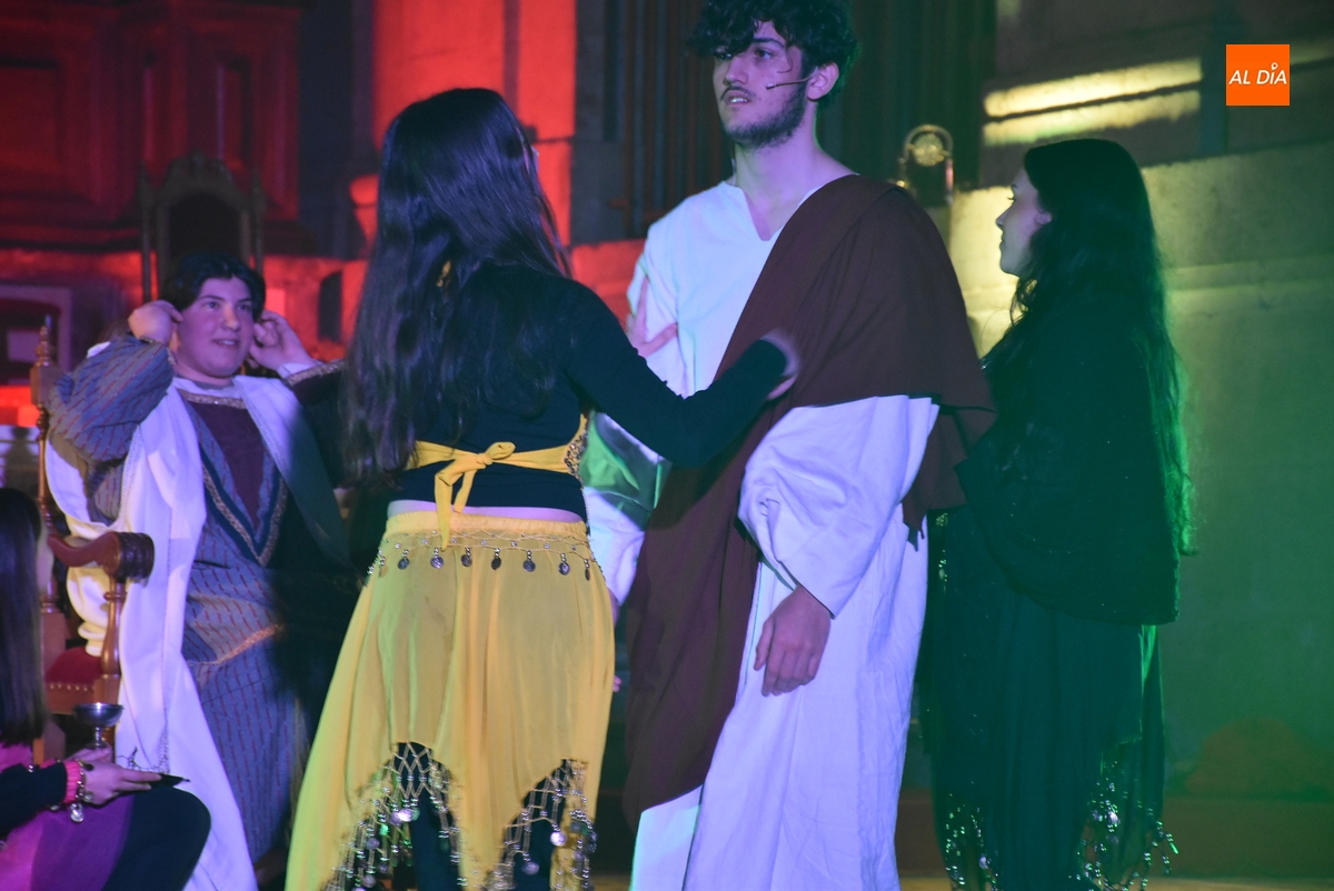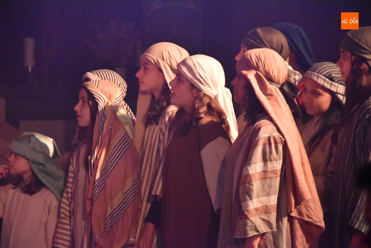 En los instantes finales de la representación también se contó con música en directo, cantando y tocando en el escenario colocado junto a las escaleras del altar de la Iglesia de Cerralbo, por la que se fueron moviendo los actores en las distintas escenas (se utilizaron todos los lugares visibles), con el momento culmen de la crucifixión en el centro de la Iglesia, tras el cual todavía quedó la parte correspondiente a la resurrección.