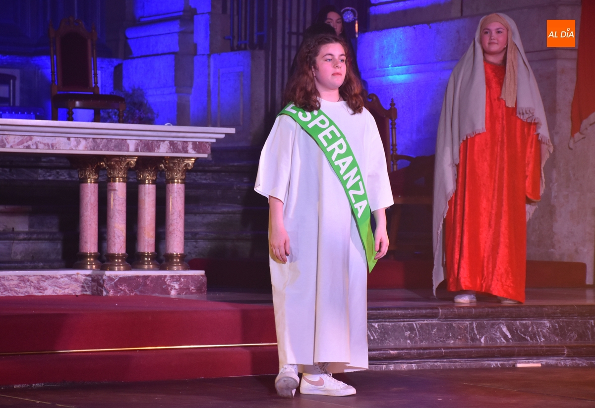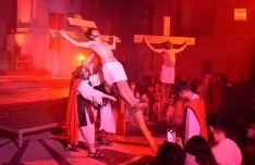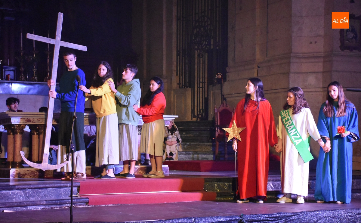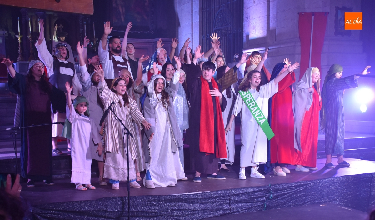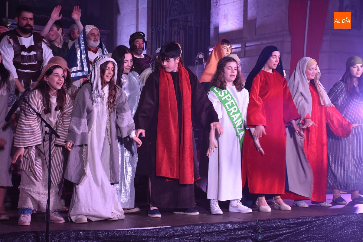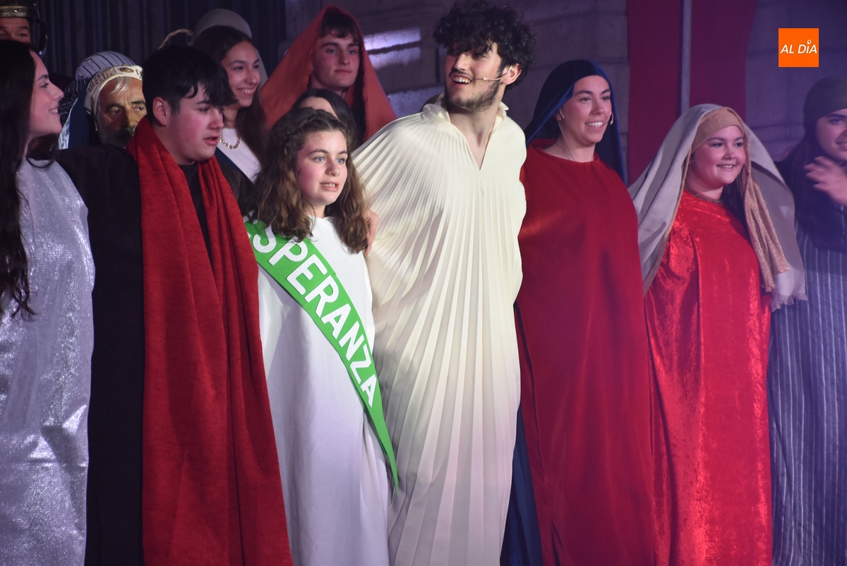 Otra novedad de La Pasión de este año es el guiño que se hace tanto al principio como al final al Año Jubilar de la Esperanza que está celebrando la Iglesia Católica, con la aparición en escena de una joven en el papel de ‘Esperanza’ (junto a Fe y a Caridad), además de recrear varios jóvenes el logotipo del Año Jubilar –consistente en una cruz-ancla a la que están agarradas varias personas-.