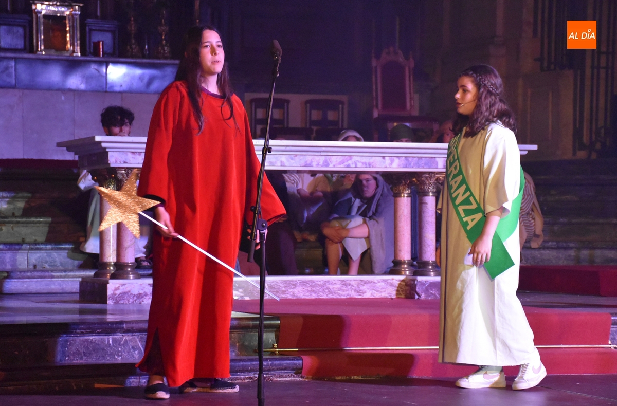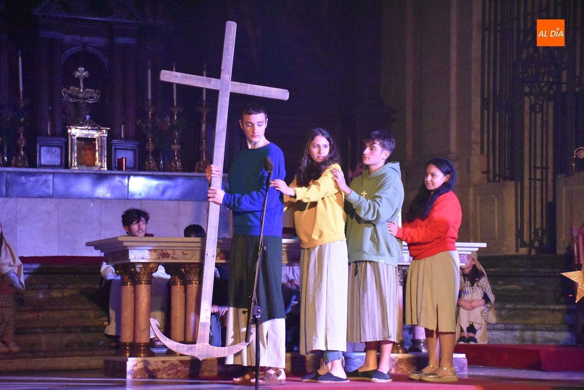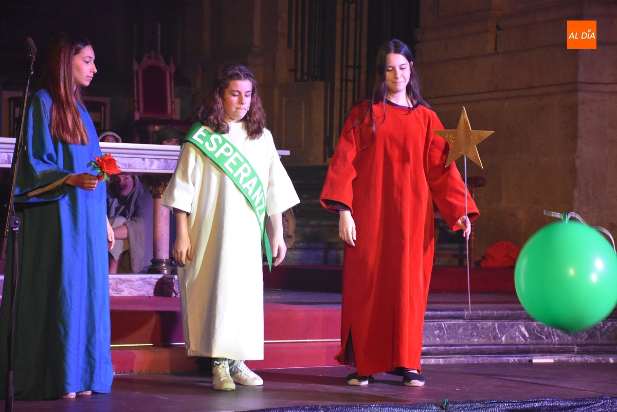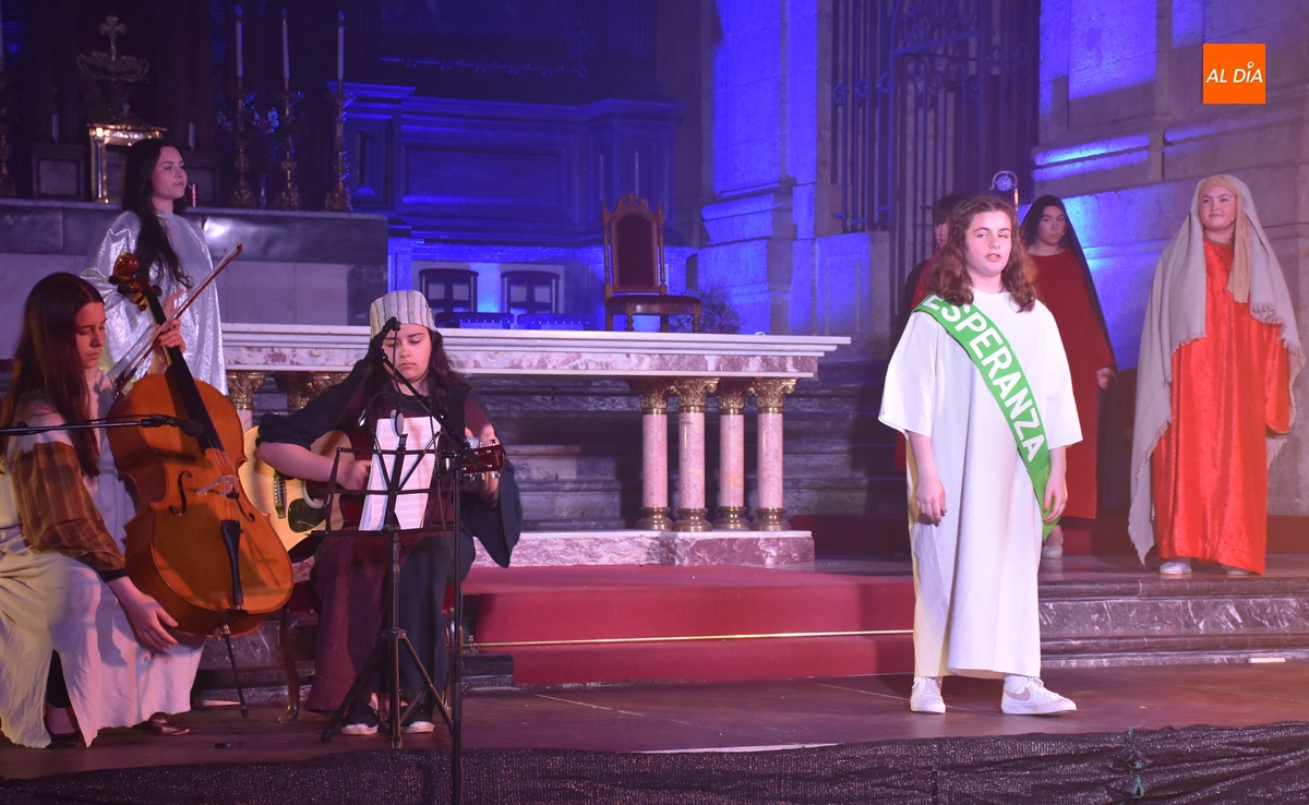 Otra novedad de La Pasión de este año es el guiño que se hace tanto al principio como al final al Año Jubilar de la Esperanza que está celebrando la Iglesia Católica, con la aparición en escena de una joven en el papel de ‘Esperanza’ (junto a Fe y a Caridad), además de recrear varios jóvenes el logotipo del Año Jubilar –consistente en una cruz-ancla a la que están agarradas varias personas-.