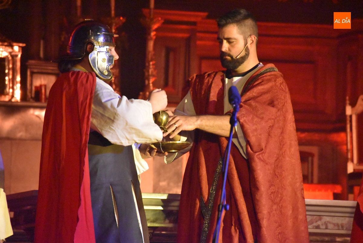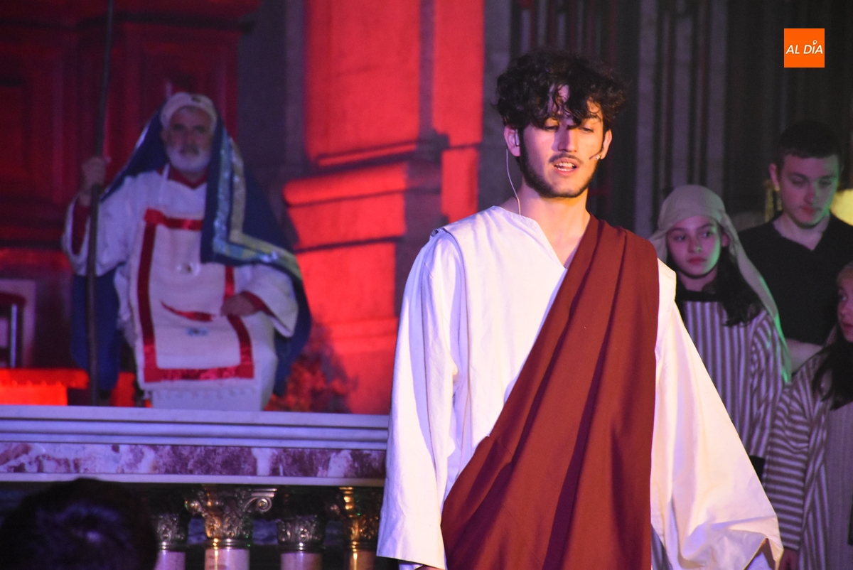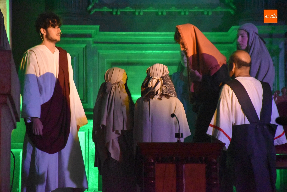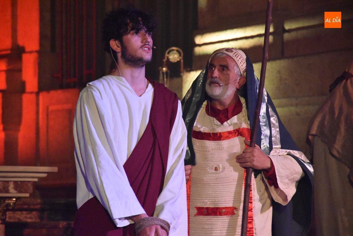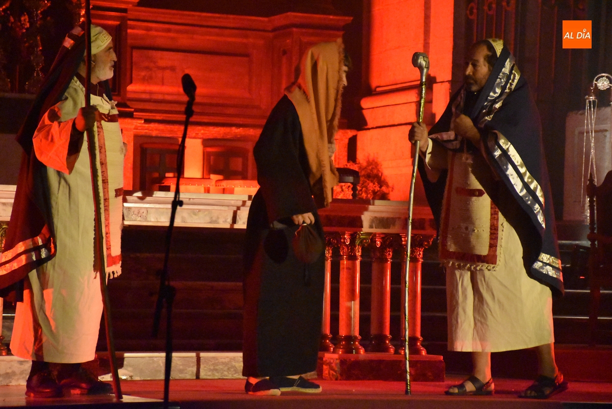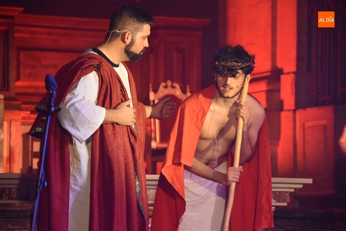Sin preocupaciones por la lluvia, y sin la incomodidad del frío (la noche del Lunes Santo se puso fresca en Ciudad Rodrigo), el público que llenó la Iglesia de Cerralbo disfrutó de una representación de La Pasión que “siempre es la misma, pero siempre es diferente”, como mencionó su cabeza visible, el sacerdote Juan Carlos Sánchez, que este año está teniendo como ‘mano derecha’ a un histórico del montaje, Pablo Fernández Sobreviela.