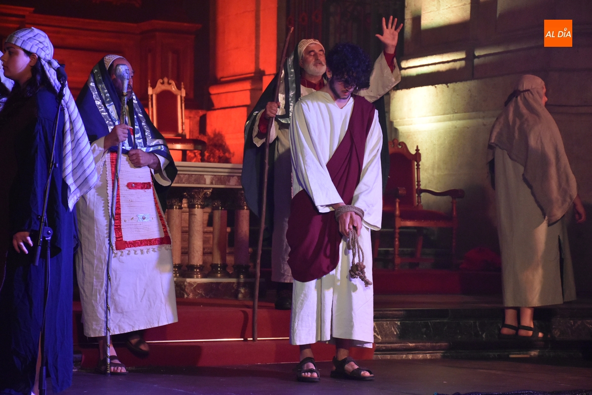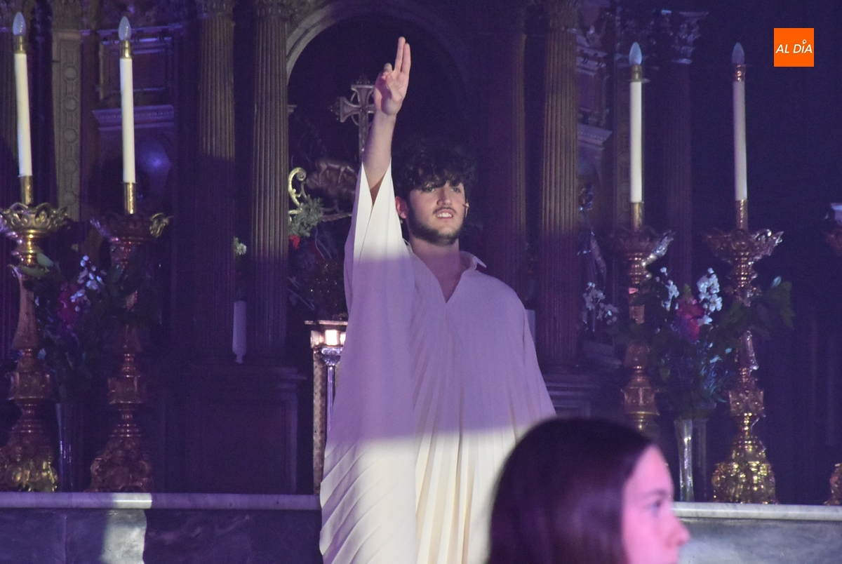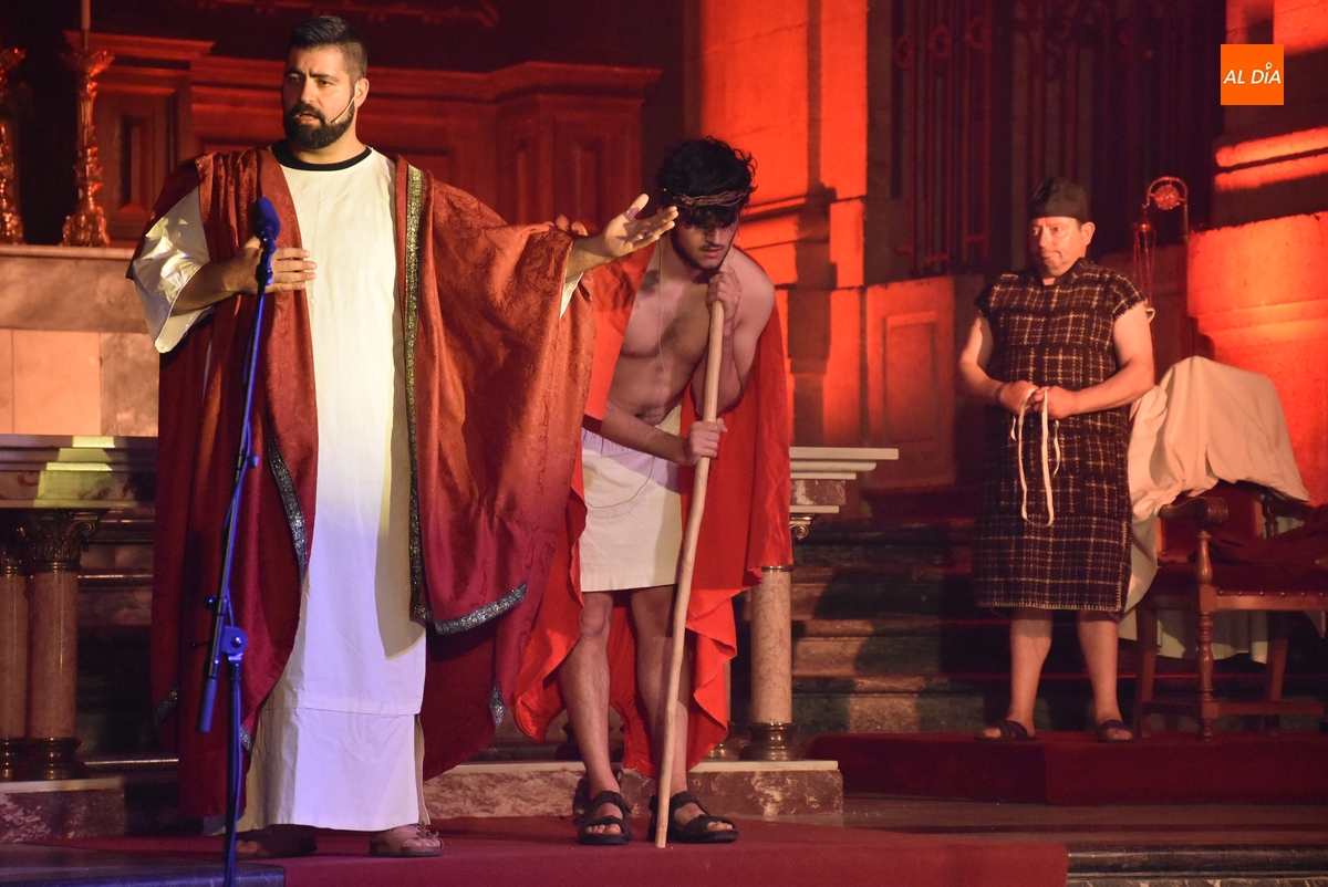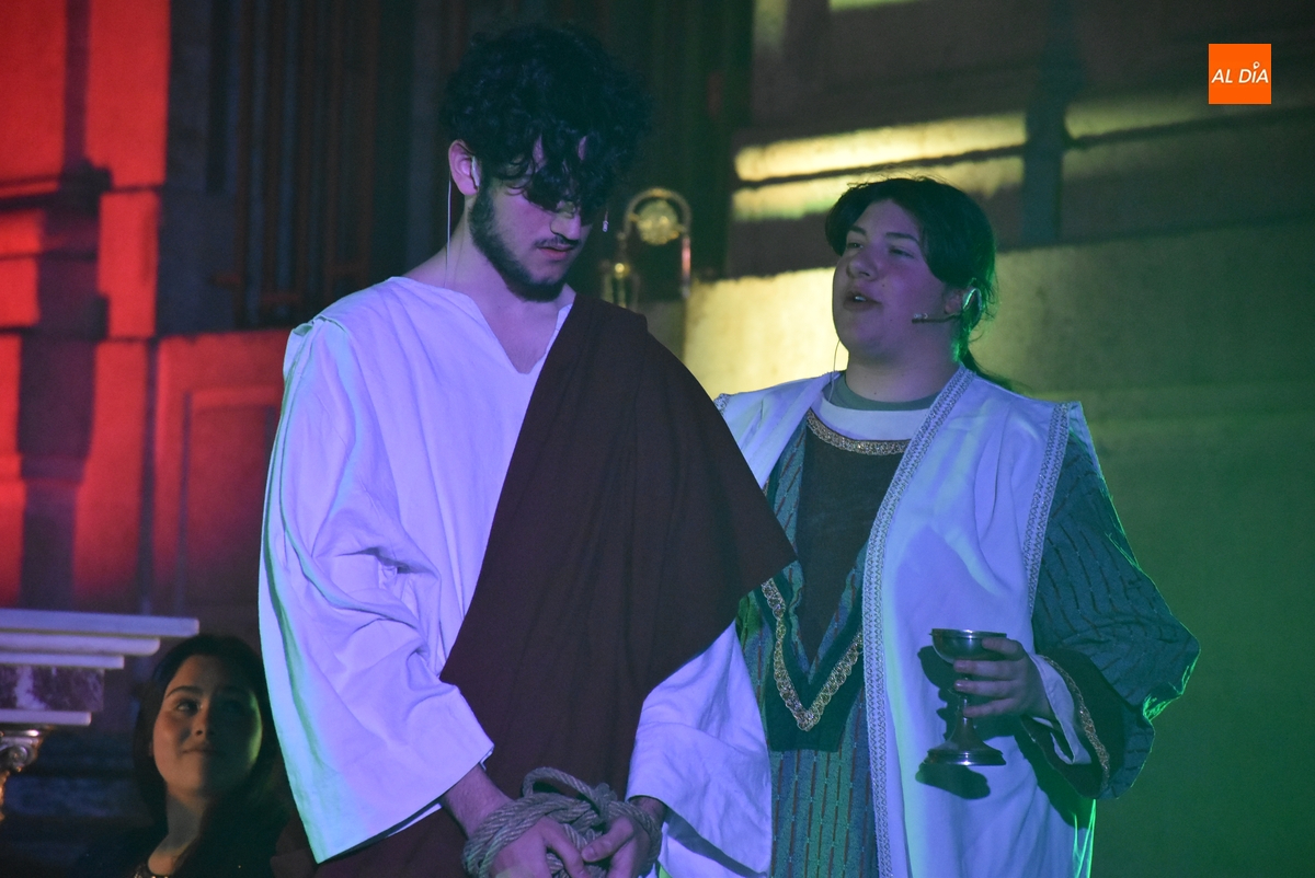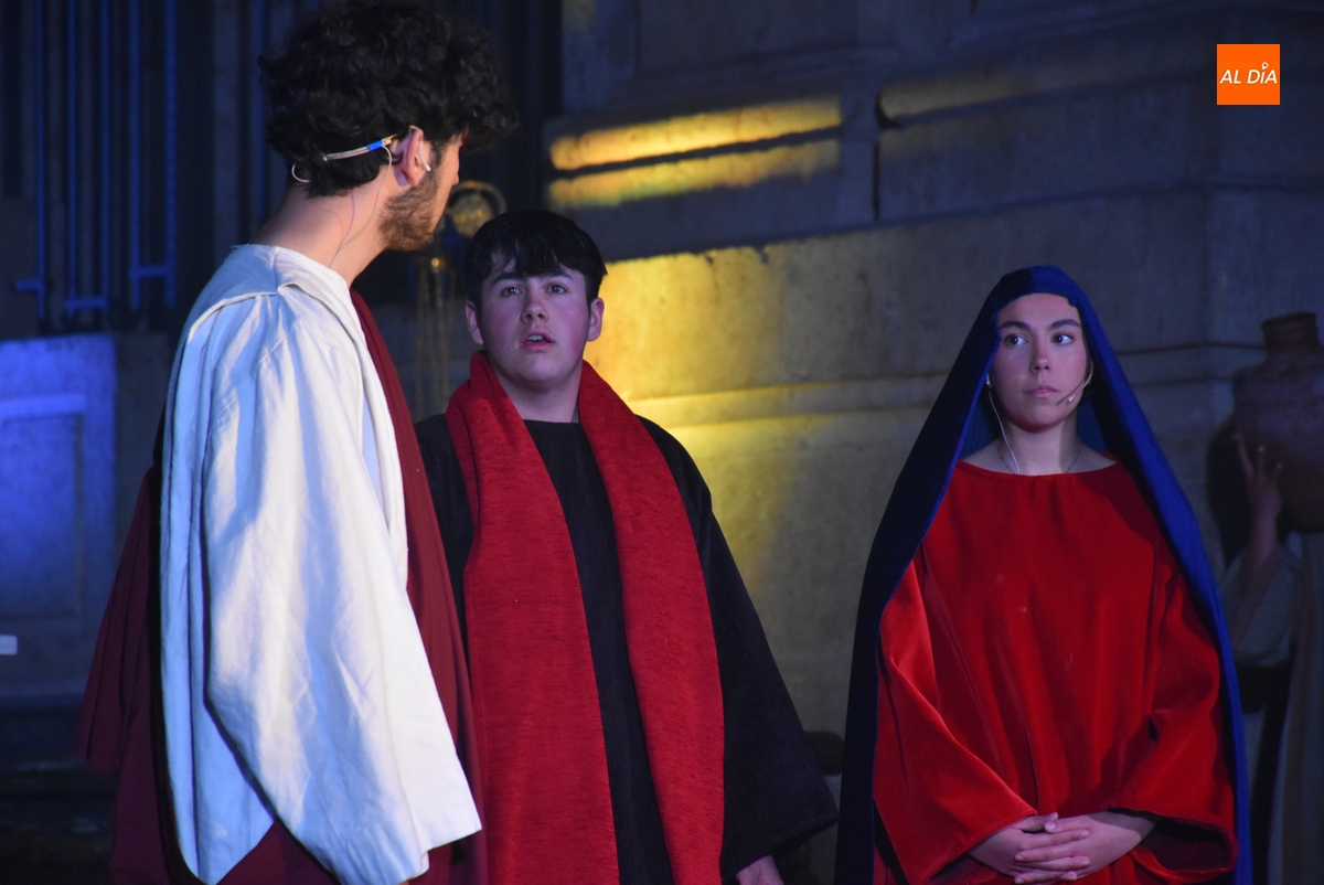 Sin preocupaciones por la lluvia, y sin la incomodidad del frío (la noche del Lunes Santo se puso fresca en Ciudad Rodrigo), el público que llenó la Iglesia de Cerralbo disfrutó de una representación de La Pasión que “siempre es la misma, pero siempre es diferente”, como mencionó su cabeza visible, el sacerdote Juan Carlos Sánchez, que este año está teniendo como ‘mano derecha’ a un histórico del montaje, Pablo Fernández Sobreviela.