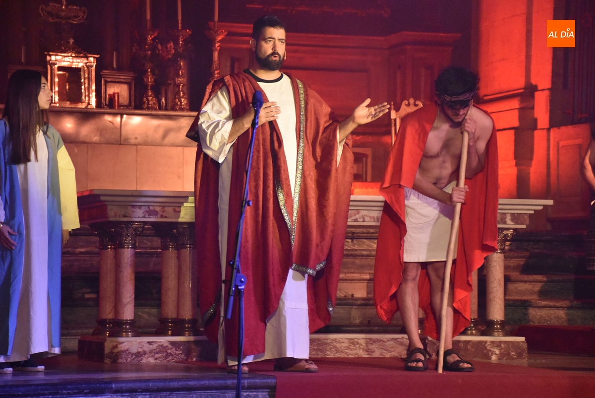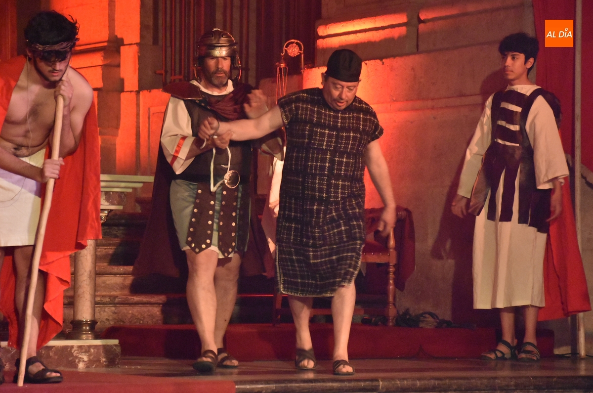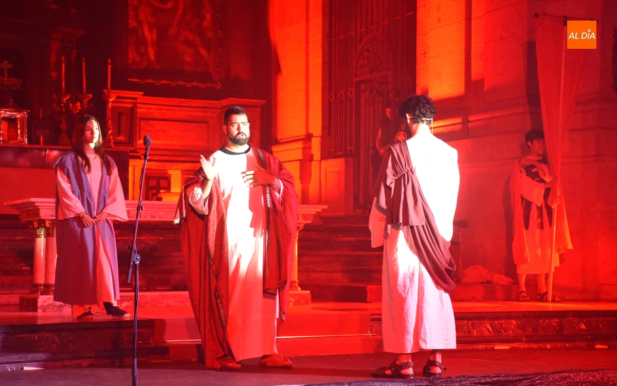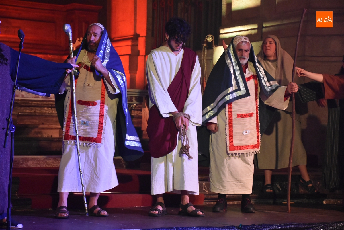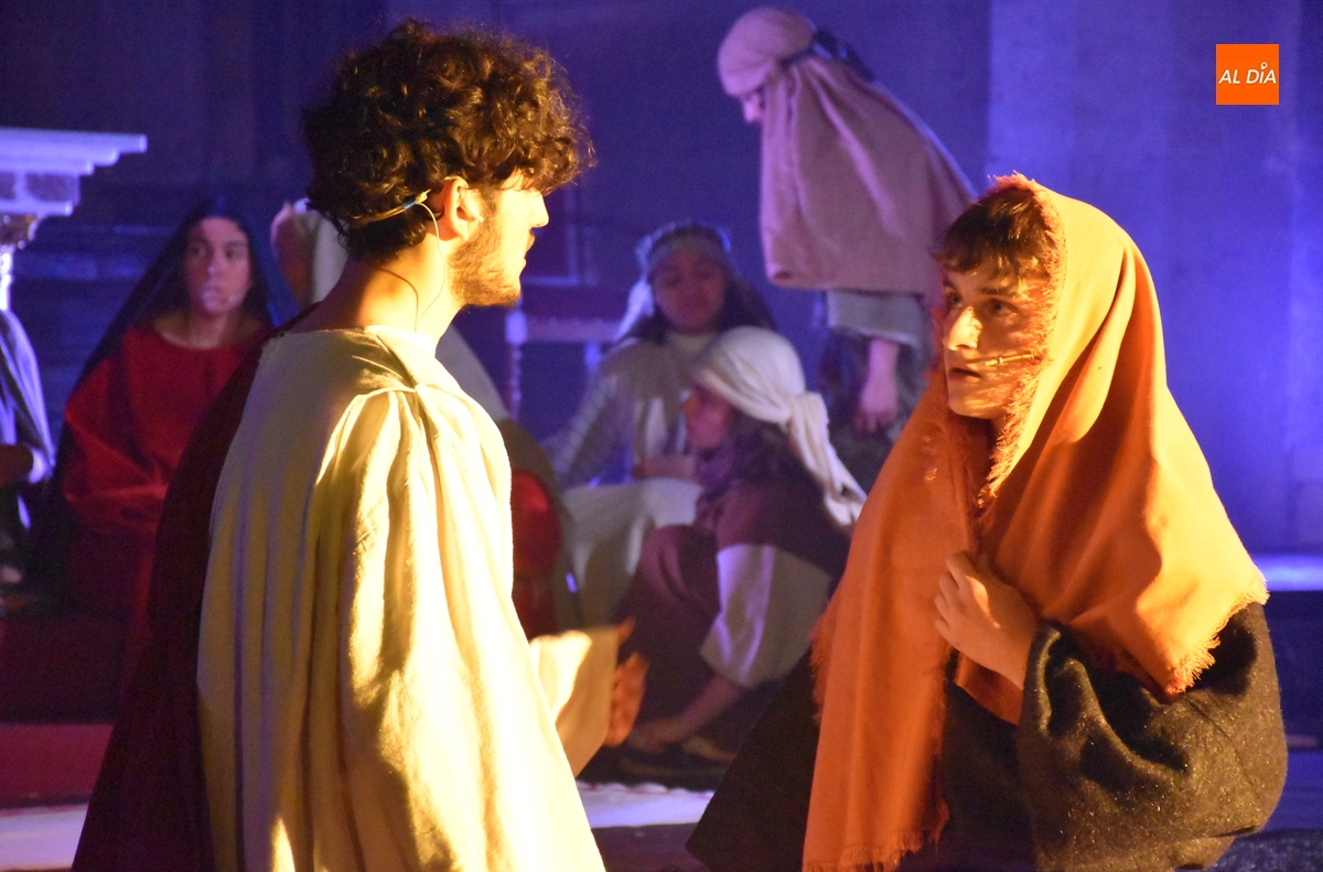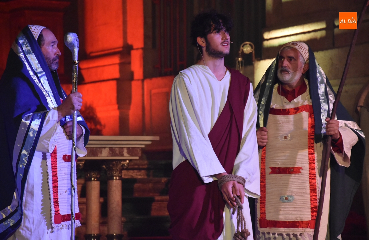 Sin preocupaciones por la lluvia, y sin la incomodidad del frío (la noche del Lunes Santo se puso fresca en Ciudad Rodrigo), el público que llenó la Iglesia de Cerralbo disfrutó de una representación de La Pasión que “siempre es la misma, pero siempre es diferente”, como mencionó su cabeza visible, el sacerdote Juan Carlos Sánchez, que este año está teniendo como ‘mano derecha’ a un histórico del montaje, Pablo Fernández Sobreviela.