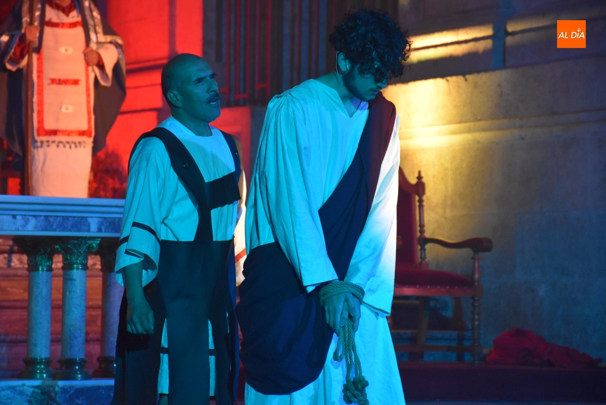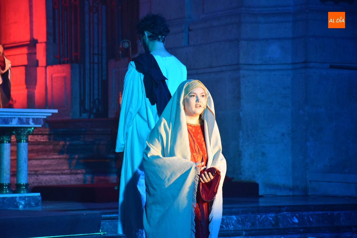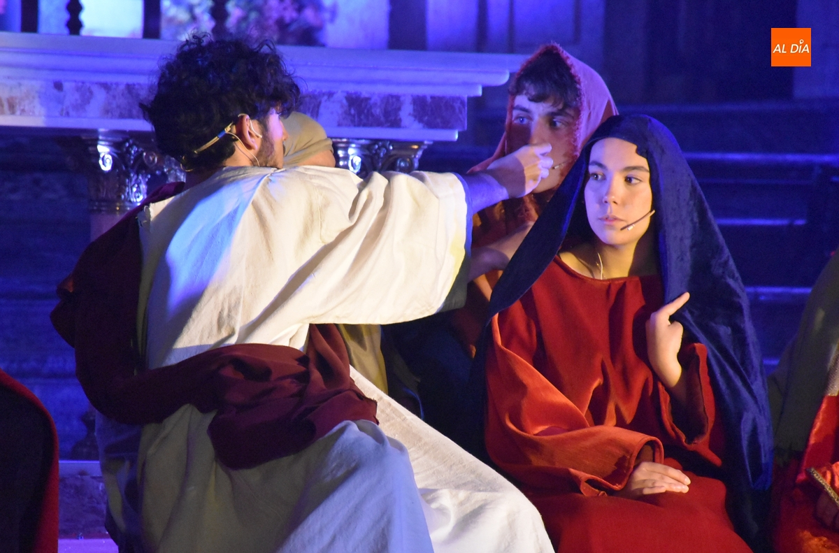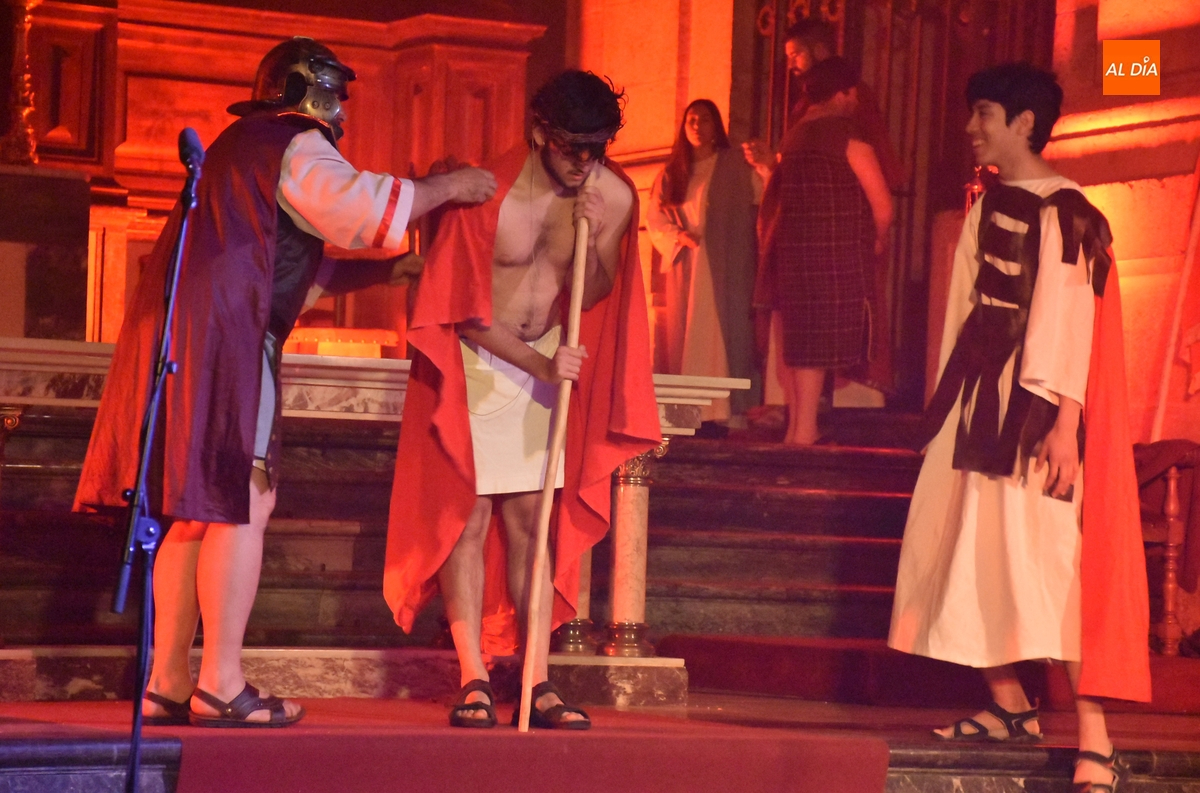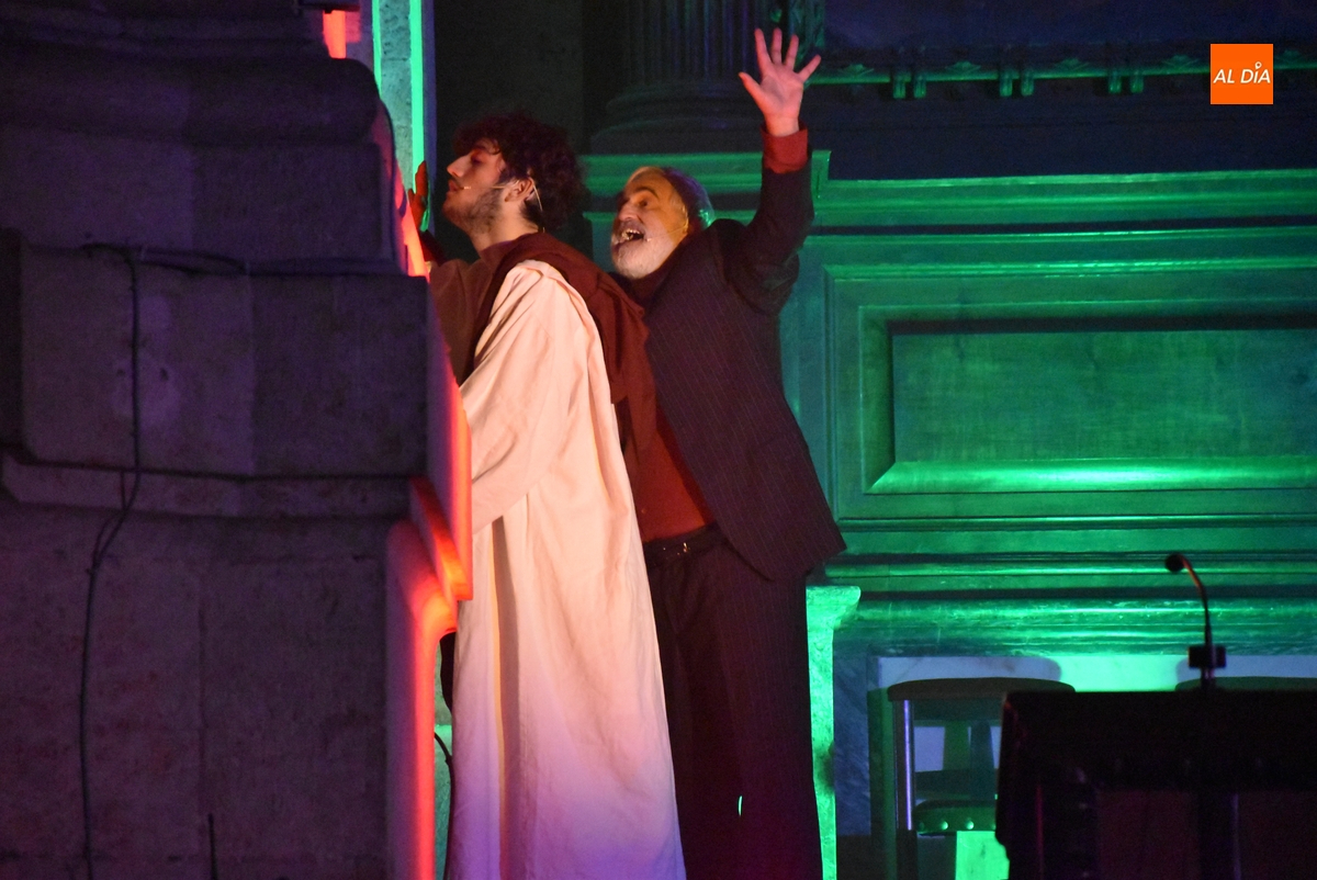 Sin preocupaciones por la lluvia, y sin la incomodidad del frío (la noche del Lunes Santo se puso fresca en Ciudad Rodrigo), el público que llenó la Iglesia de Cerralbo disfrutó de una representación de La Pasión que “siempre es la misma, pero siempre es diferente”, como mencionó su cabeza visible, el sacerdote Juan Carlos Sánchez, que este año está teniendo como ‘mano derecha’ a un histórico del montaje, Pablo Fernández Sobreviela.
