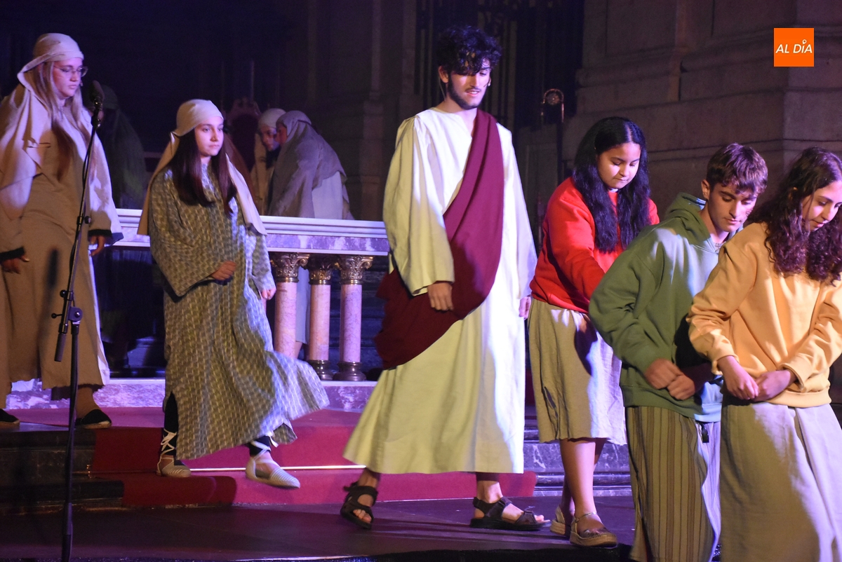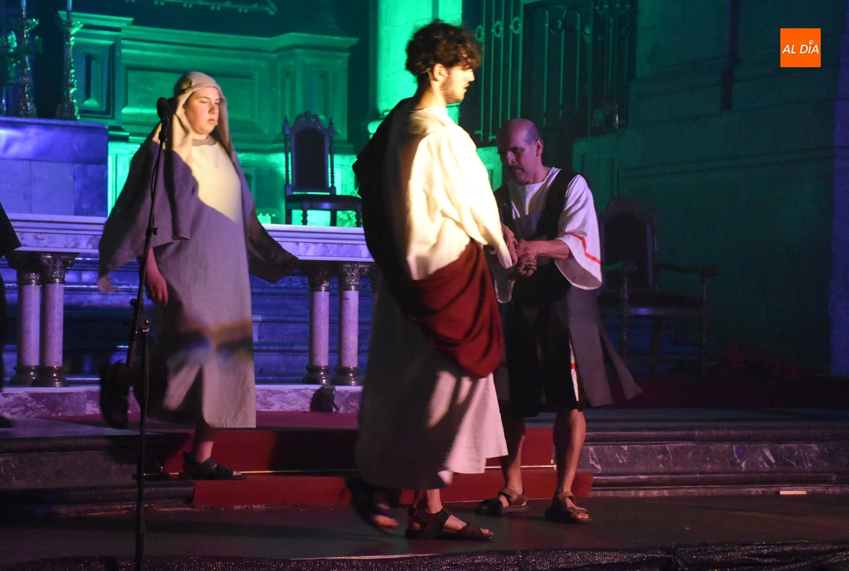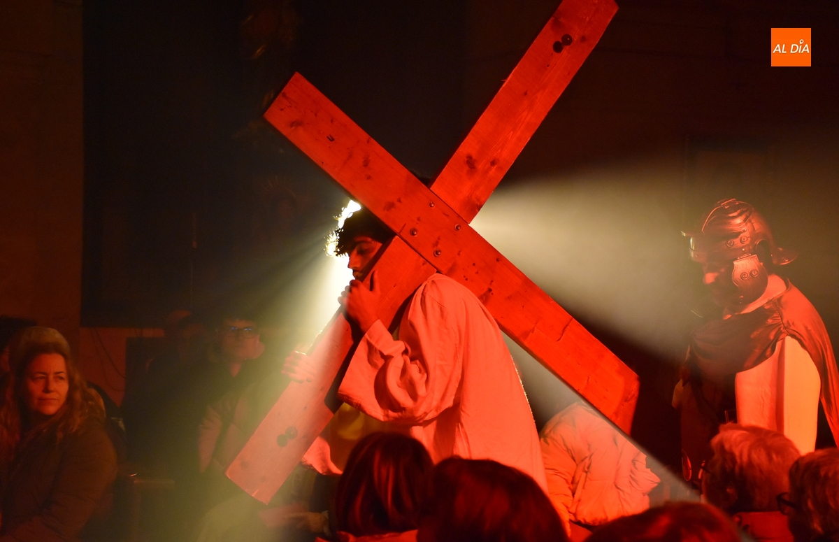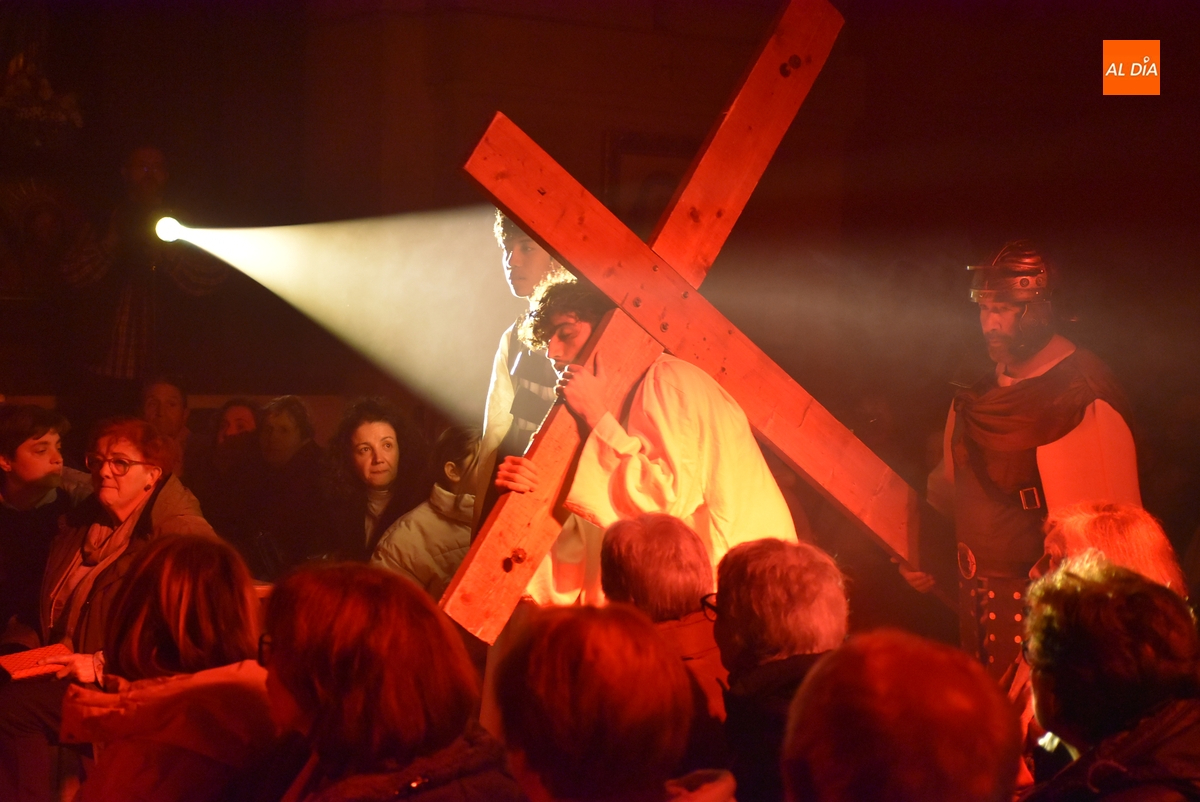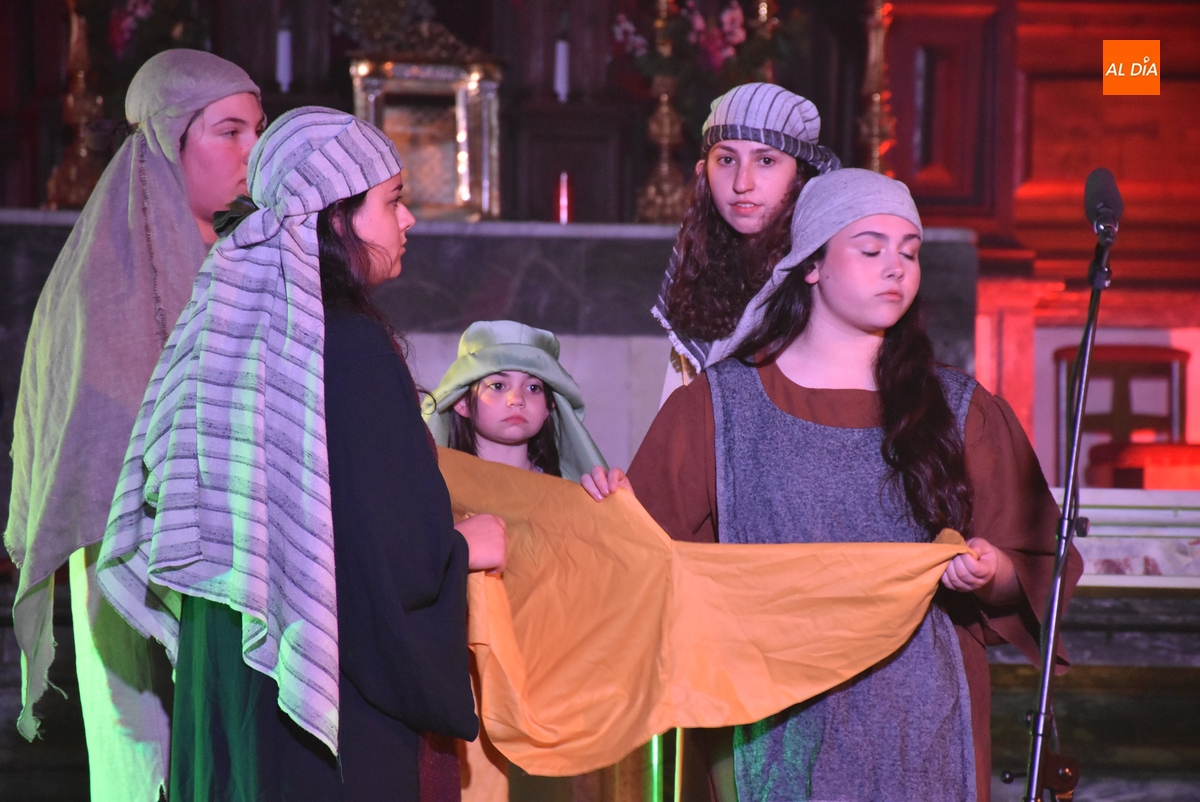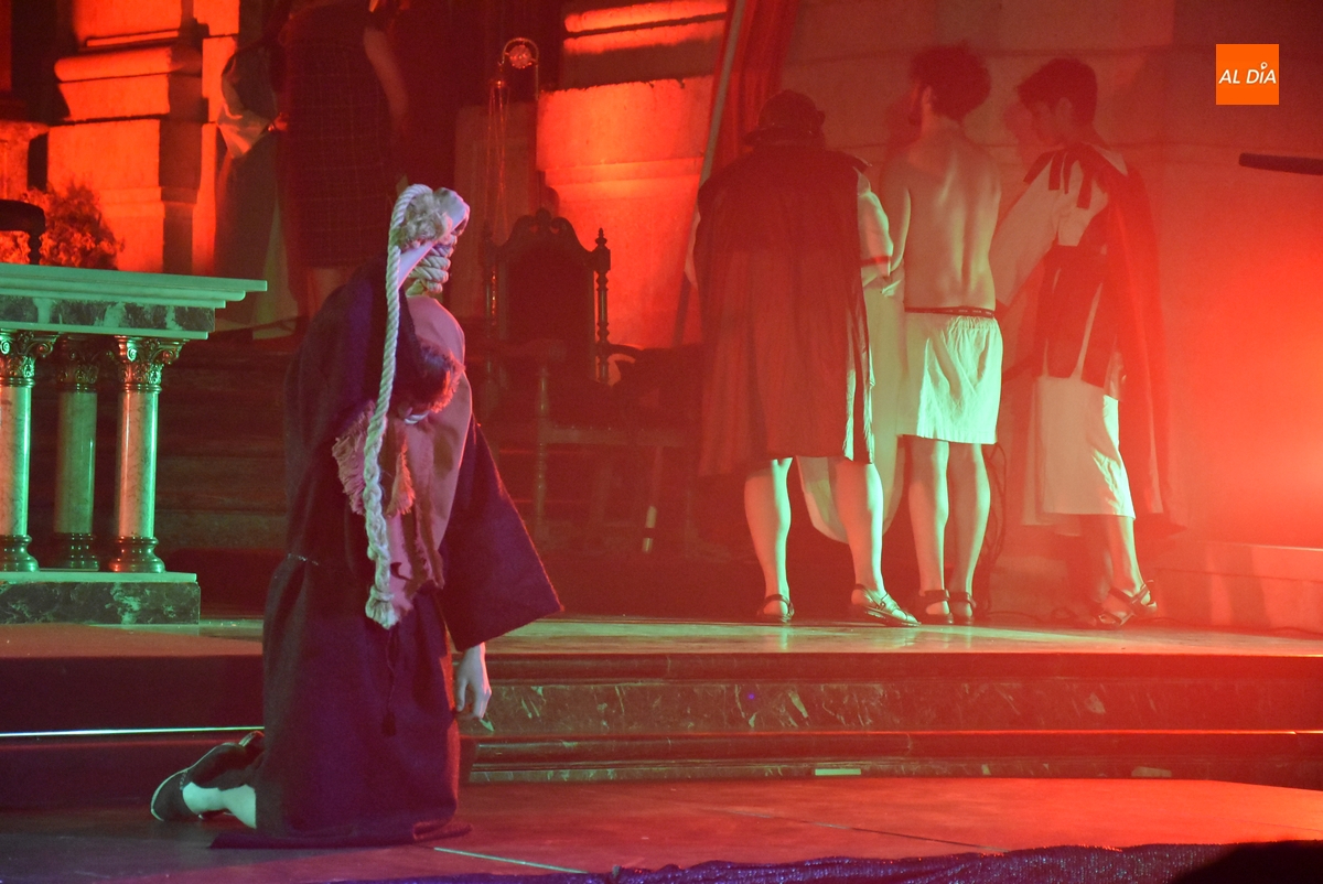Sin preocupaciones por la lluvia, y sin la incomodidad del frío (la noche del Lunes Santo se puso fresca en Ciudad Rodrigo), el público que llenó la Iglesia de Cerralbo disfrutó de una representación de La Pasión que “siempre es la misma, pero siempre es diferente”, como mencionó su cabeza visible, el sacerdote Juan Carlos Sánchez, que este año está teniendo como ‘mano derecha’ a un histórico del montaje, Pablo Fernández Sobreviela.