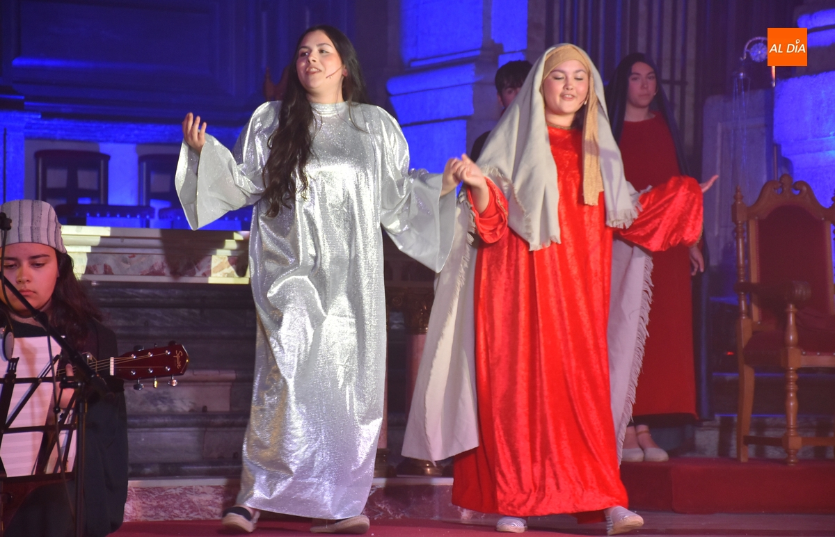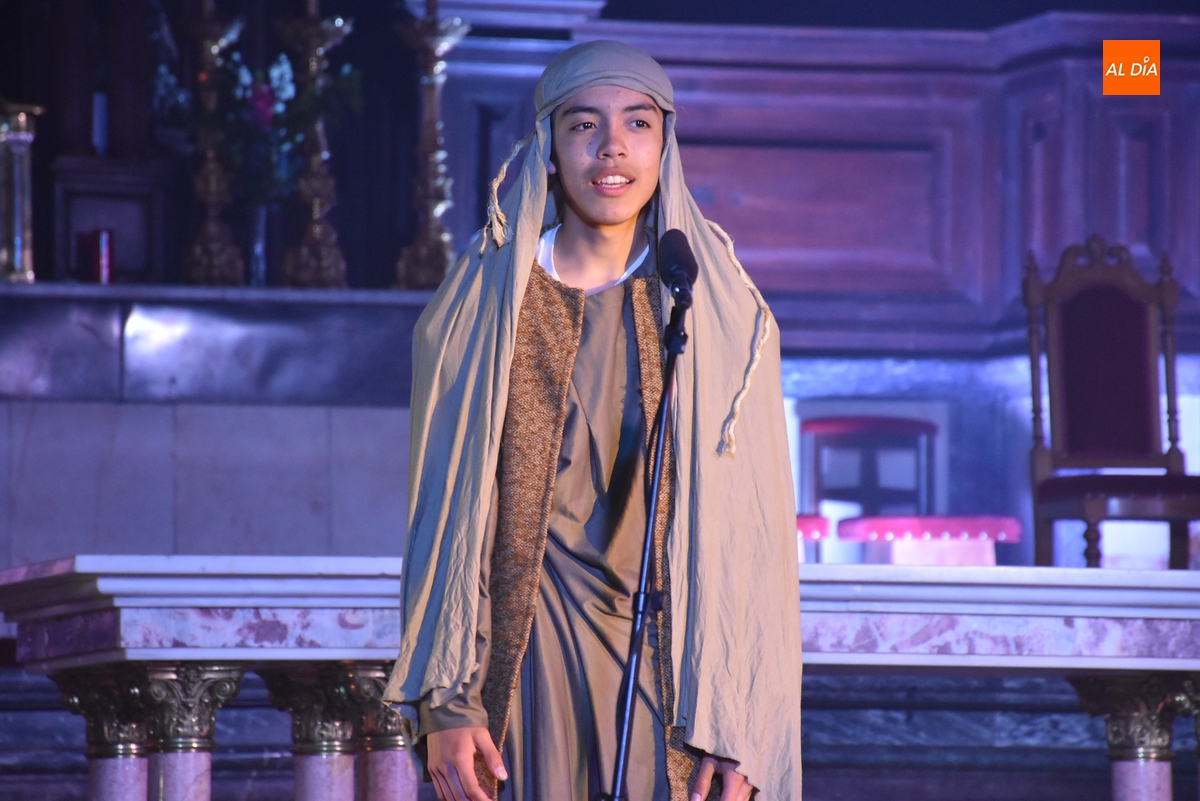 El cambio de escenario que se decidió durante la mañana del lunes producto de las adversas previsiones meteorológicas (que se cumplieron, lloviendo en la calle al menos durante una parte de la representación) obligó al “doble de esfuerzo” como mencionó Juan Carlos Sánchez por parte del equipo técnico de Electel para preparar la Iglesia, ya que además tuvieron que tener en cuenta el concierto previo de la Coral Dámaso Ledesma.