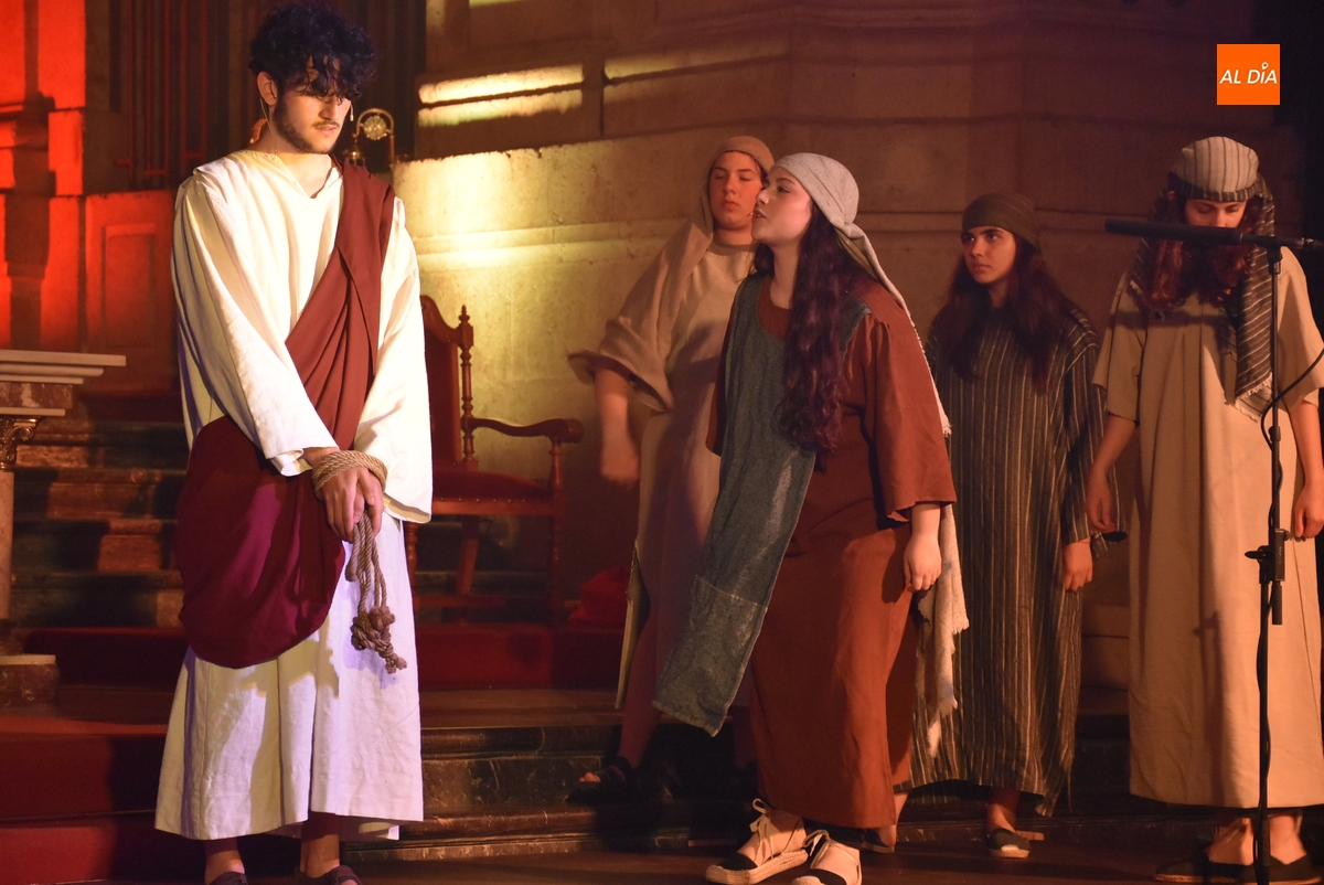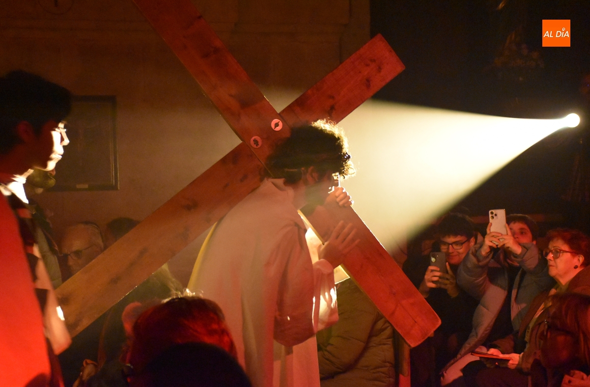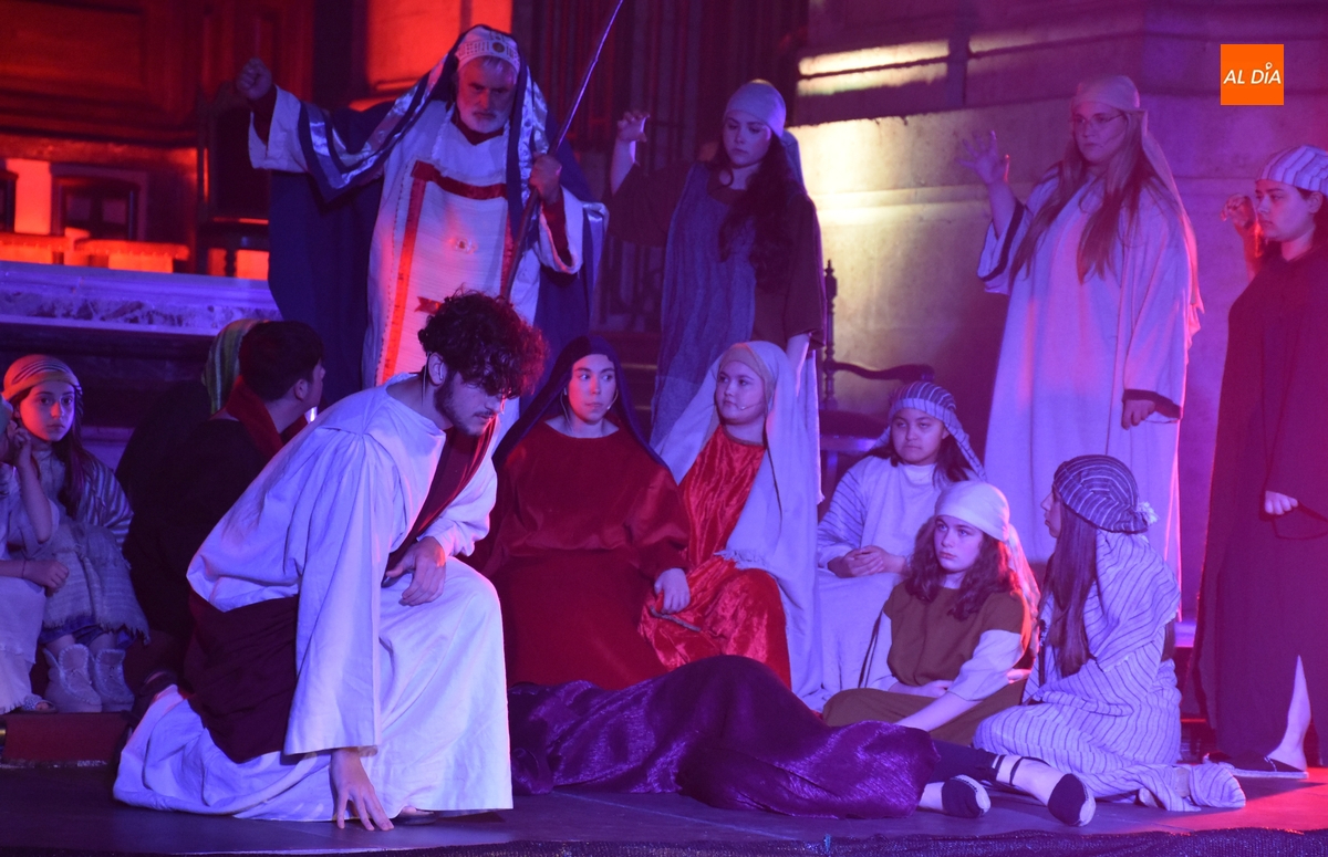 El Grupo El Manantial llegó en la noche del Lunes Santo al ecuador de sus representaciones de este año de La Pasión con la clásica cita en Ciudad Rodrigo, donde tuvieron que escapar de la lluvia, cambiando el emplazamiento previsto (el Registro) por uno a cubierto, que volvió a ser la Iglesia de Cerralbo como en el anterior traslado por el mal tiempo, en 2022 (aquel año se tenía que haber escenificado en la Plazuela de Herrasti).