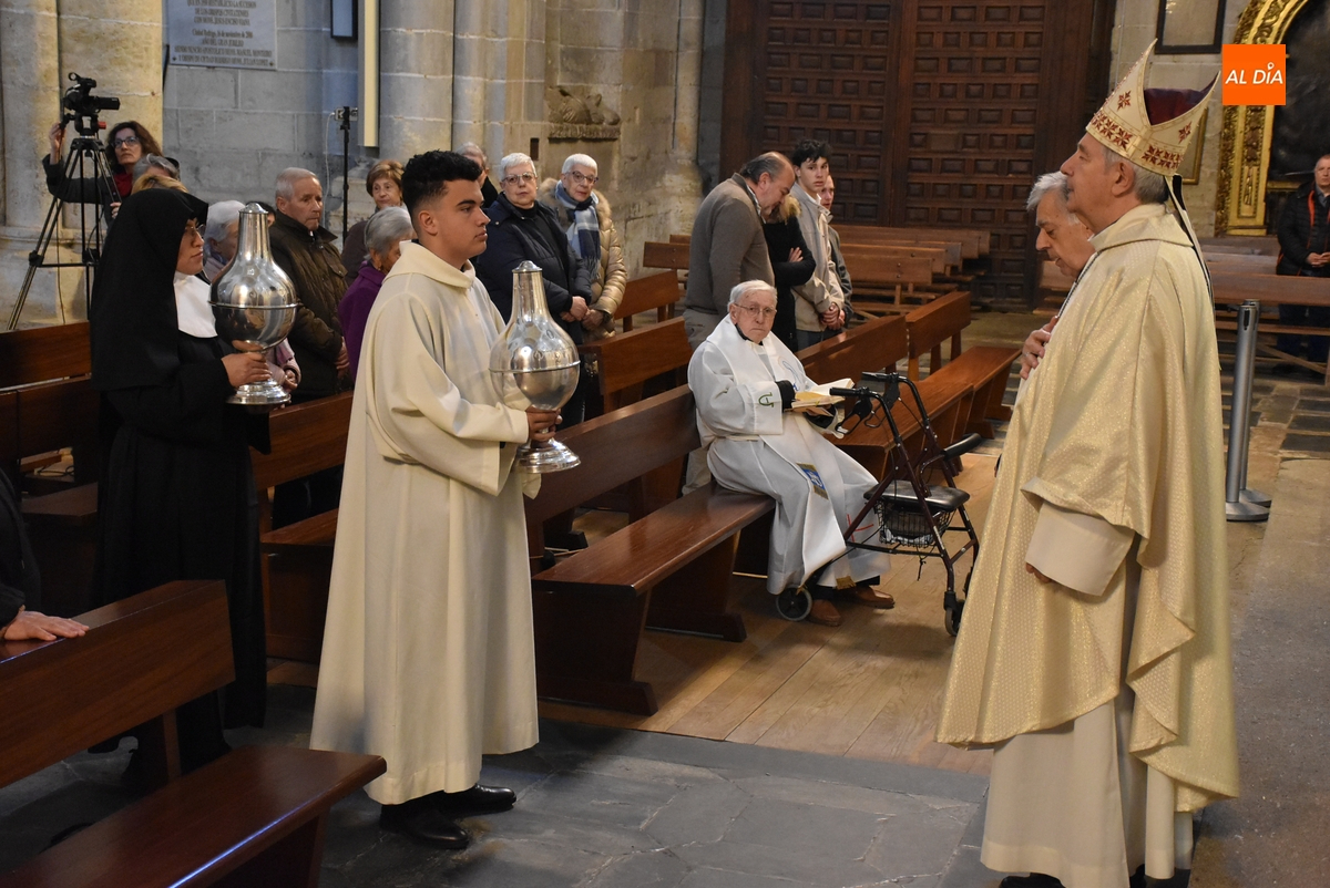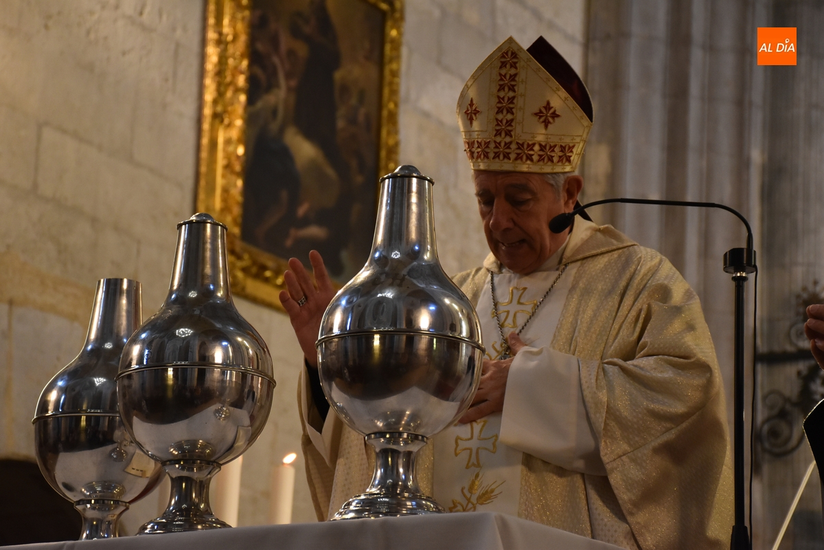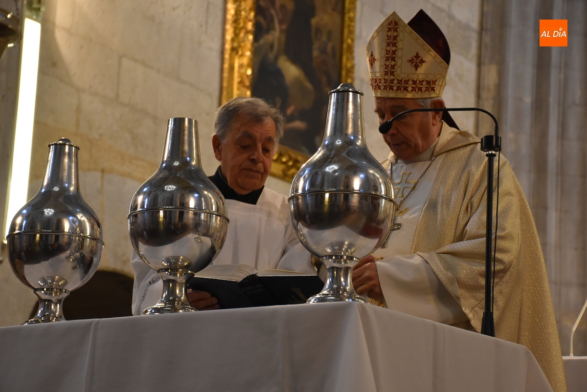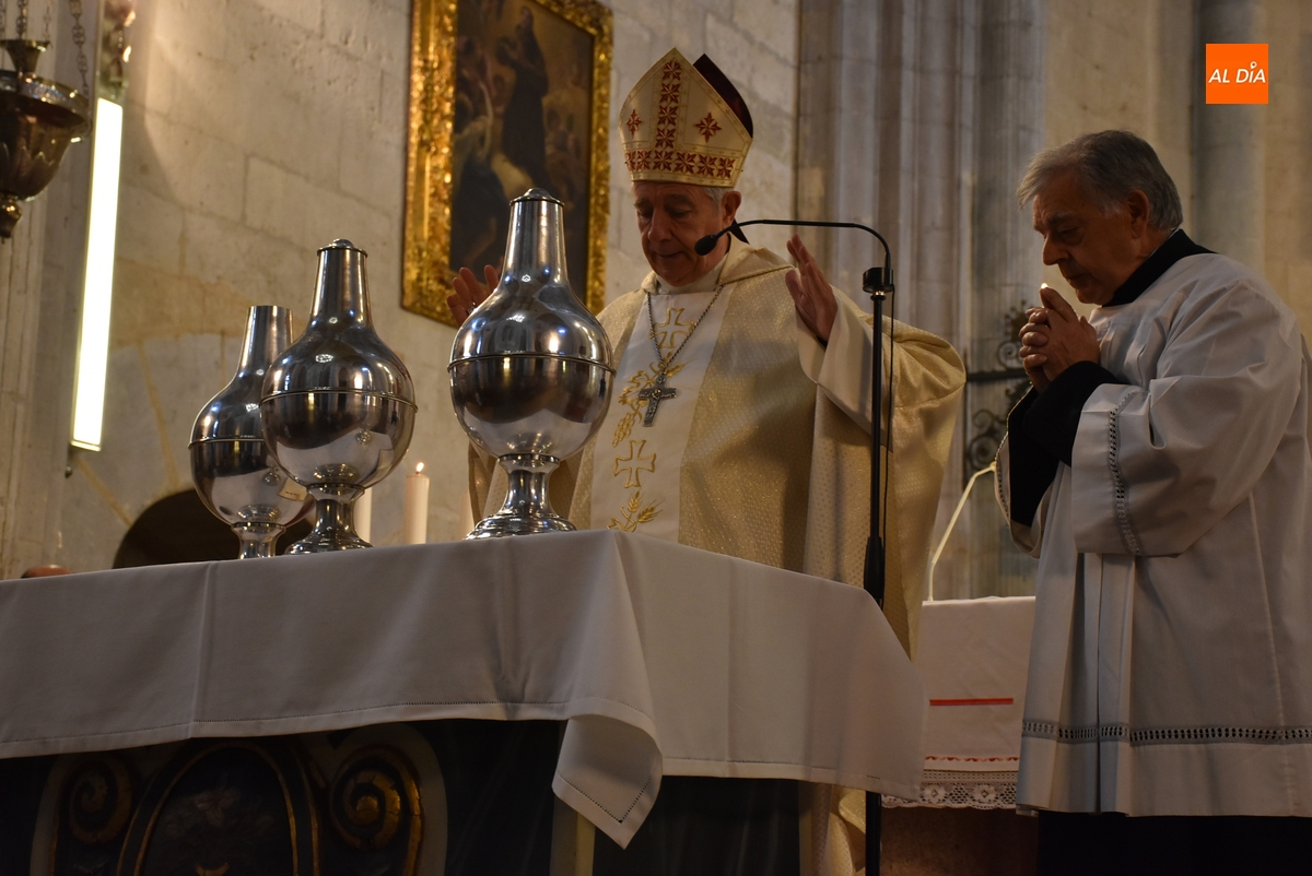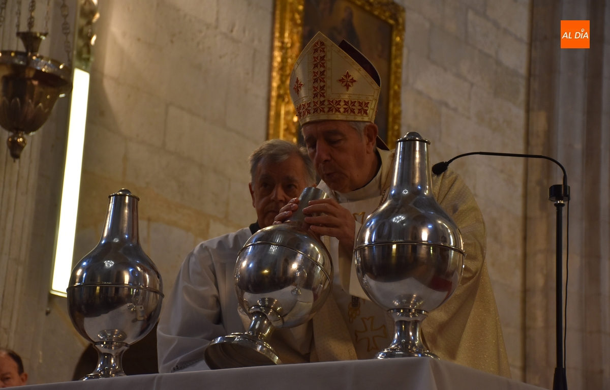 Los óleos fueron bendecidos uno por uno por el Obispo -con la ayuda de Vidal Rodríguez Encinas- justo en las escaleras del altar (donde se había situado una mesa auxiliar).