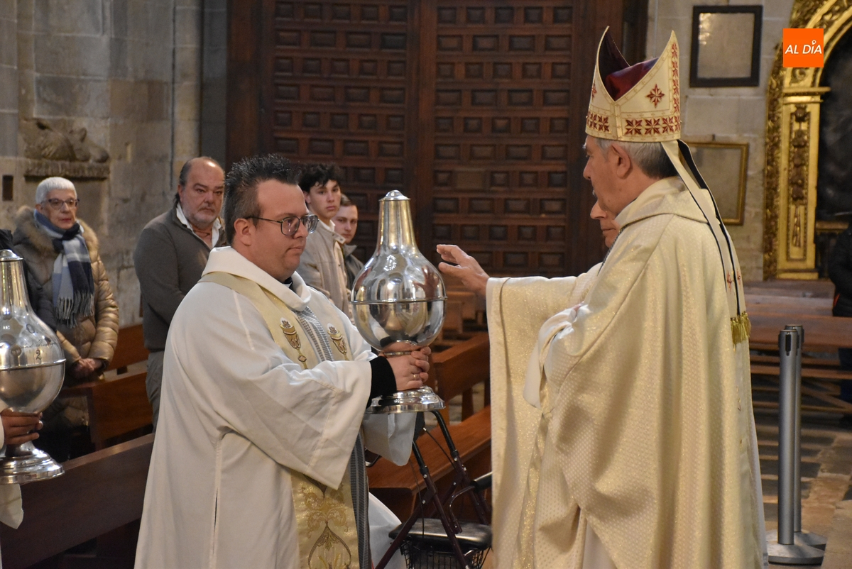 En primer lugar, todos los sacerdotes presentes procedieron a renovar las promesas que realizaron en su Ordenación Sacerdotal, pidiendo también por ellos -así como por el Obispo- todos los fieles presentes. A continuación, se procedió a bendecir los santos óleos que serán empleados a lo largo de este año en las celebraciones que se desarrollarán en todo el territorio de la Diócesis de Ciudad Rodrigo.