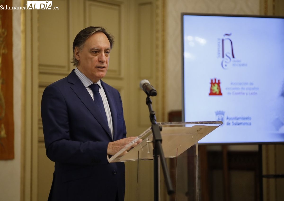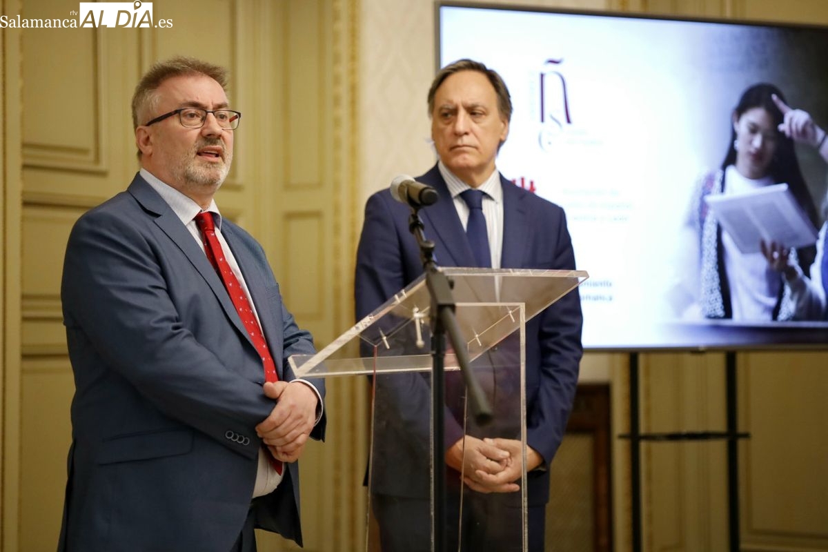 El alcalde de Salamanca, Carlos García Carbayo, ha presentado hoy la renovación del convenio con las escuelas de español adheridas a la marca 'Salamanca, Ciudad del Español', acompañado por Miguel Ángel Benito, presidente de la Asociación de Escuelas de Español de Castilla y León. Este acuerdo refuerza el compromiso municipal con un sector estratégico para la economía salmantina.