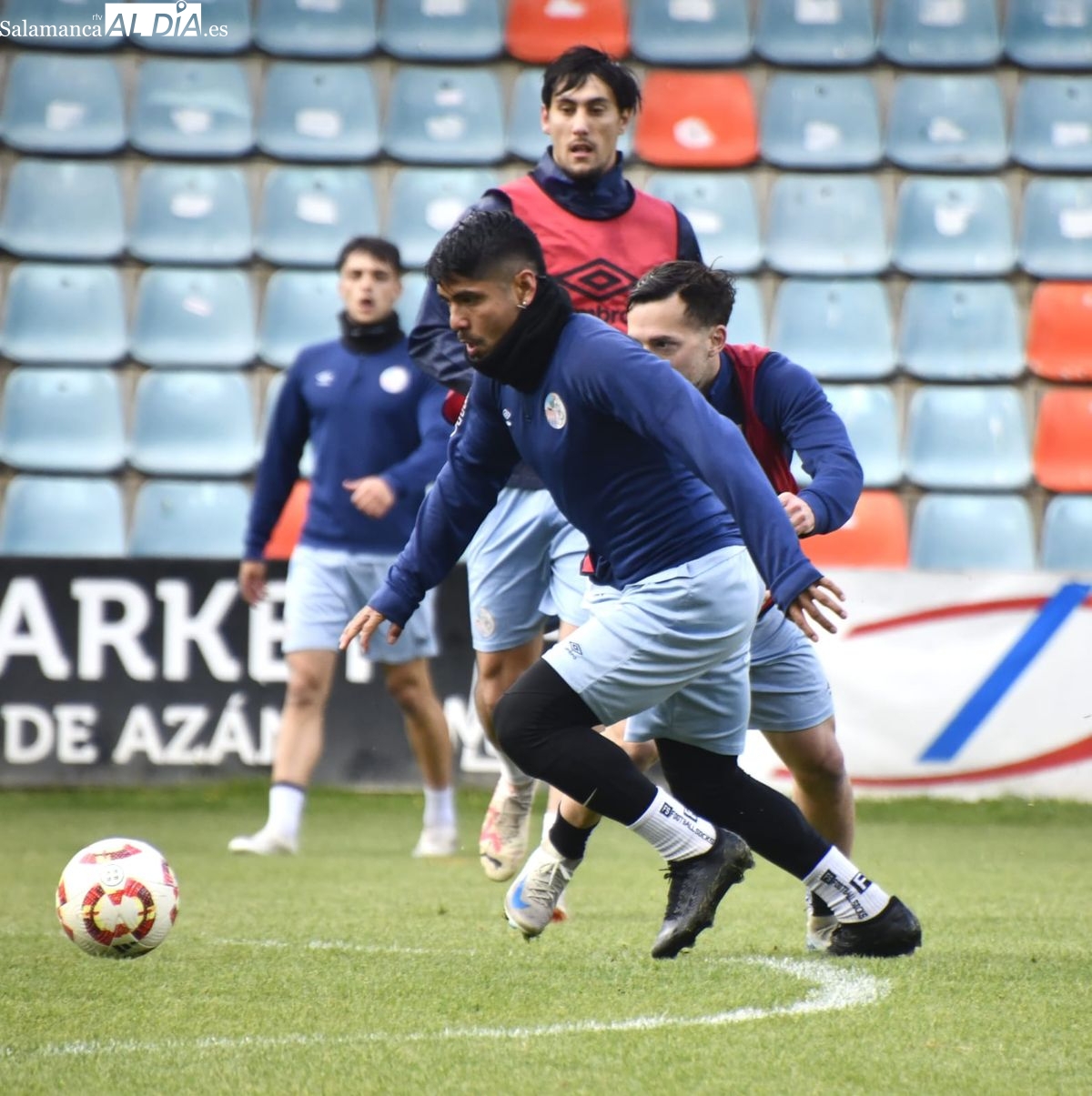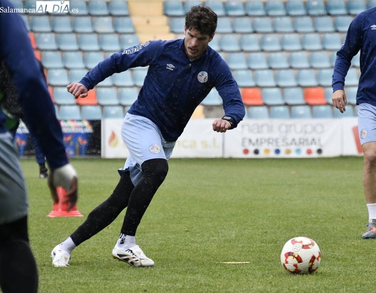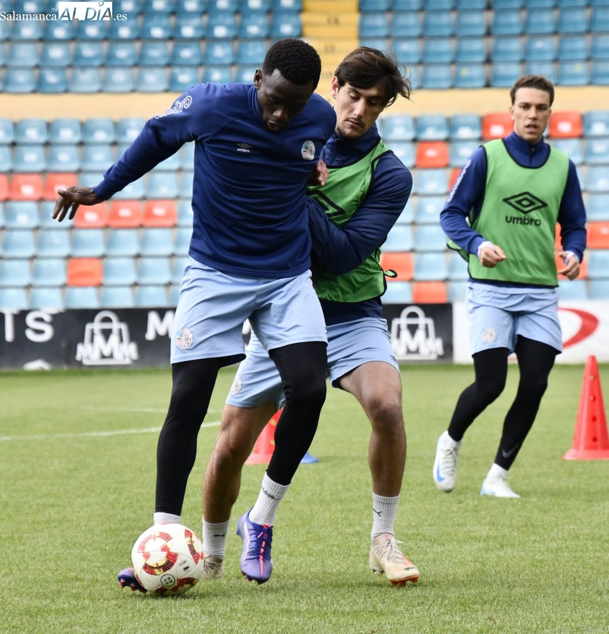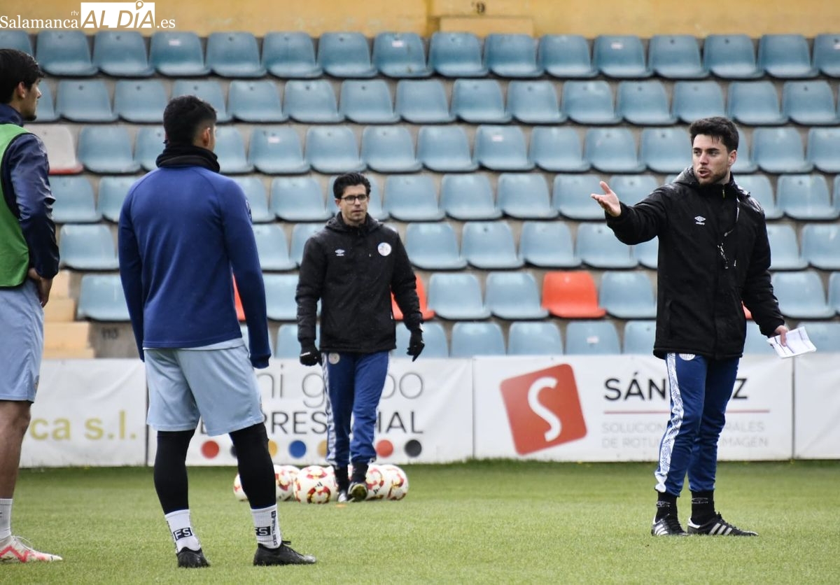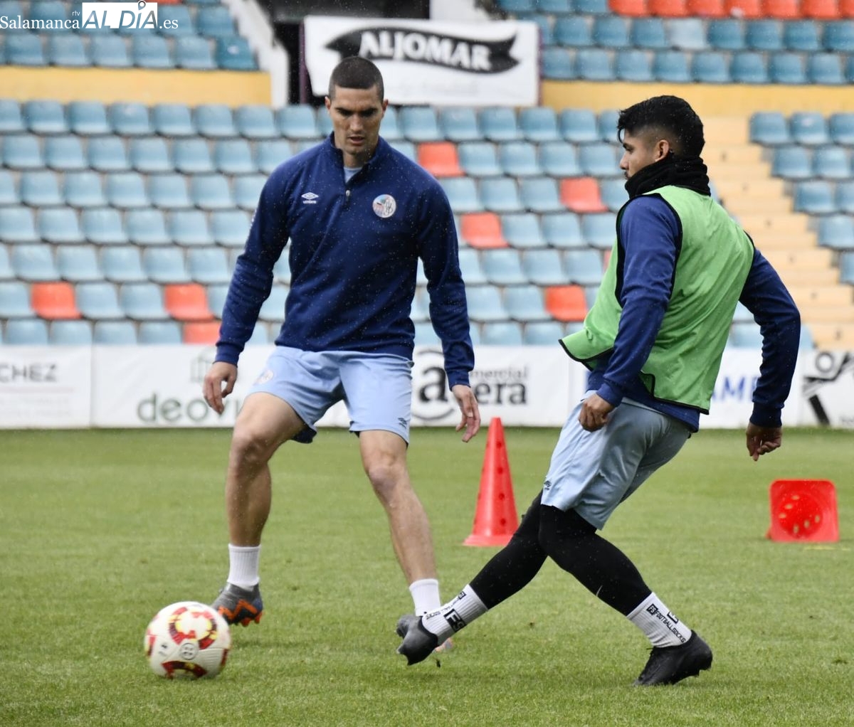 La primera sesión de la semana ha estado marcada por un intenso trabajo con balón. Los jugadores blanquinegros han realizado diversos ejercicios técnicos para posteriormente disputar un partidillo en medio campo que ha servido para ensayar movimientos tácticos. Jorge García, técnico del conjunto charro, se ha mostrado especialmente activo durante toda la sesión, transmitiendo constantemente esa intensidad a sus pupilos de cara al trascendental duelo del fin de semana.