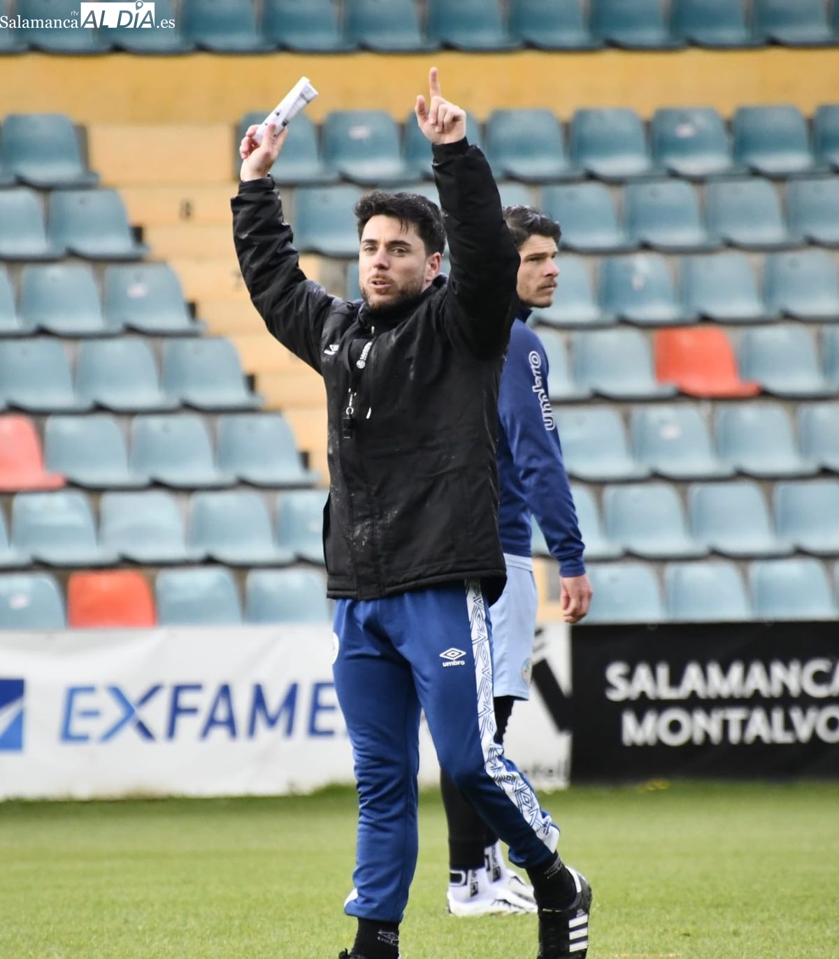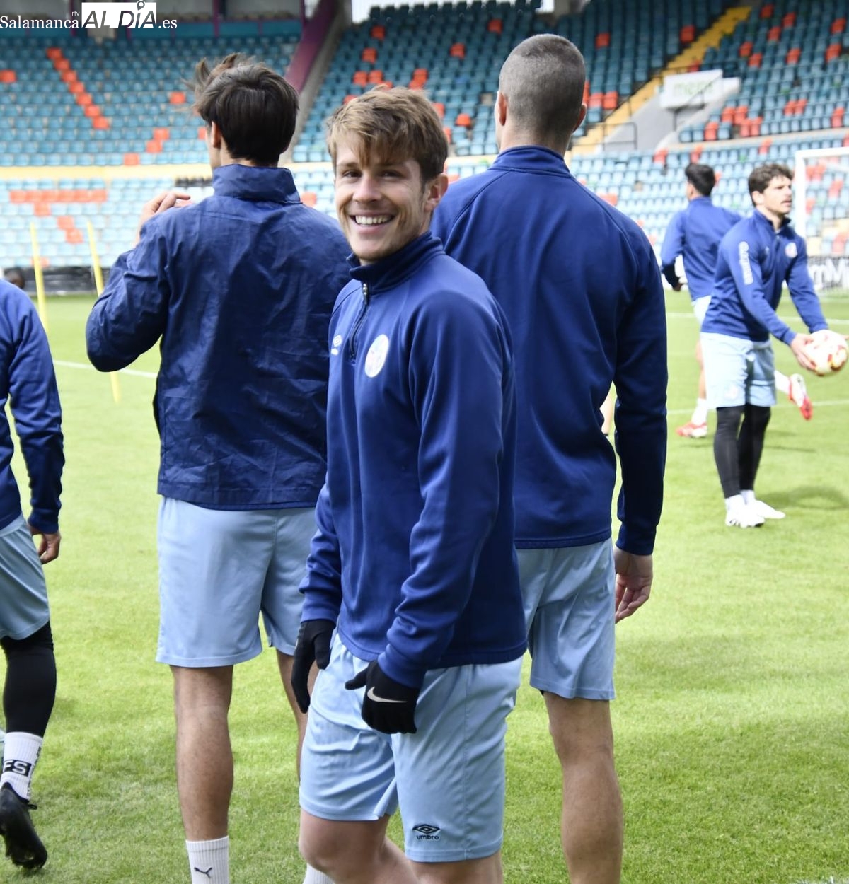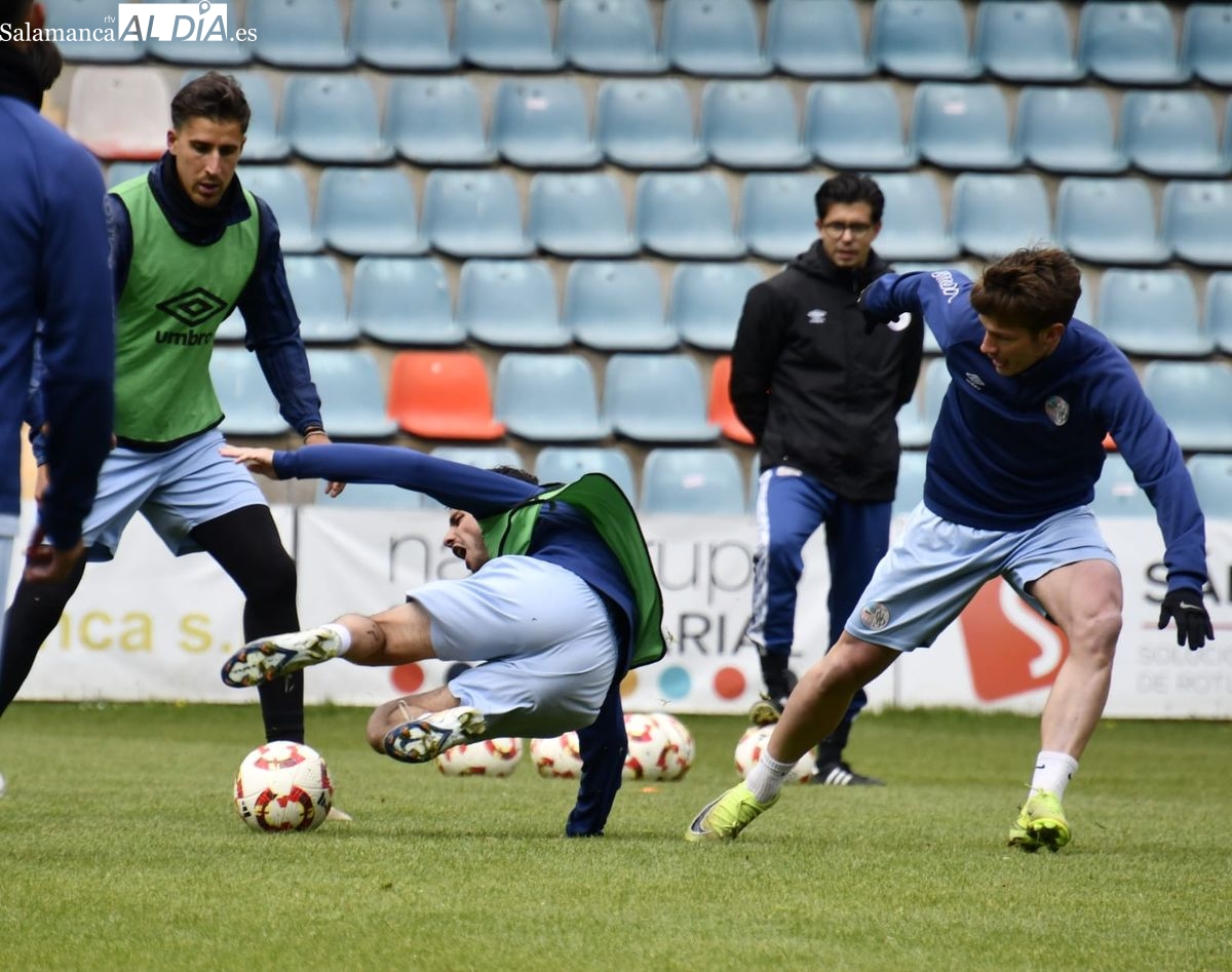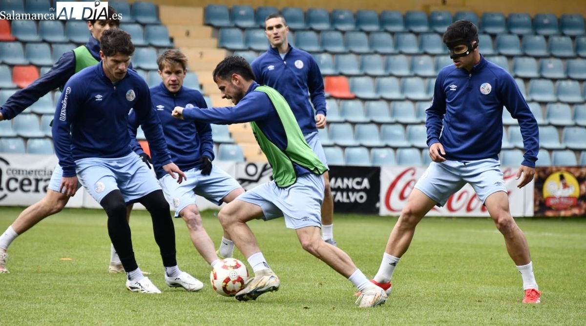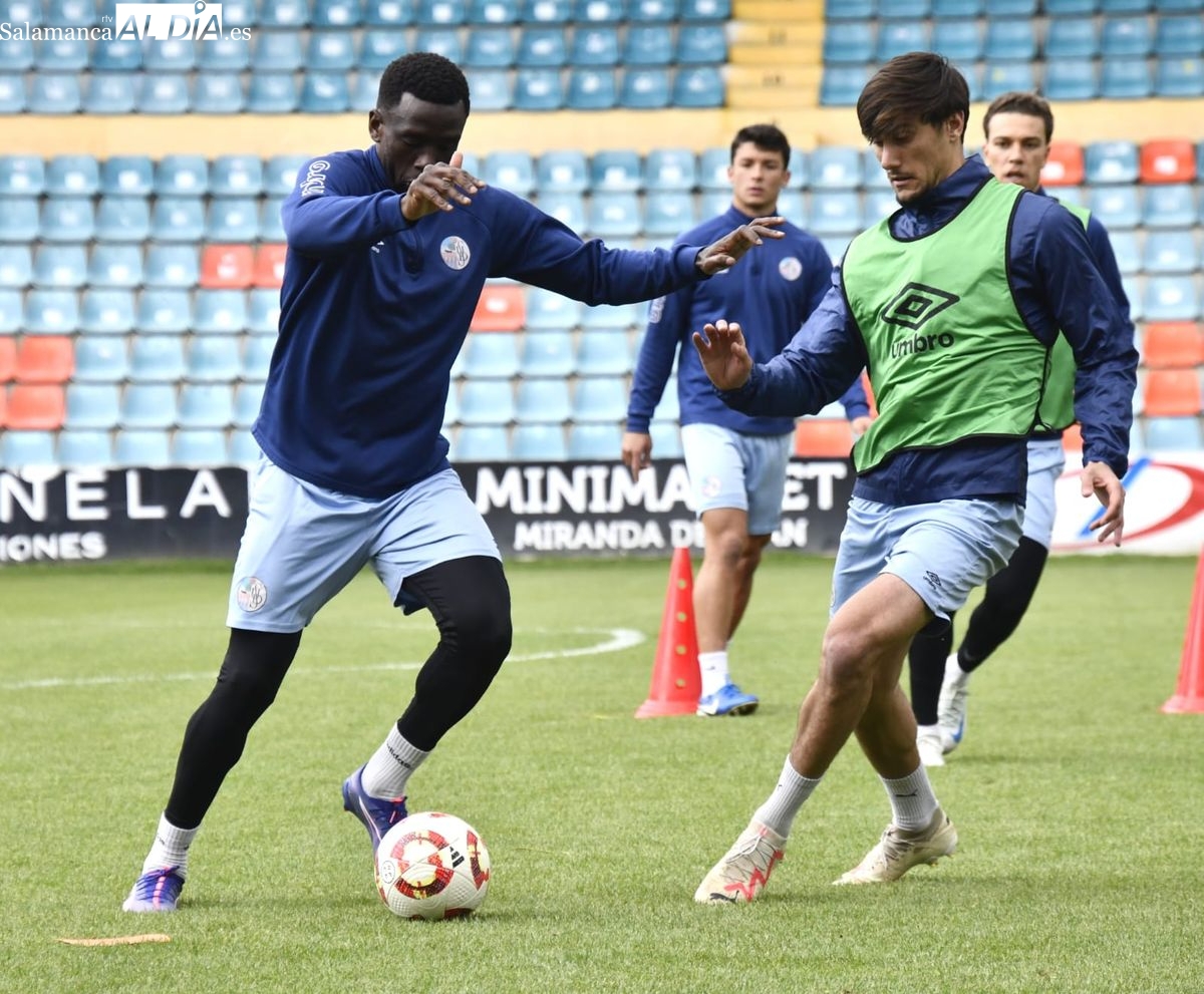 La primera sesión de la semana ha estado marcada por un intenso trabajo con balón. Los jugadores blanquinegros han realizado diversos ejercicios técnicos para posteriormente disputar un partidillo en medio campo que ha servido para ensayar movimientos tácticos. Jorge García, técnico del conjunto charro, se ha mostrado especialmente activo durante toda la sesión, transmitiendo constantemente esa intensidad a sus pupilos de cara al trascendental duelo del fin de semana.