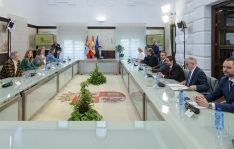 Posteriormente, el presidente se ha reunido con los representantes de los partidos políticos con representación en las Cortes de Castilla y León: Francisco Vázquez (PP); Carlos Martínez (PSOE); David Hierro (VOX); Carlos Javier Salgado (UPL); Ángel Ceña (Soria ¡YA!); y José Ramón Budiño (XÁVILA). En este encuentro también ha participado la presidenta de la Federación Regional de Municipios y Provincias, Ángeles Armisén; Aitana Hernando (alcaldesa de Miranda de Ebro), José María Bravo (alcalde de San Miguel Bernuy) y Eduardo Morán (alcalde de Camponaraya), miembros de la Comisión Ejecutiva de este organismo.
