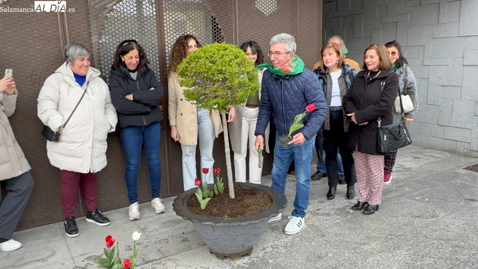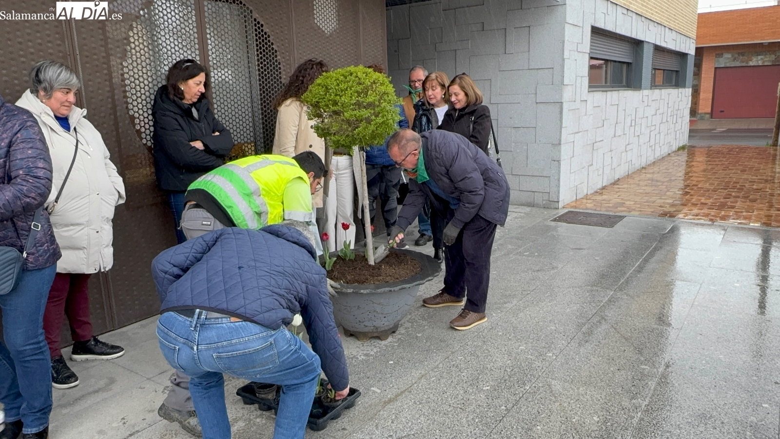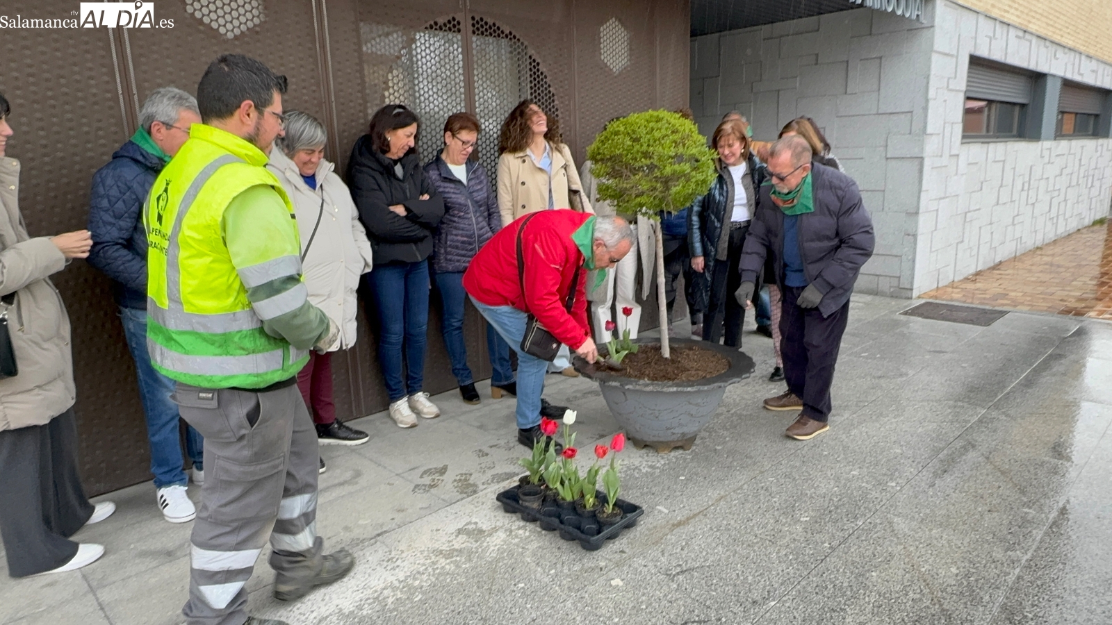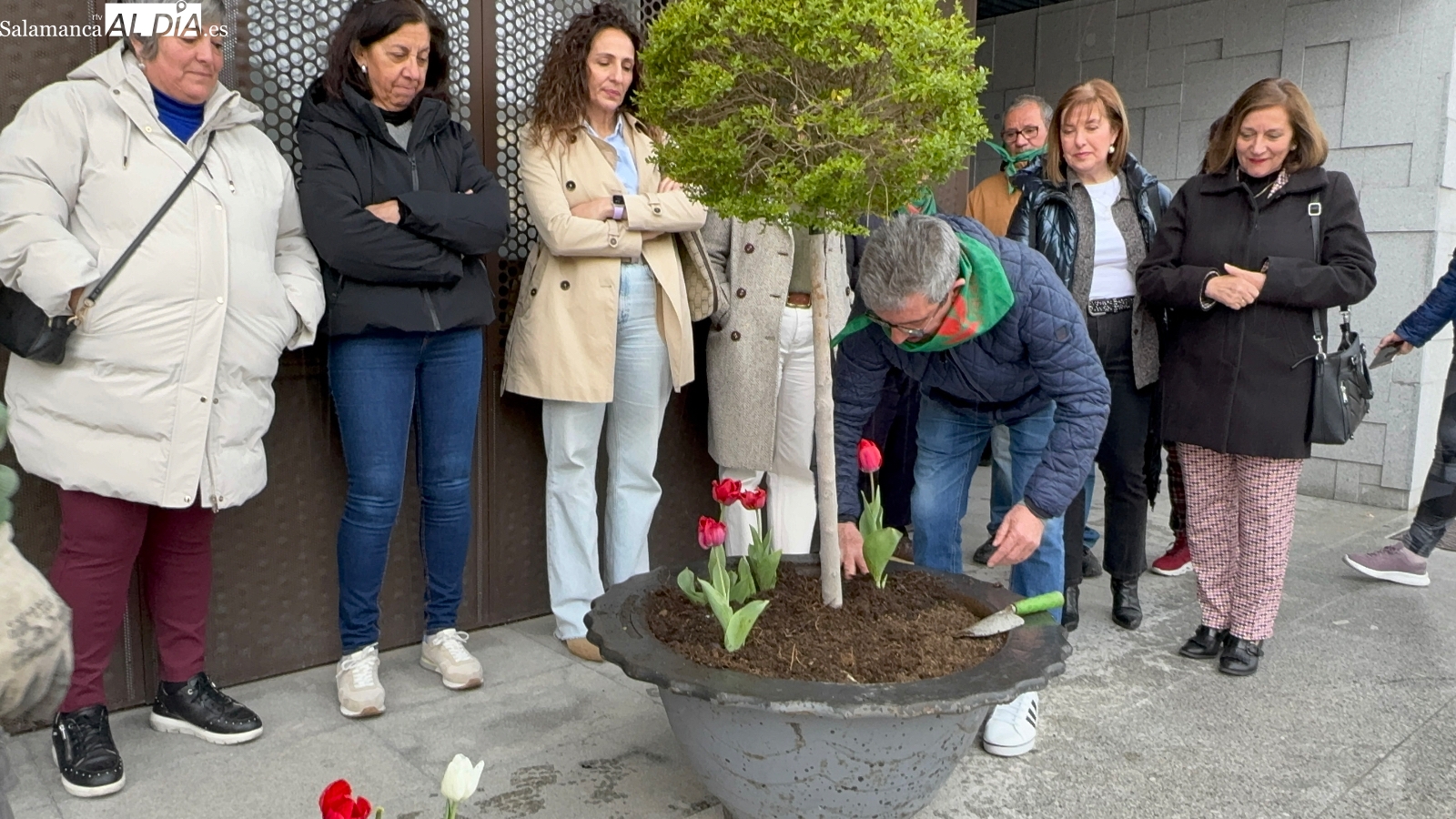 Varios pacientes, junto a familiares, representantes de la asociación Párkinson Salamanca y la alcaldesa de la ciudad, Carmen Ávila, junto a la concejala de Bienestar Social, Sonsoles Núñez, han protagonizado este sencillo acto, en el que han sido los afectados quienes han plantado tulipanes rojos en una de las jardineras del ágora, flor que se ha convertido en el símbolo de la lucha contra esta enfermedad neurodegenerativa.
