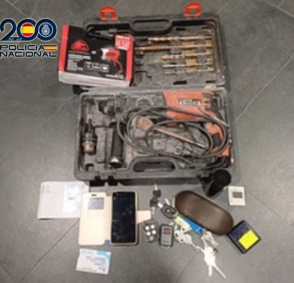 Durante la identificación, los agentes comprobaron que el hombre llevaba consigo diversos objetos de dudosa procedencia: 80 euros en monedas, un taladro, un teléfono móvil y varias llaves y mandos a distancia de los que no pudo acreditar su propiedad. Ante la sospecha de que pudieran proceder de un hecho delictivo, los efectos fueron intervenidos preventivamente.