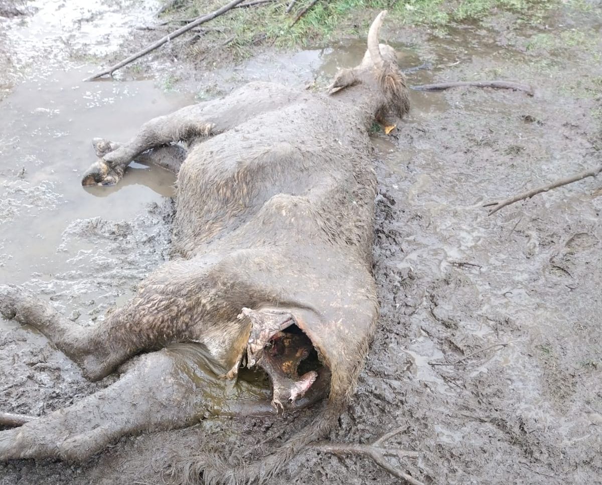 Los hechos ocurrieron el martes, 15 de abril, cuando el ganadero, al llegar a su finca, se encontró con una escena devastadora: su vaca había sido atacada durante el parto por una numerosa bandada de buitres que ya habían matado y devorado parcialmente al ternero recién nacido. La madre, aunque seguía con vida, presentaba graves problemas de movilidad debido al parto y a los esfuerzos realizados para defenderse a sí misma y a su cría.