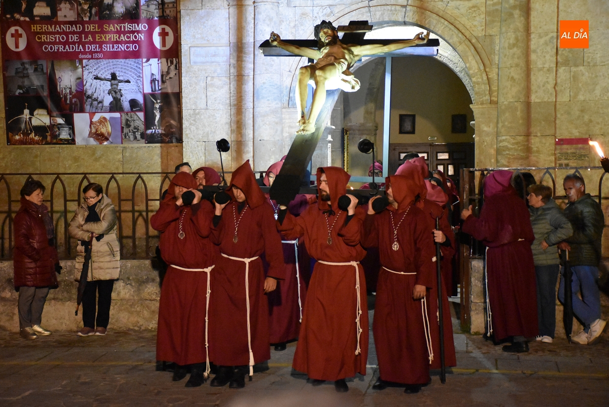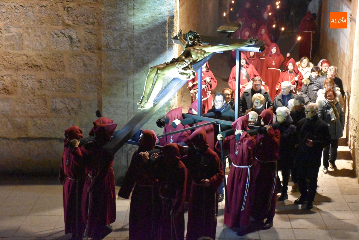 Desde su nacimiento, esta procesión está caracterizada por su recogimiento, sobriedad y un carácter casi ‘lúgubre’, por la forma de procesionar y los lugares que se recorren, pero este año el desfile ha ganado en claridad lumínica. Por un lado, el Cristo de la Buena Muerte que protagoniza el desfile estrenó unos nuevos focos en el bastidor en el que procesiona desde el año pasado (los focos con los que contó en ese estreno dieron muchos problemas a nivel fotográfico).