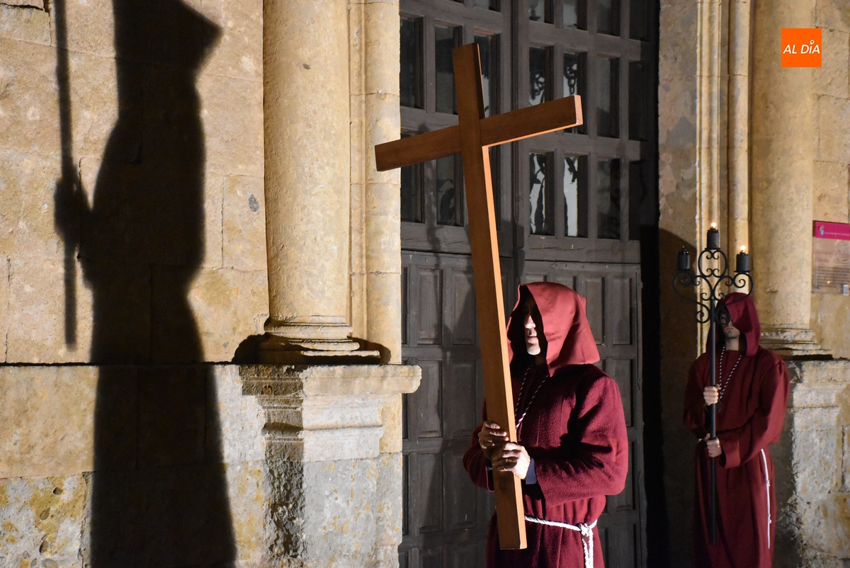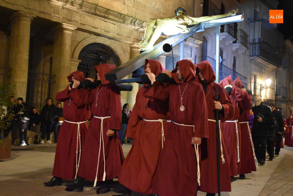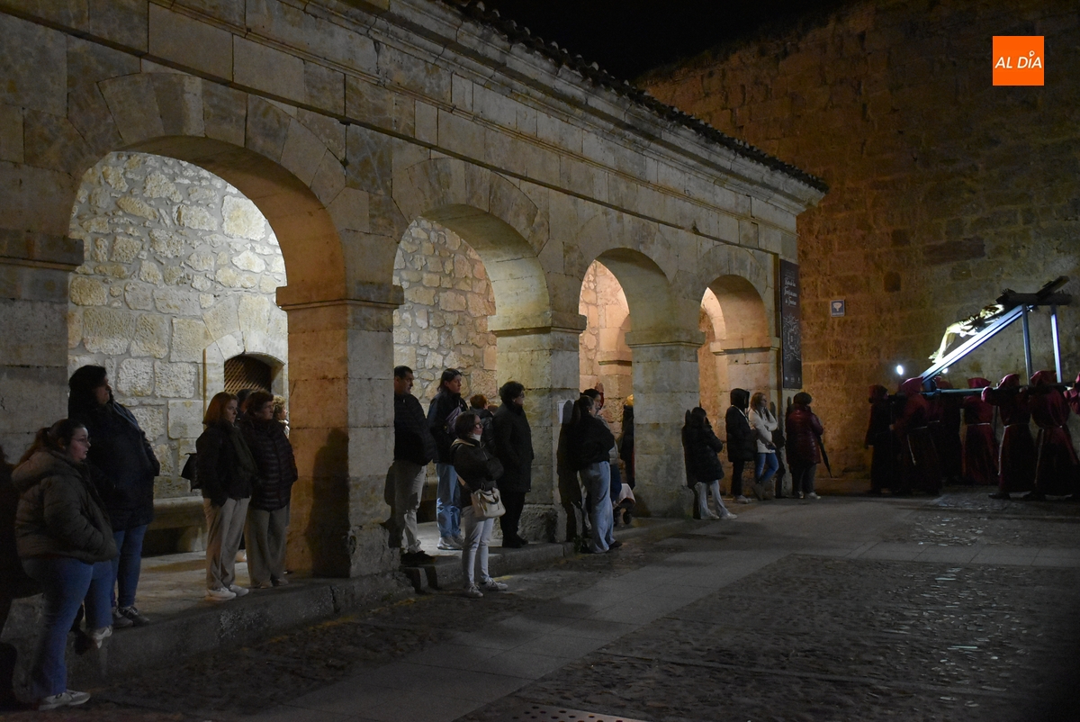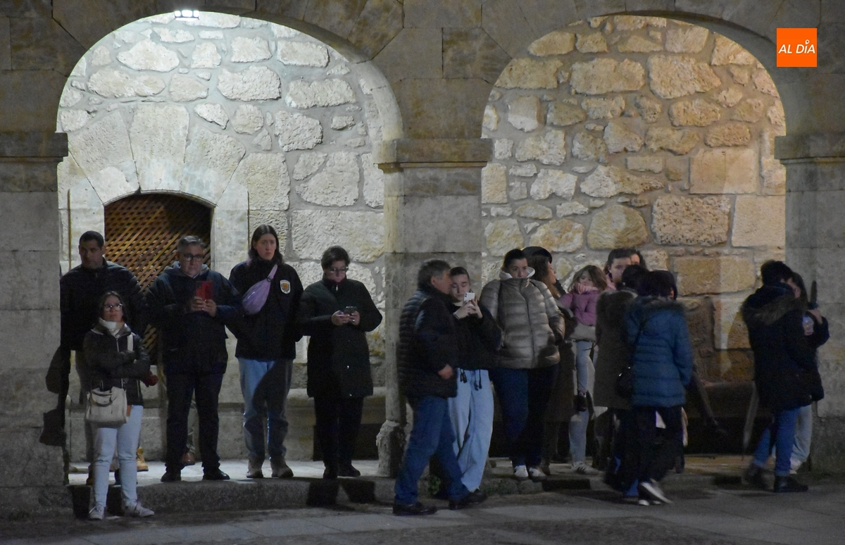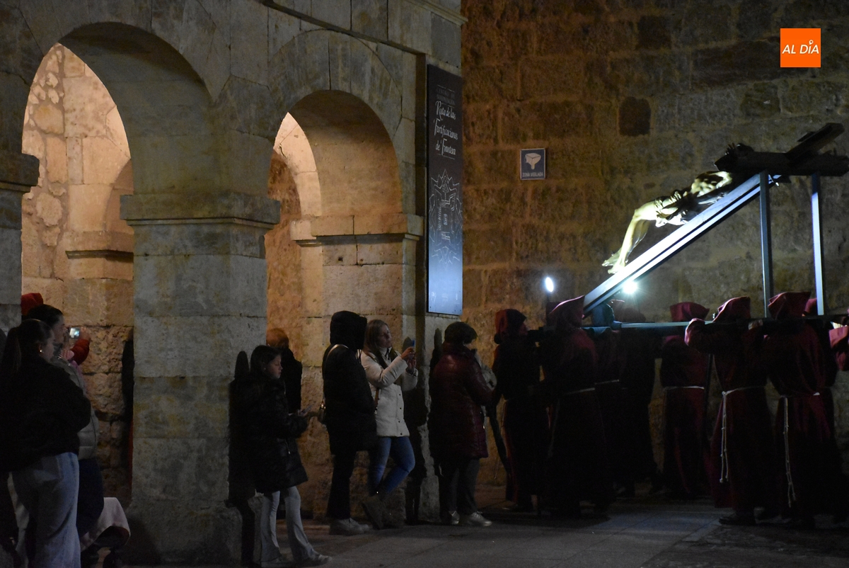 Y por otro lado, el Cristo, y toda la Cofradía, disfrutaron de las novedades en materia de iluminación de las calles y monumentos de Ciudad Rodrigo, comenzando por la iluminación artística de la que ha sido dotada la fachada de la Iglesia de San Pedro-San Isidoro de la que salió escoltado por un amplio número de cofrades por delante y por detrás.