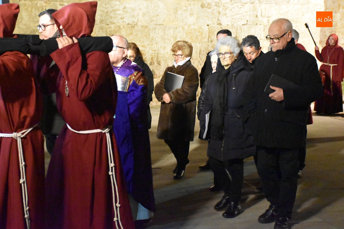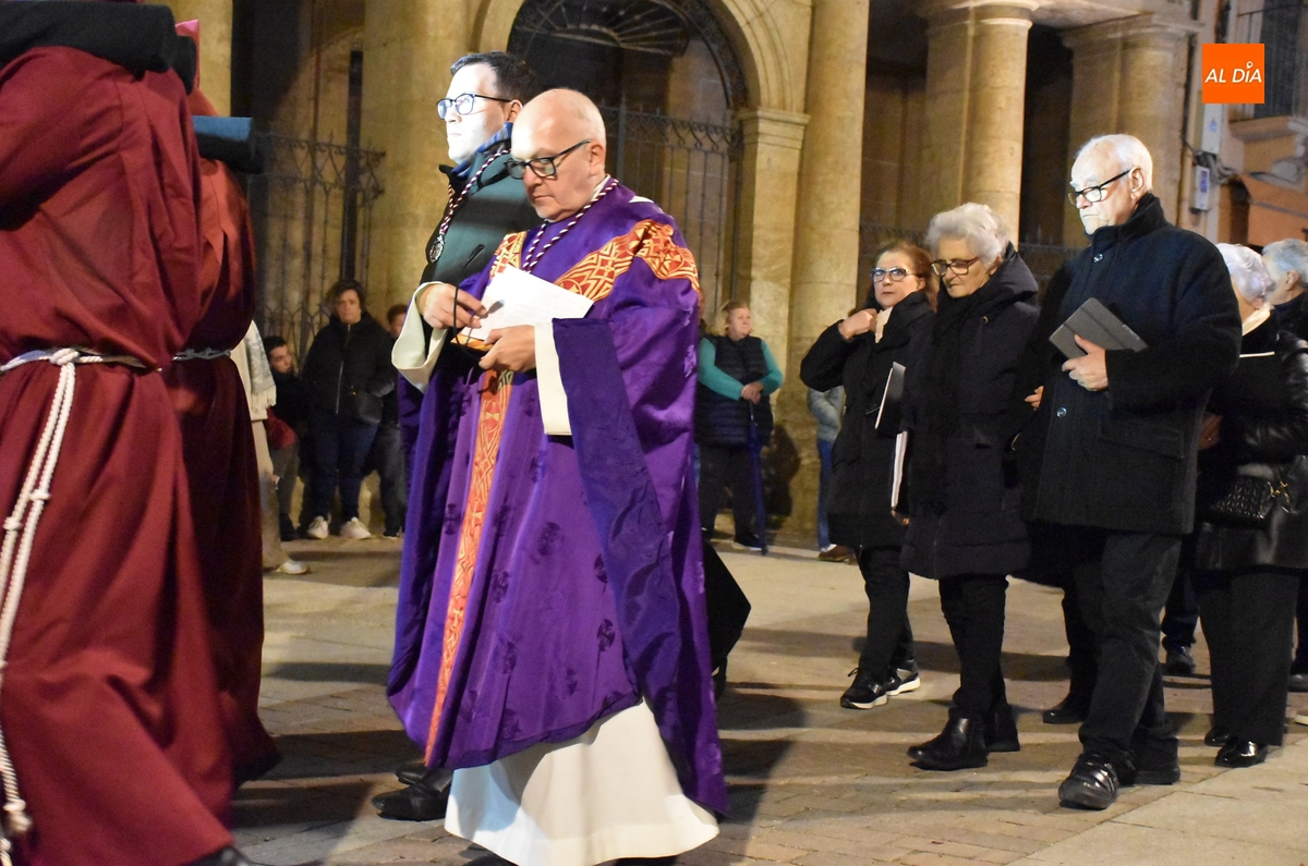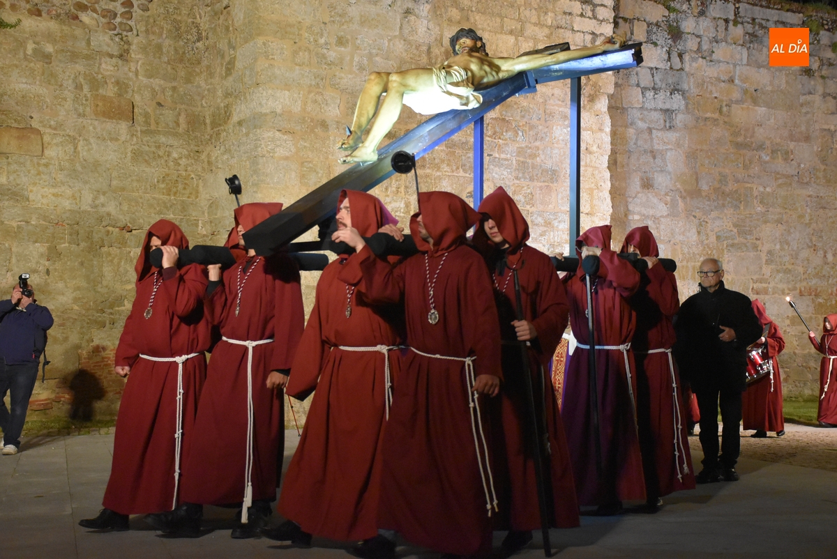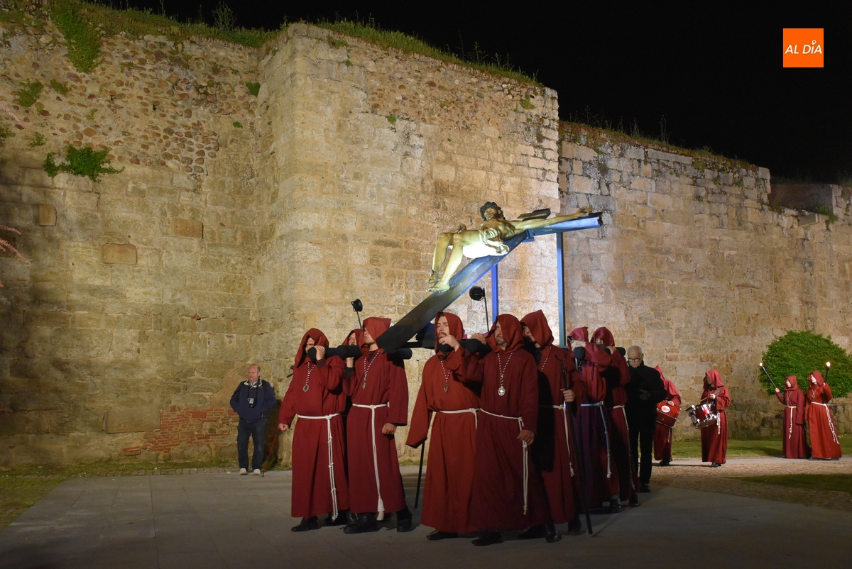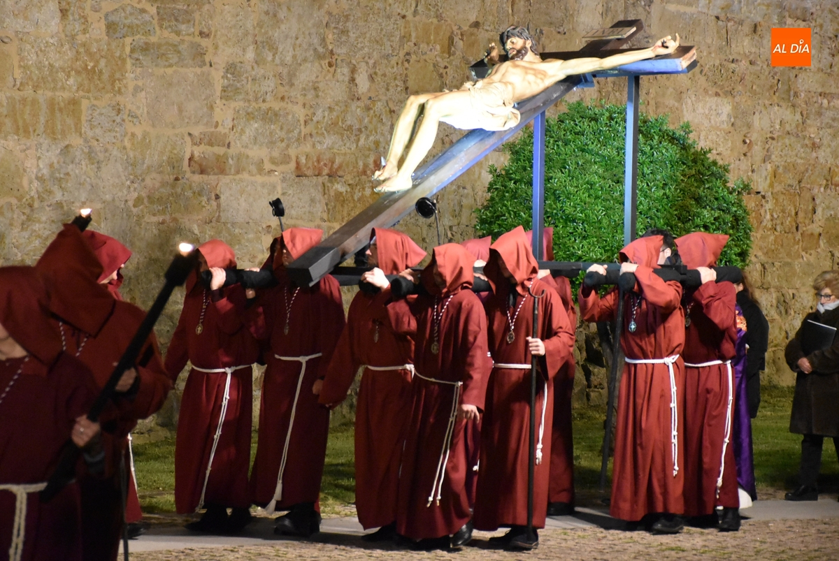 Y por otro lado, el Cristo, y toda la Cofradía, disfrutaron de las novedades en materia de iluminación de las calles y monumentos de Ciudad Rodrigo, comenzando por la iluminación artística de la que ha sido dotada la fachada de la Iglesia de San Pedro-San Isidoro de la que salió escoltado por un amplio número de cofrades por delante y por detrás.